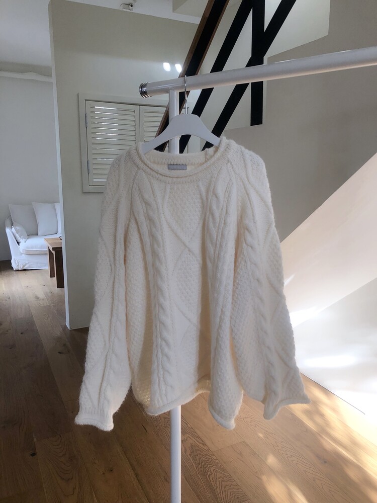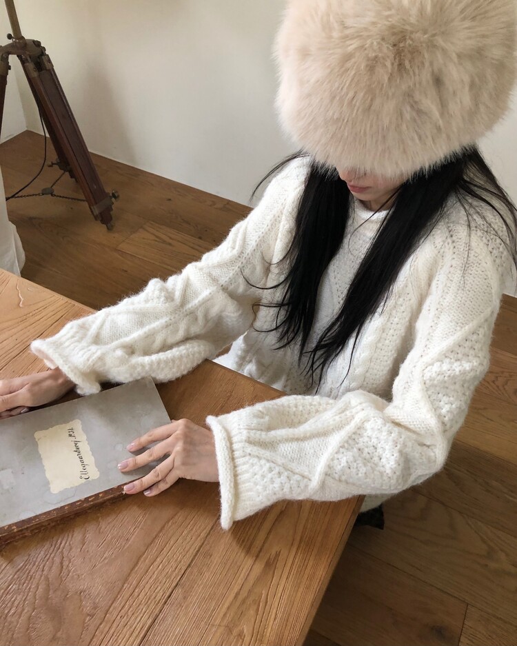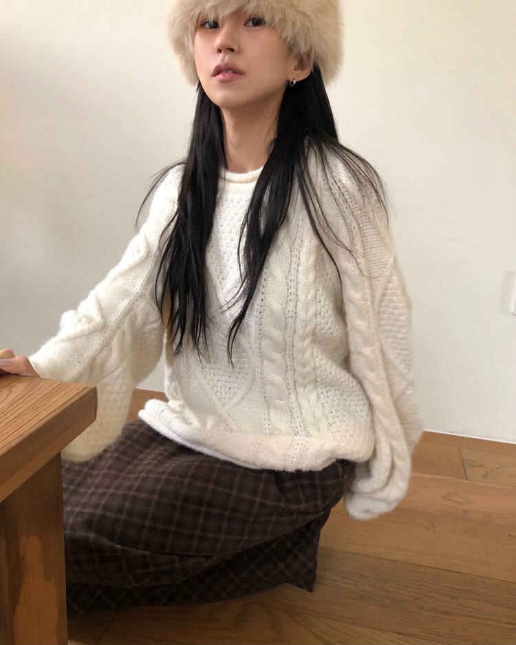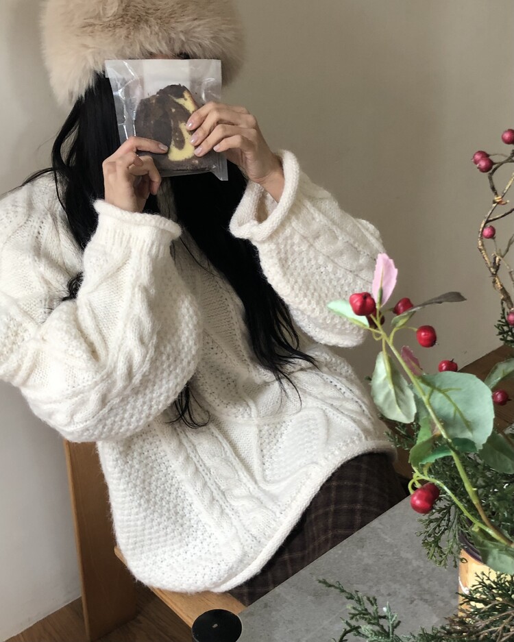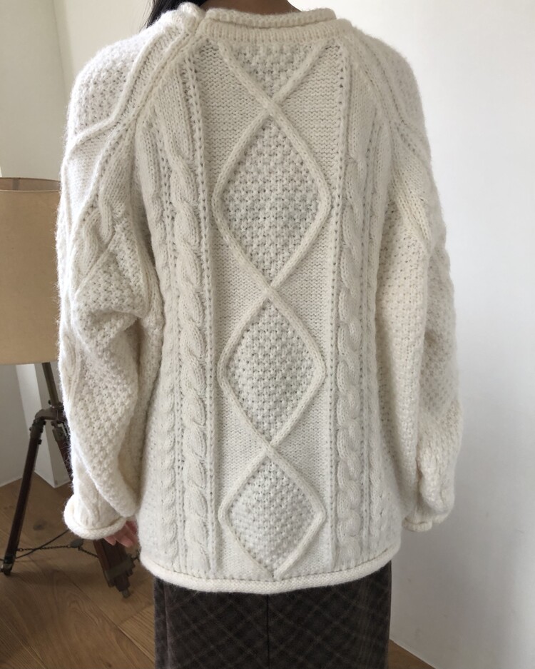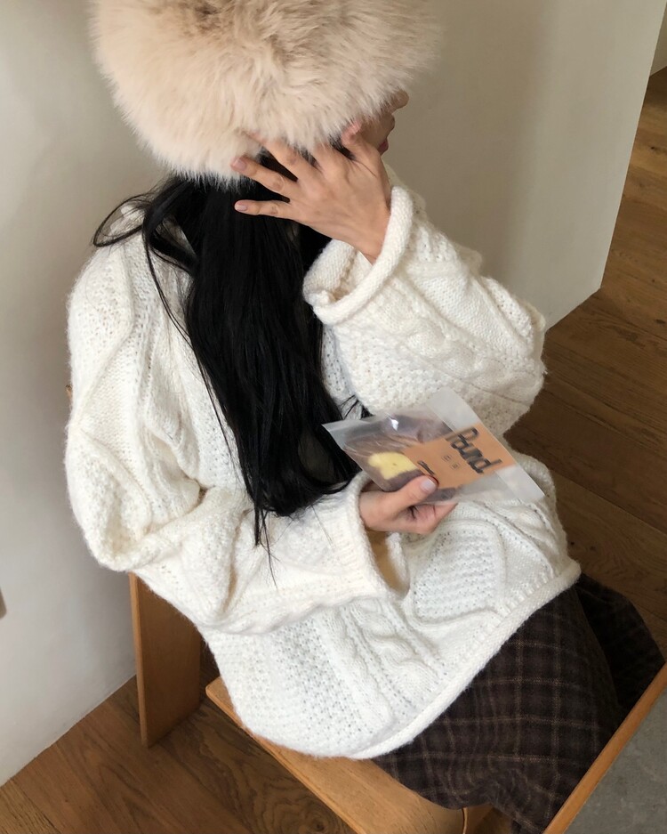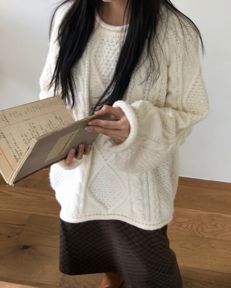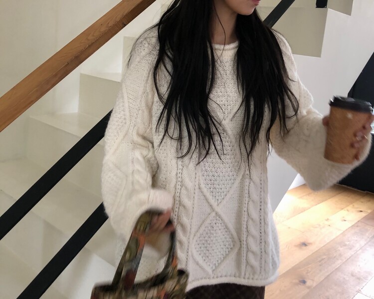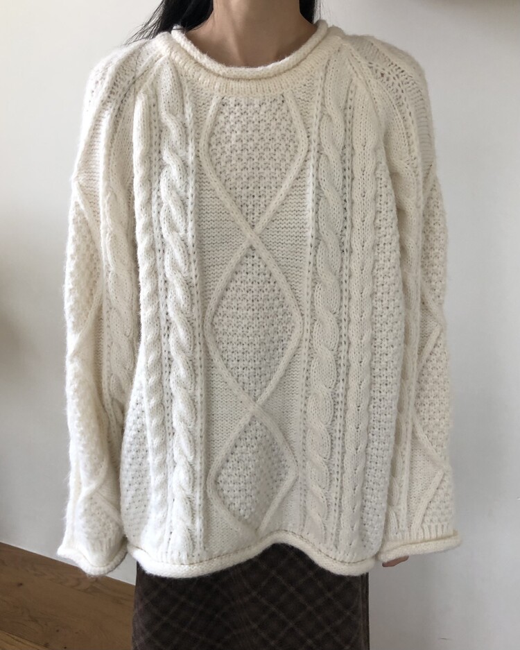 -입체감이 느껴지는 케이블 짜임의 박시 라운드 니트