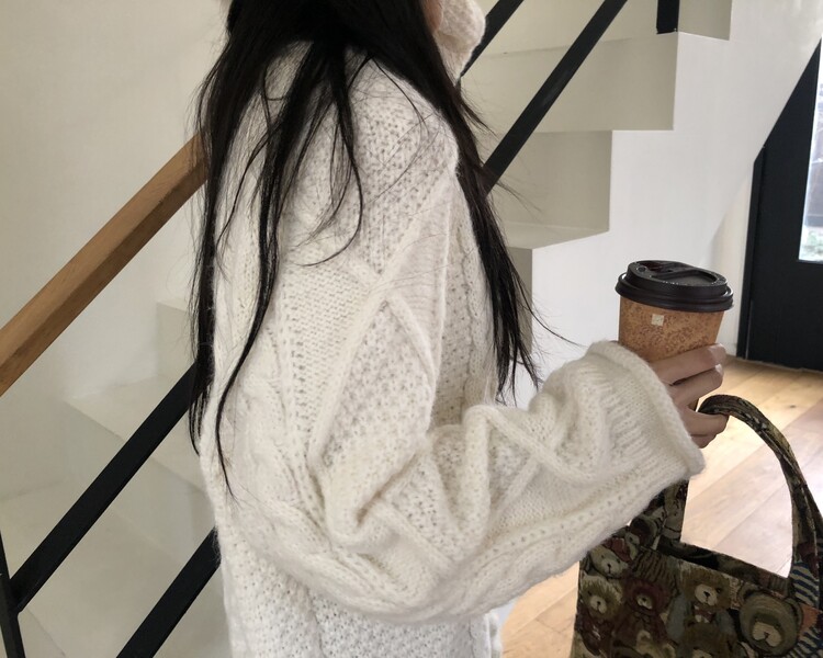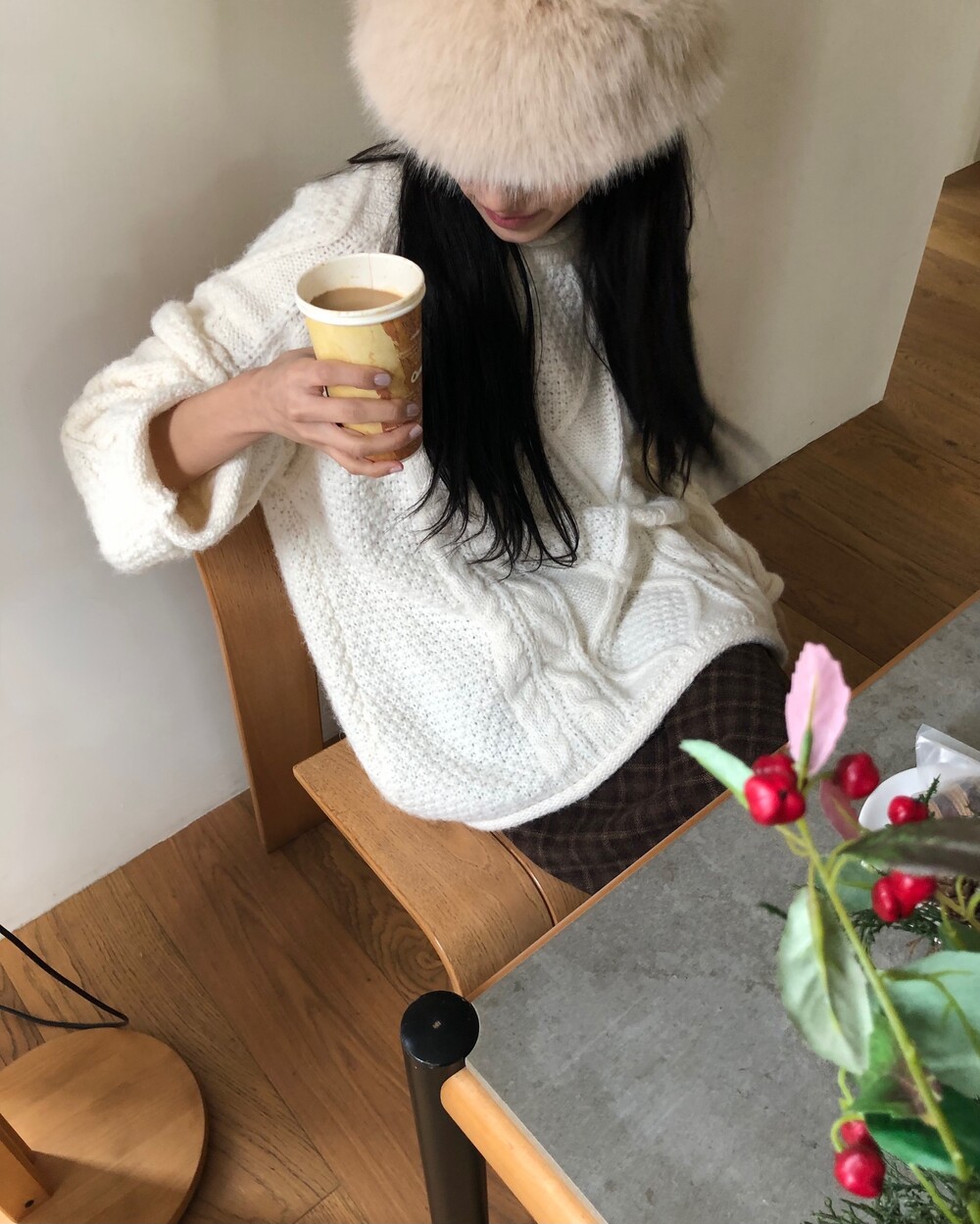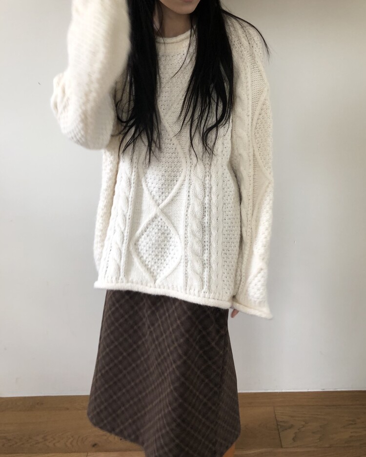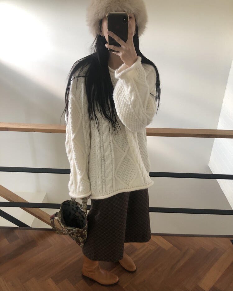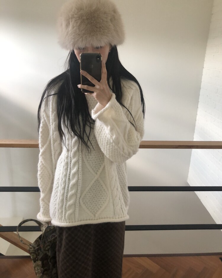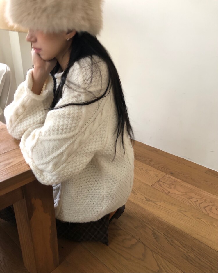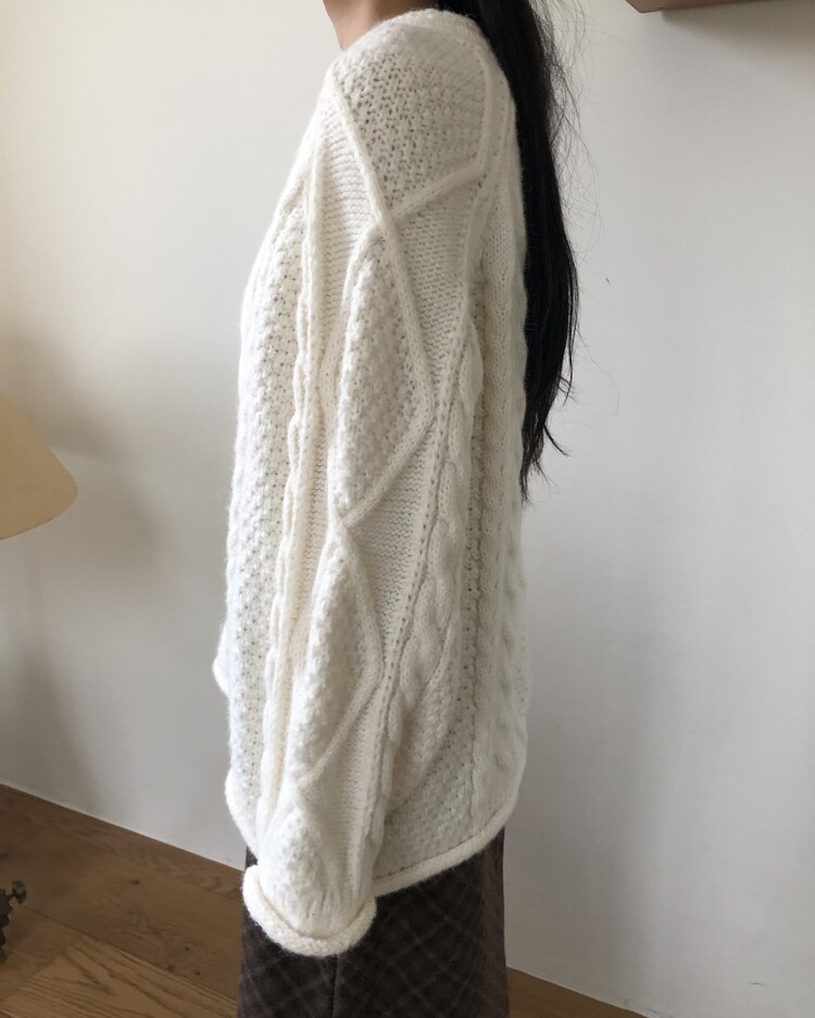 -입체감이 느껴지는 케이블 짜임의 박시 라운드 니트