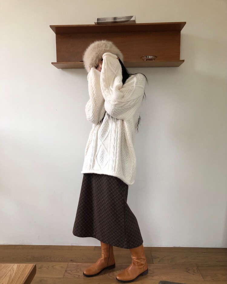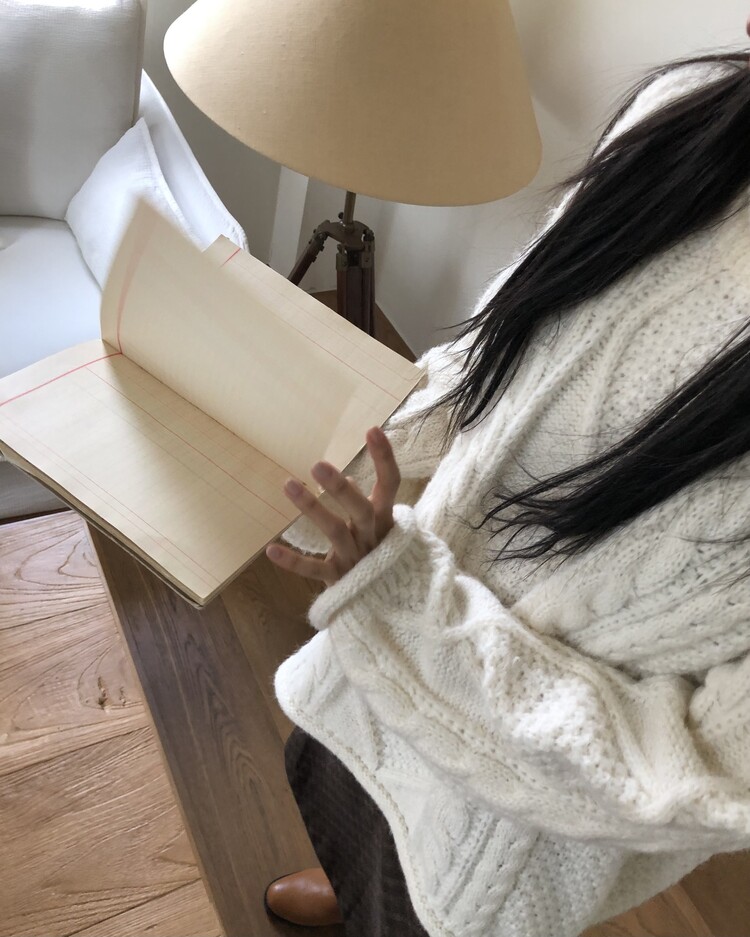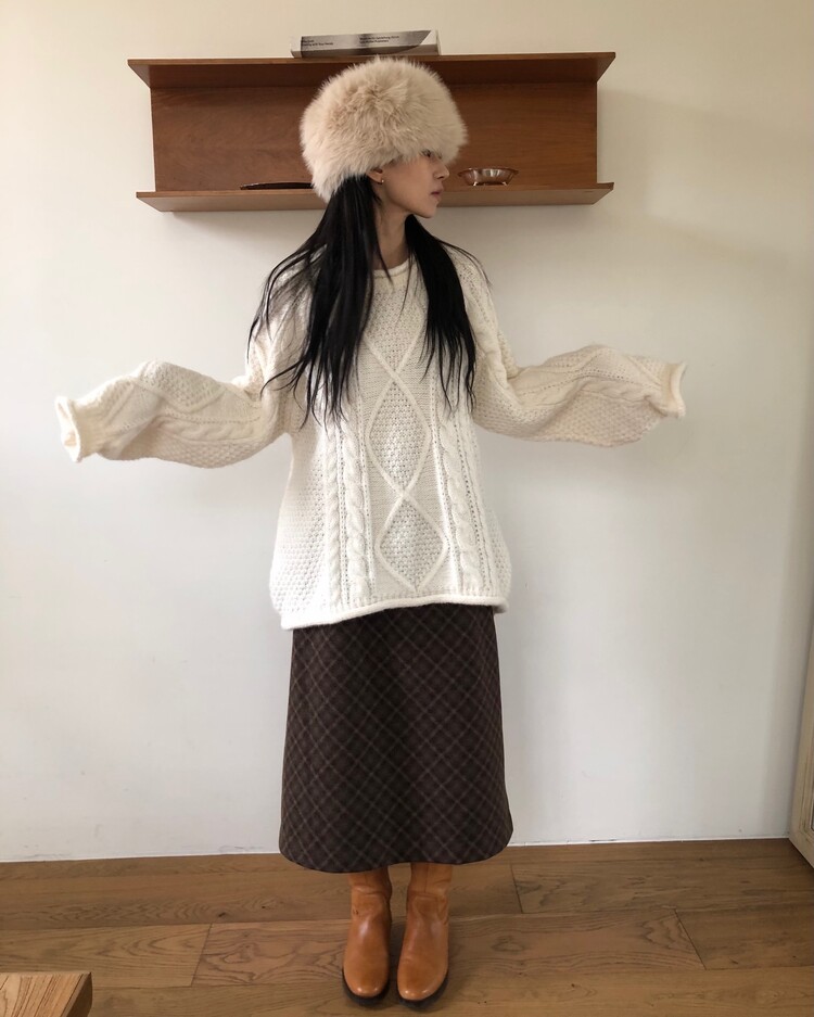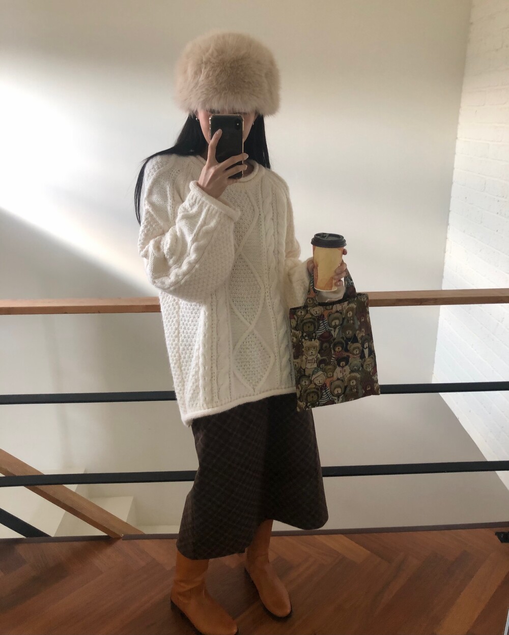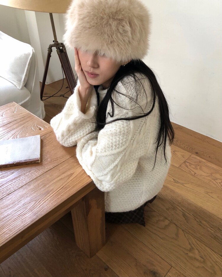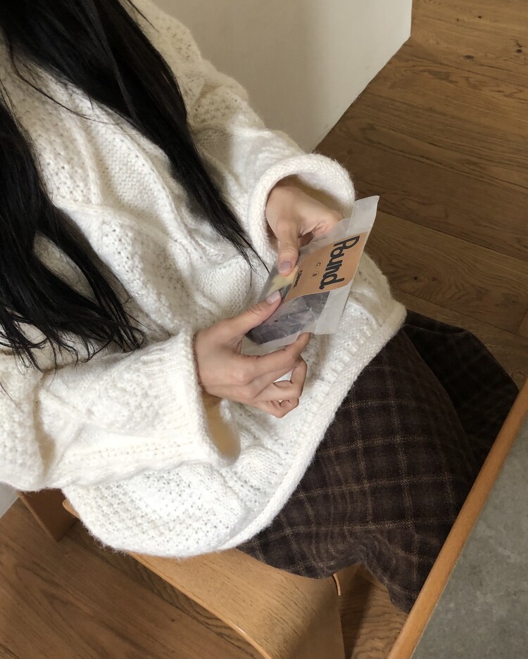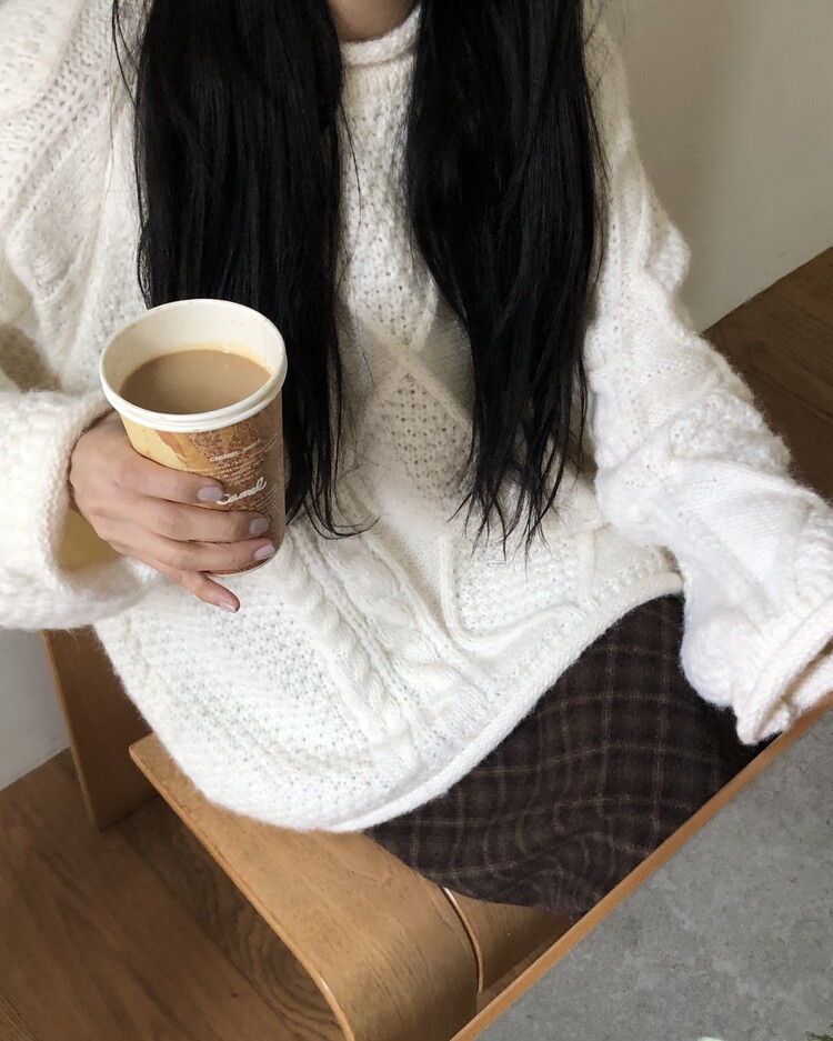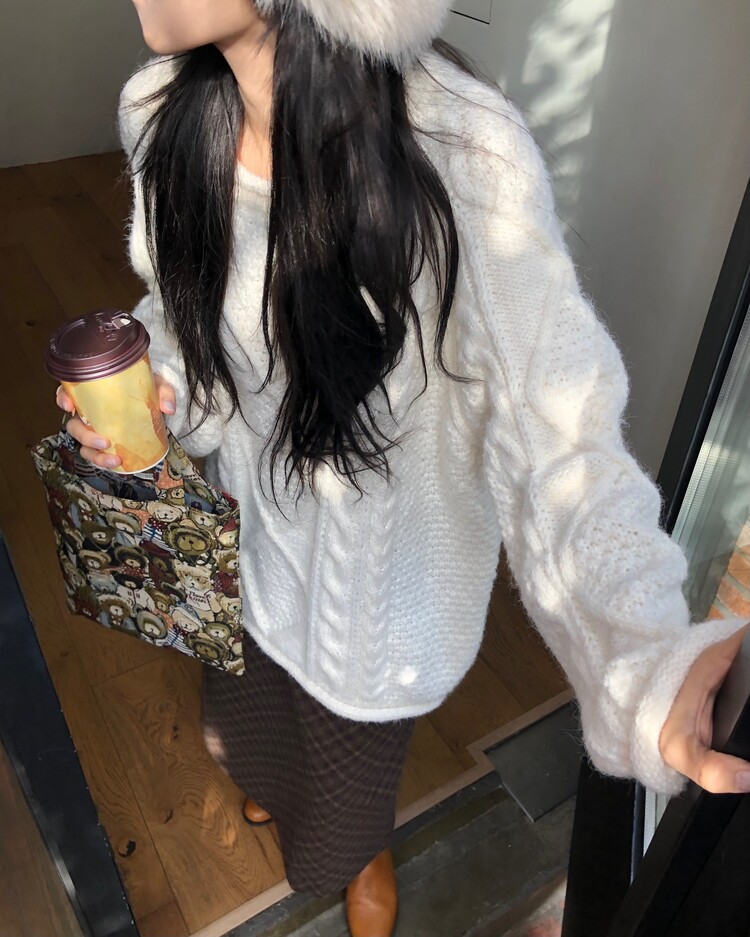 -입체감이 느껴지는 케이블 짜임의 박시 라운드 니트