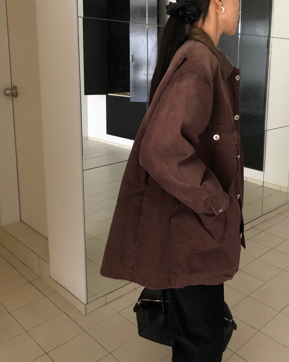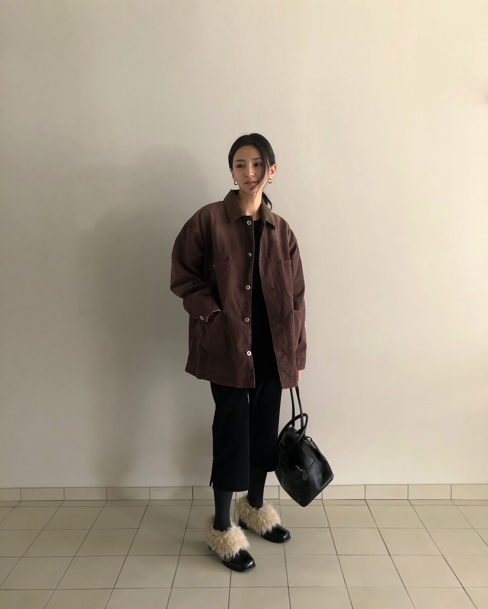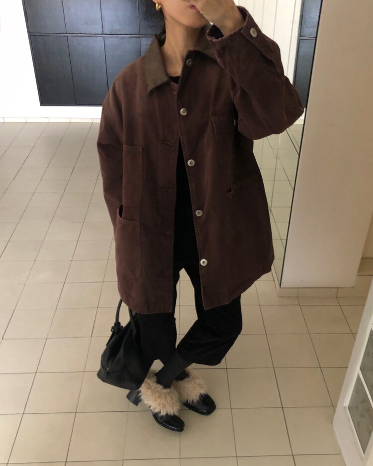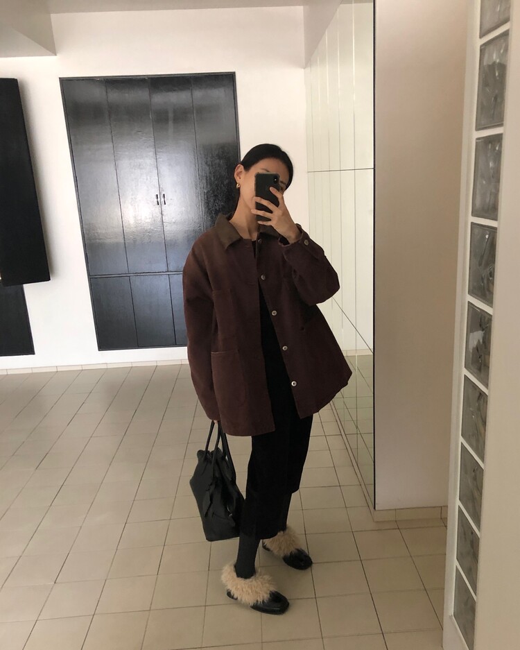 -카라 가죽 배색 디테일로 클래식하고 고급스러운 무드 완성