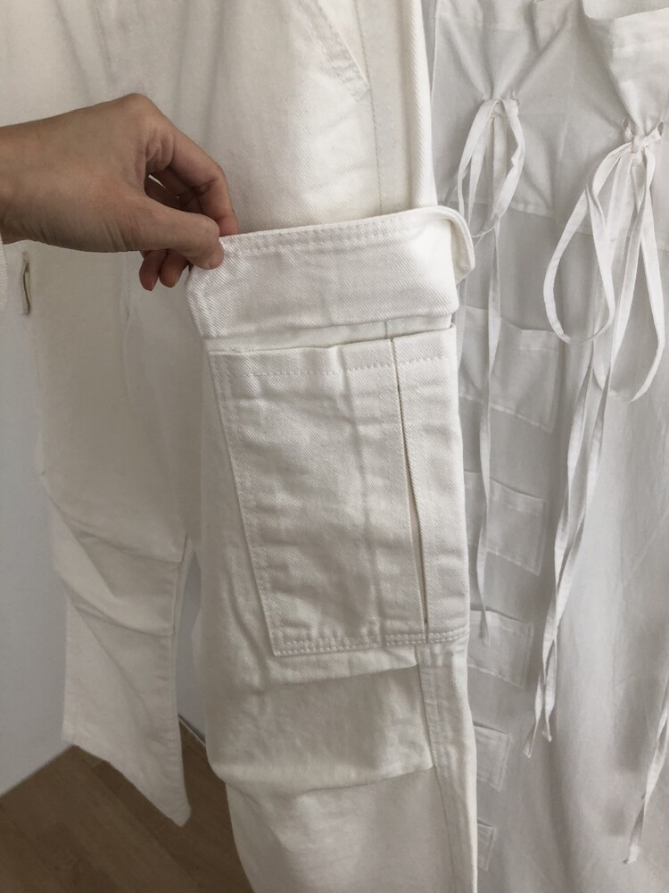 -양쪽 사이드 카고 포켓과 무릎 파라슈트 디자인