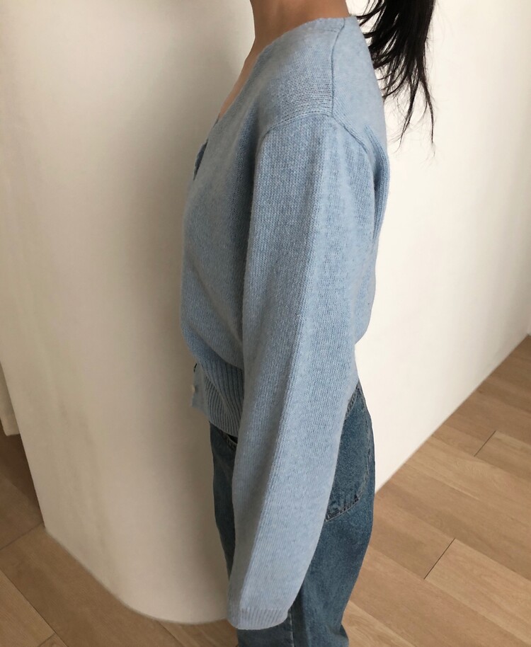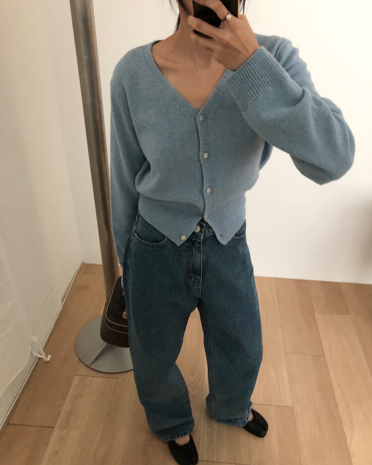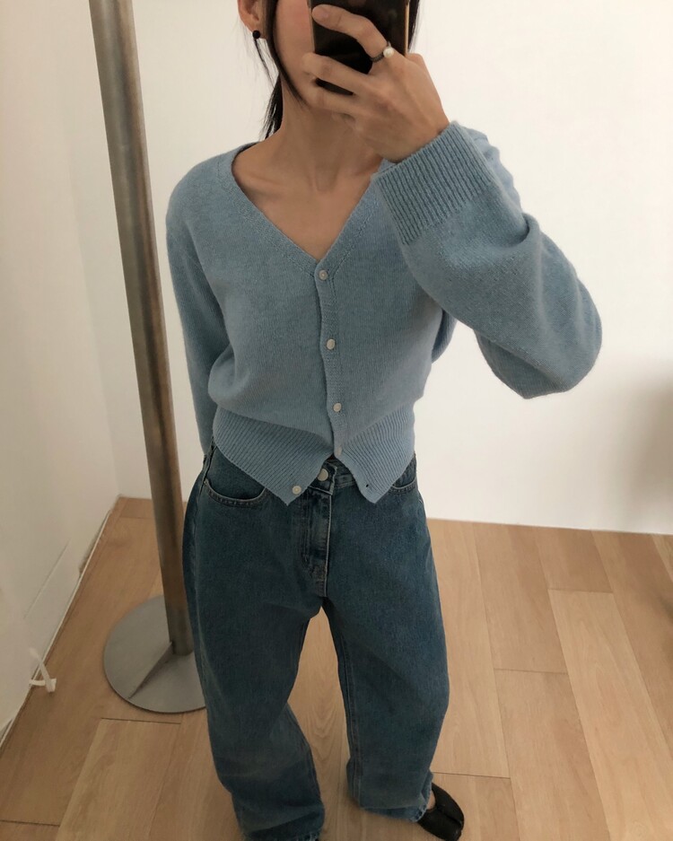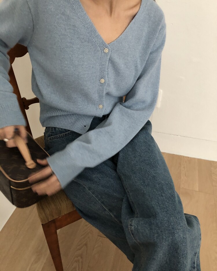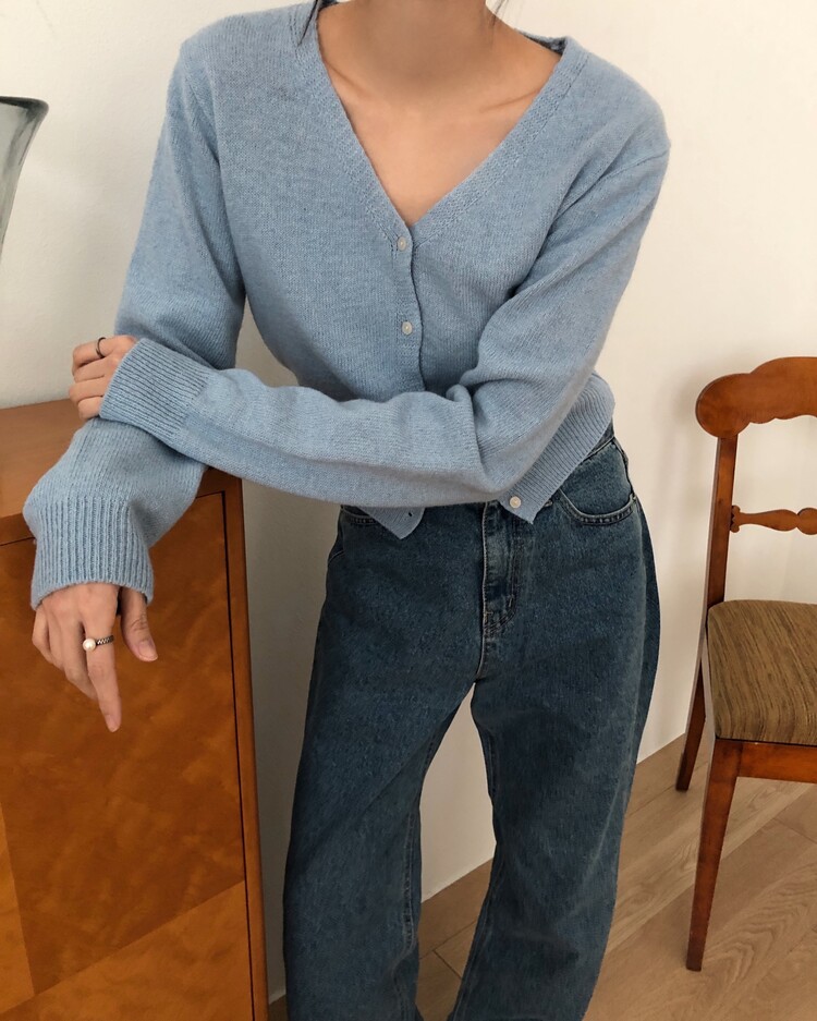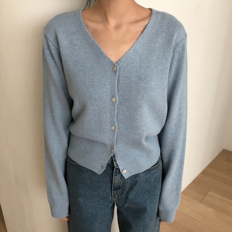 -미니멀한 무드로 연출 되는 브이넥 세미 크롭 가디건