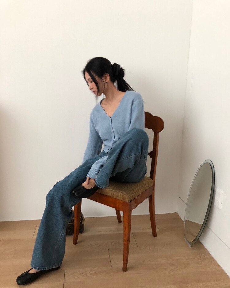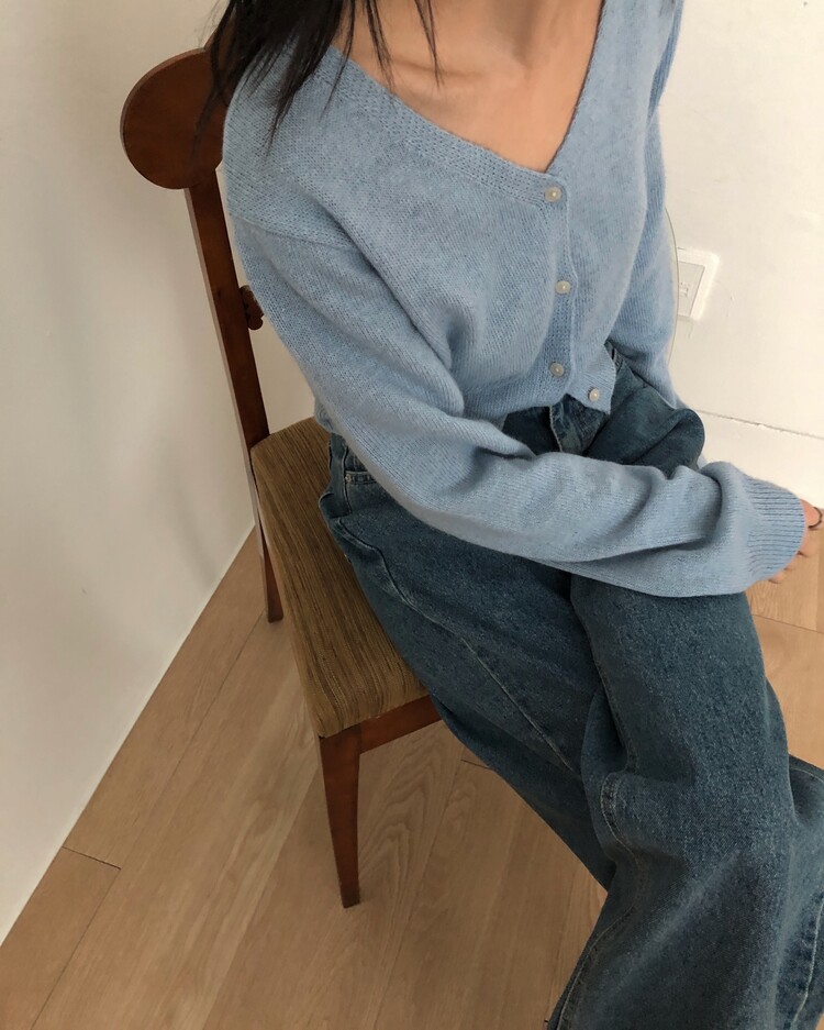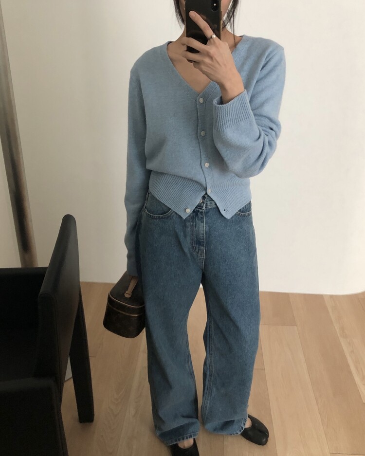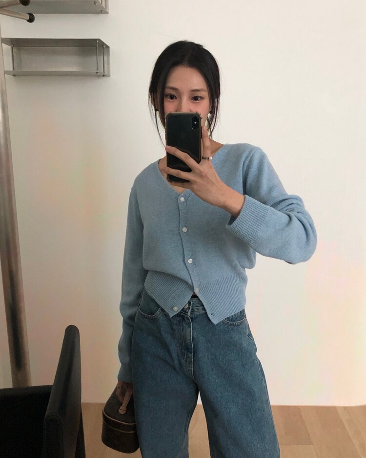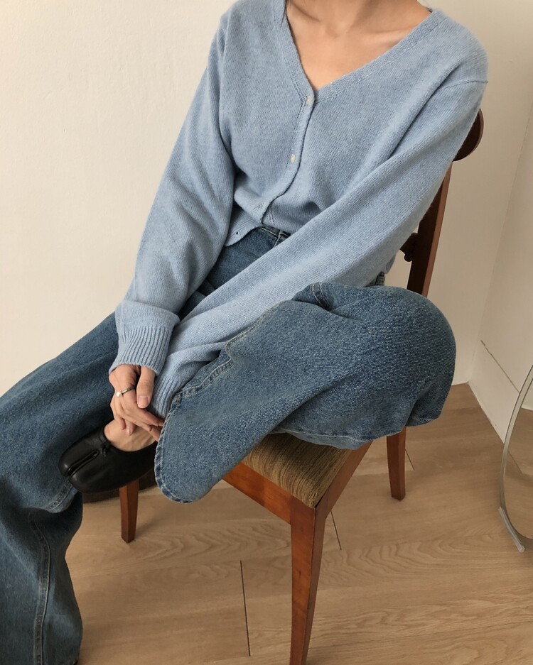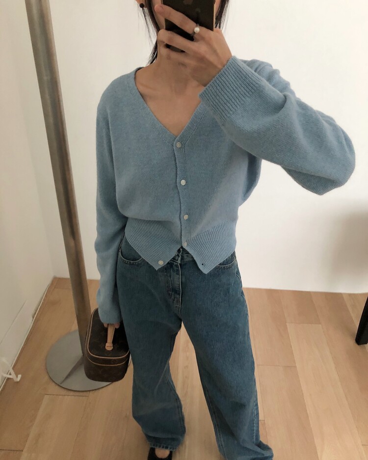 -미니멀한 무드로 연출 되는 브이넥 세미 크롭 가디건