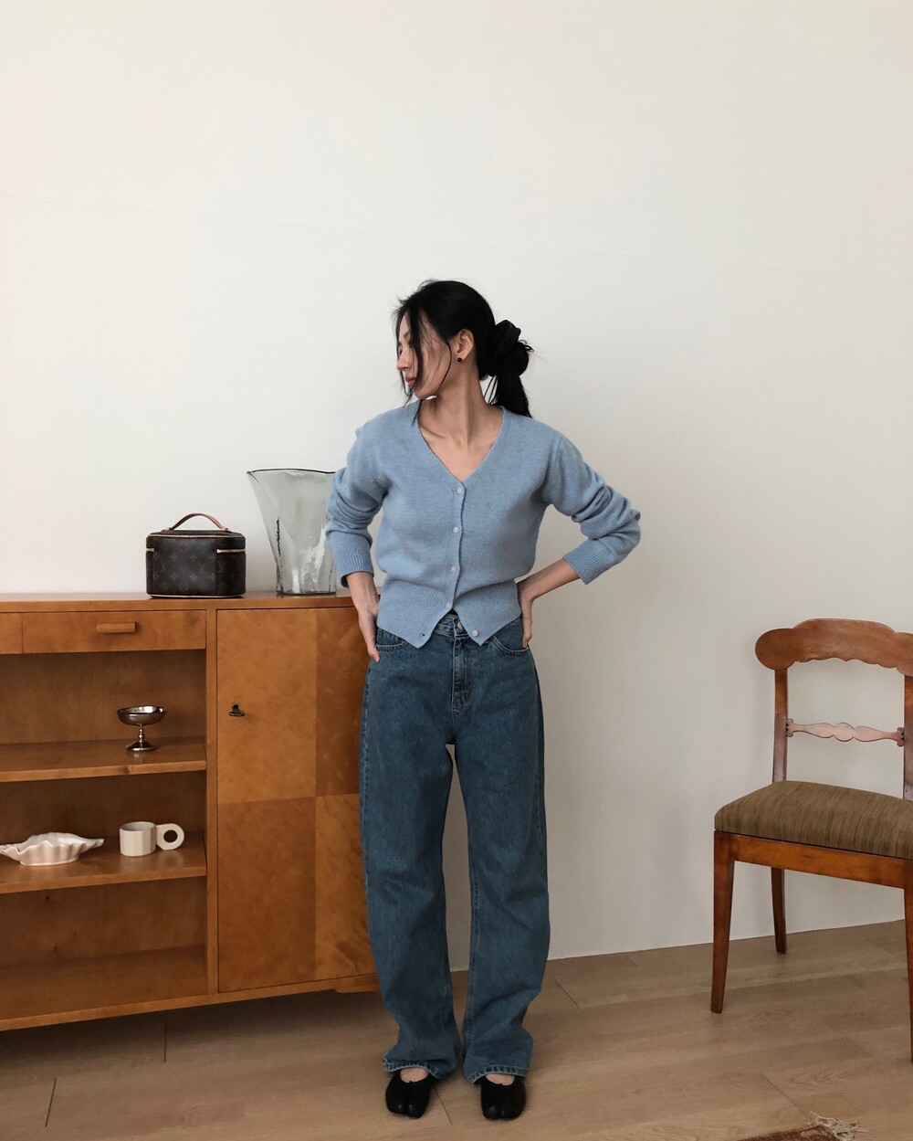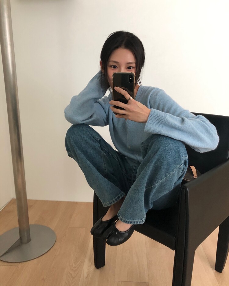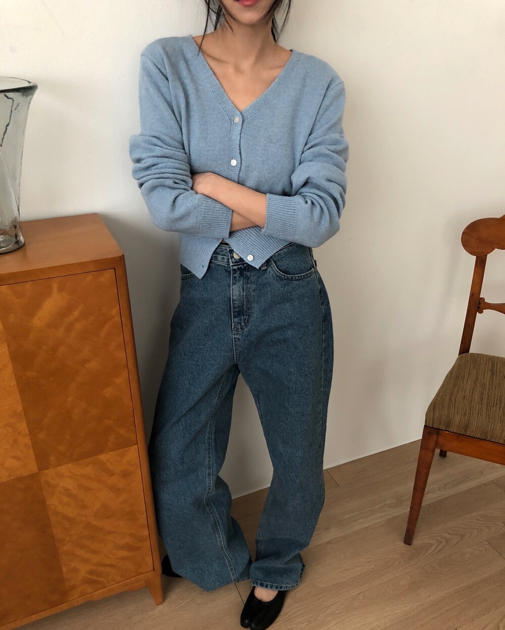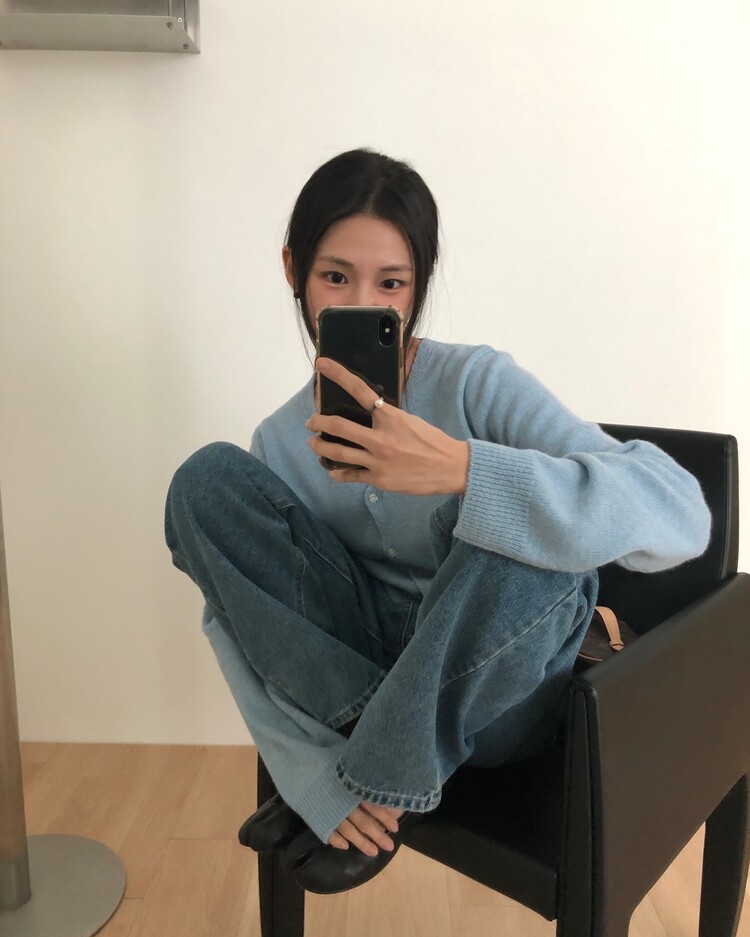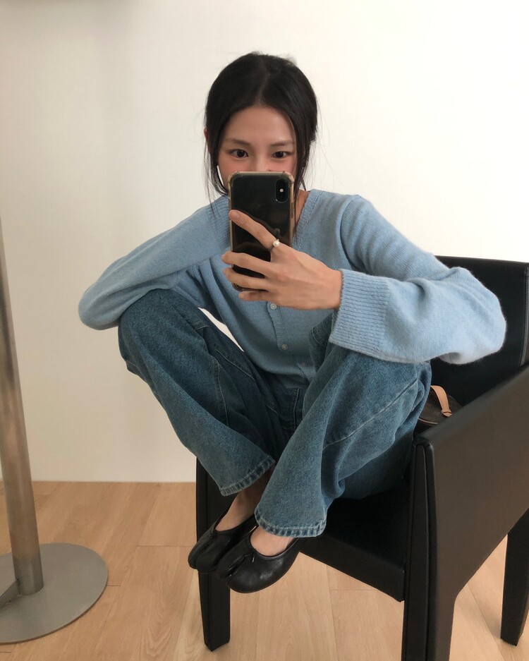 -미니멀한 무드로 연출 되는 브이넥 세미 크롭 가디건