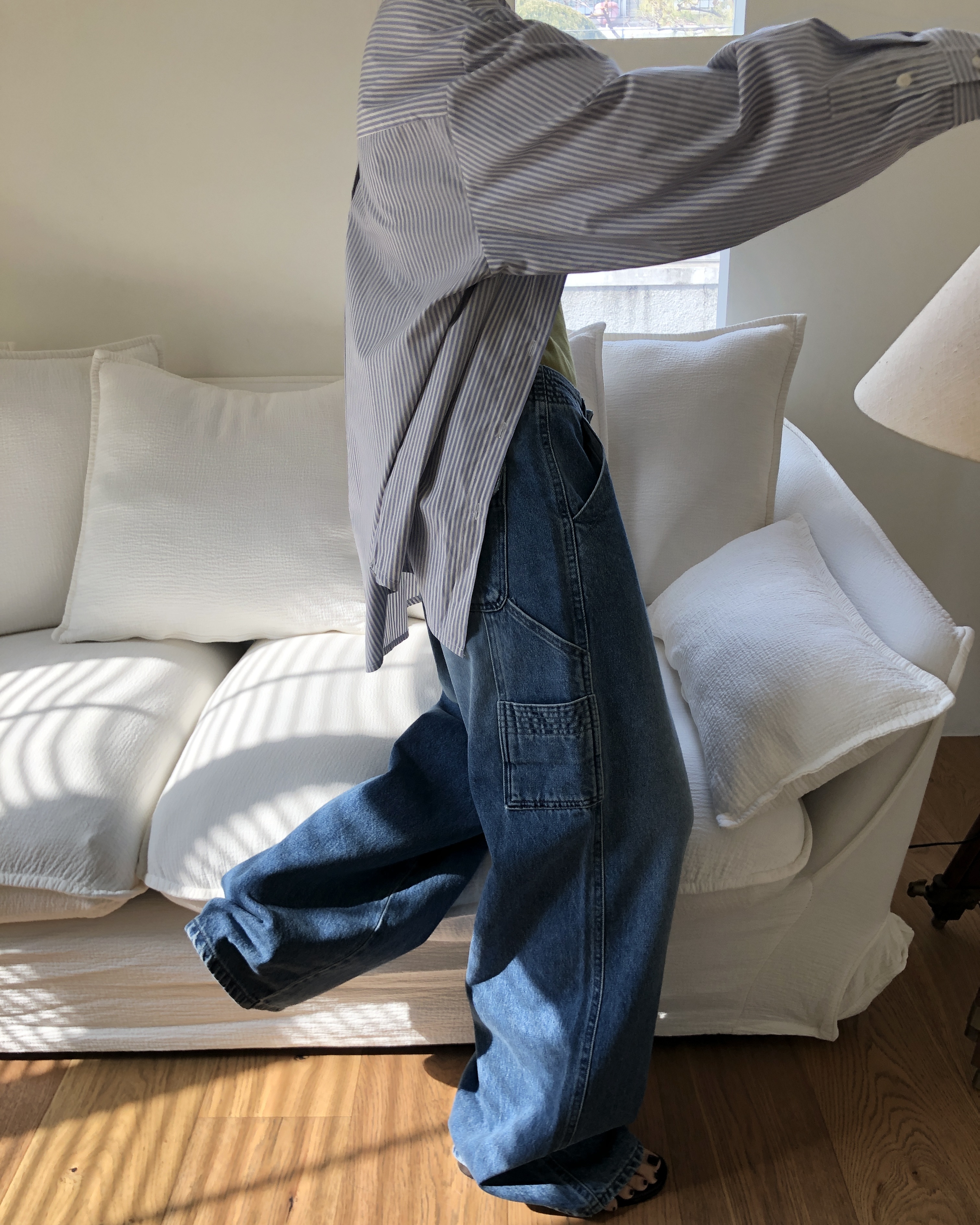 5. 건조기 사용은 원단을 수축시키고 워싱 결을 망가뜨릴 수 있으니, 반드시 그늘에서 거꾸로 매달아 자연 건조해 주세요.