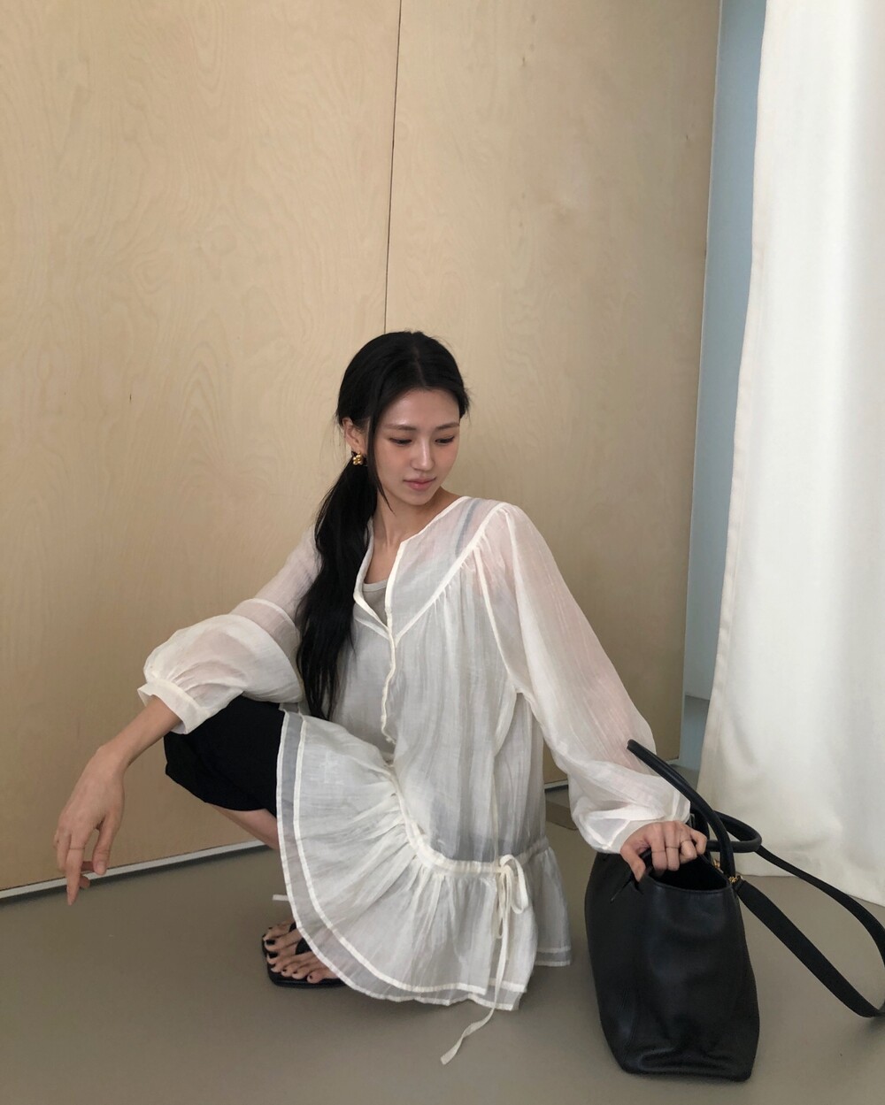 Model : 키 160, 몸무게 40, 하의 사이즈 S