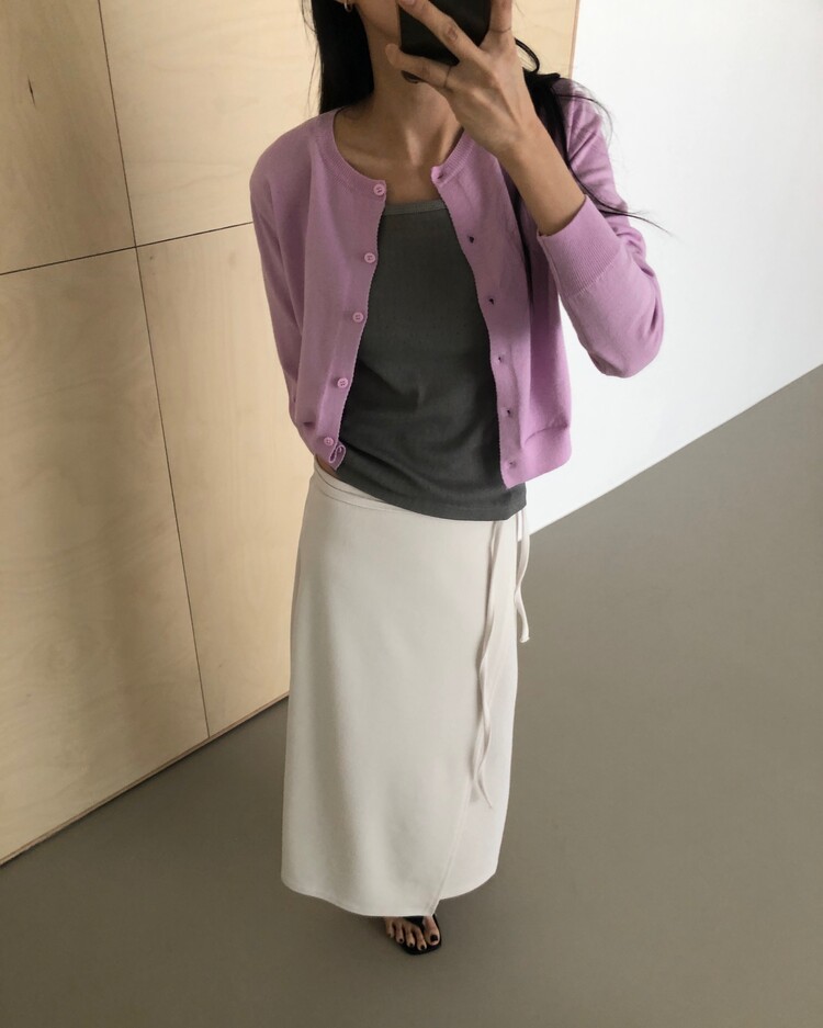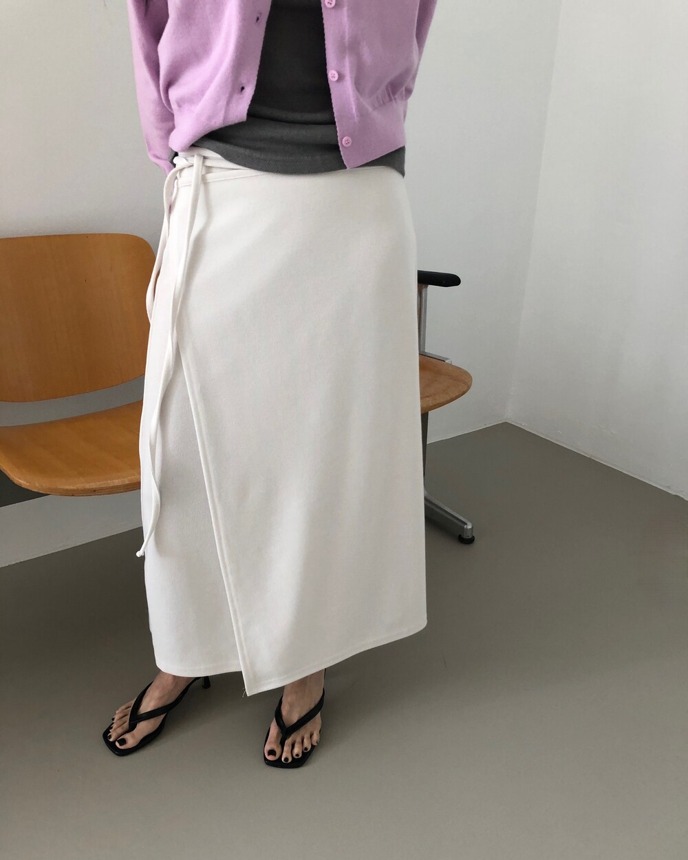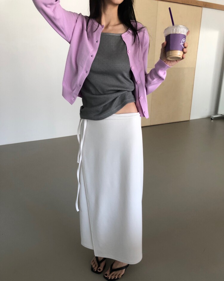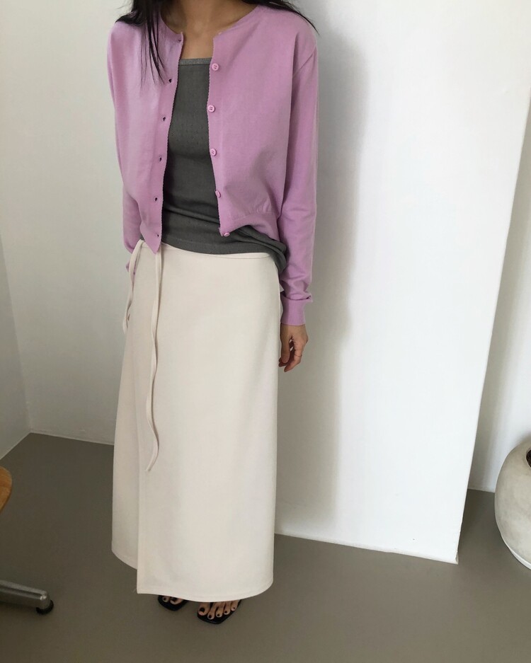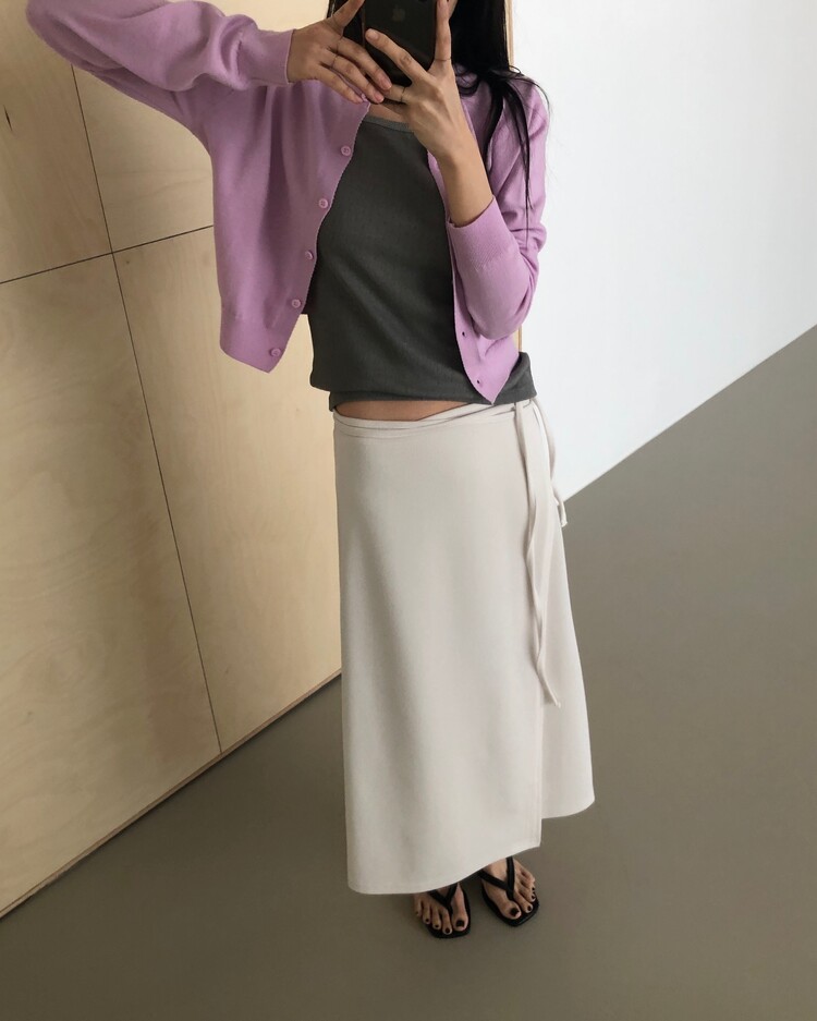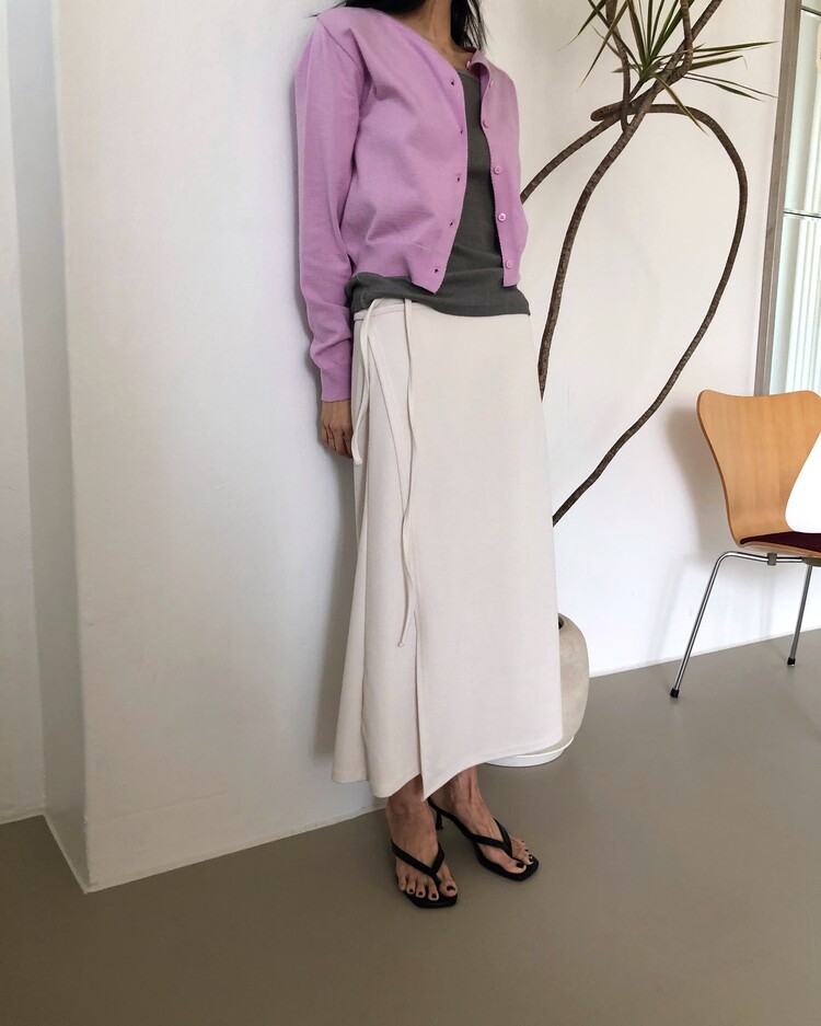 -심플한 디자인에 사이드 스트랩 디테일을 더해 내추럴한 실루엣을 완성시켜주는 랩 스커트 -발목까지 오는 롱한 기장감으로 안정감 있는 착용 가능 -착용시 스트랩의 연출에 따라 A라인 혹은 H라인으로 연출되는 실루엣 -팬츠 위에 레이어드하여 전체적인 아웃핏에 입체감 있는 스타일링이 가능한 아이템