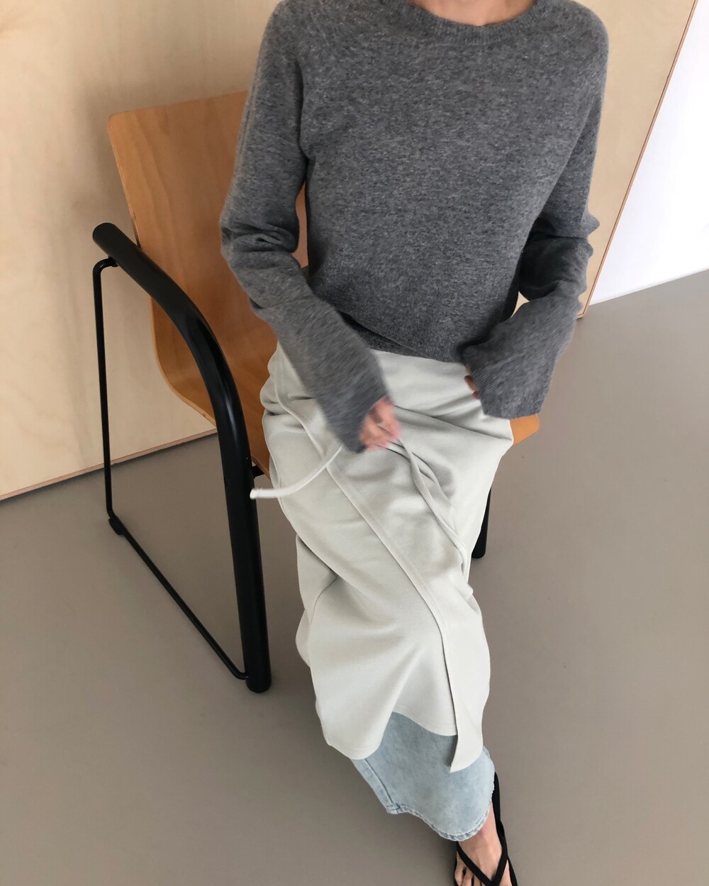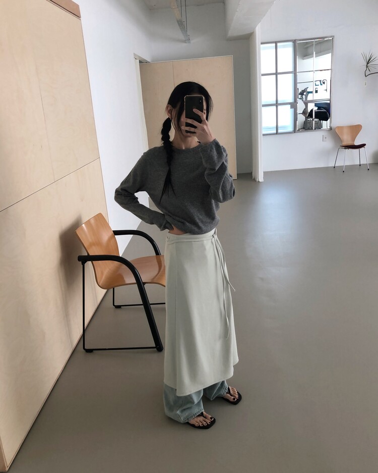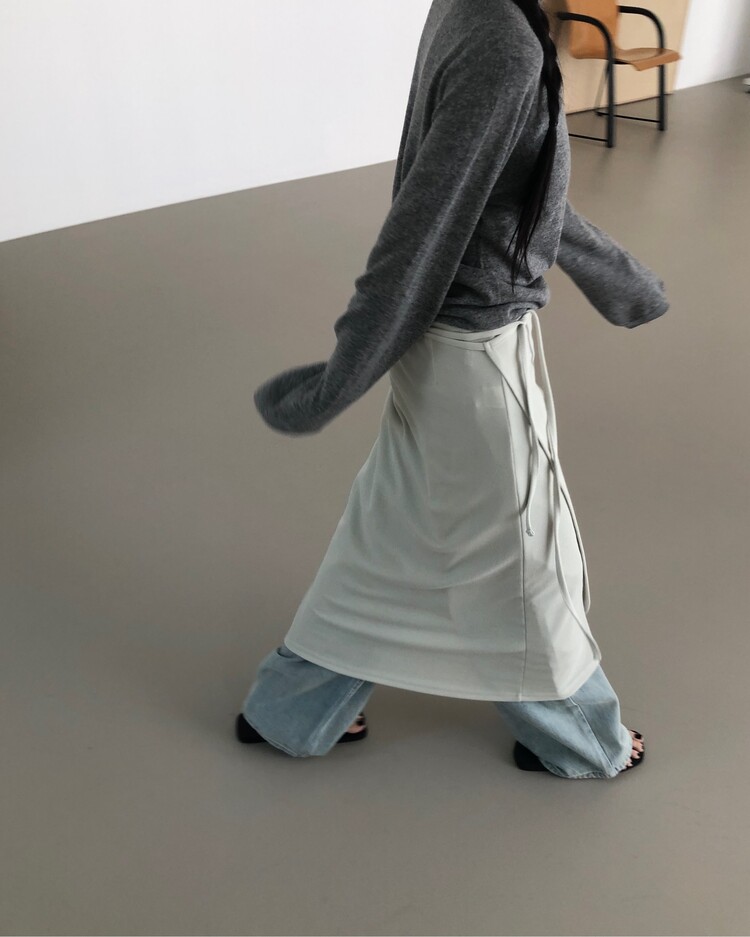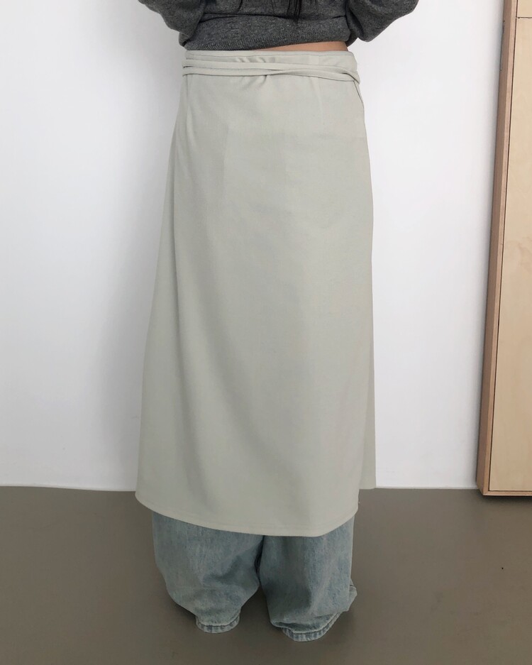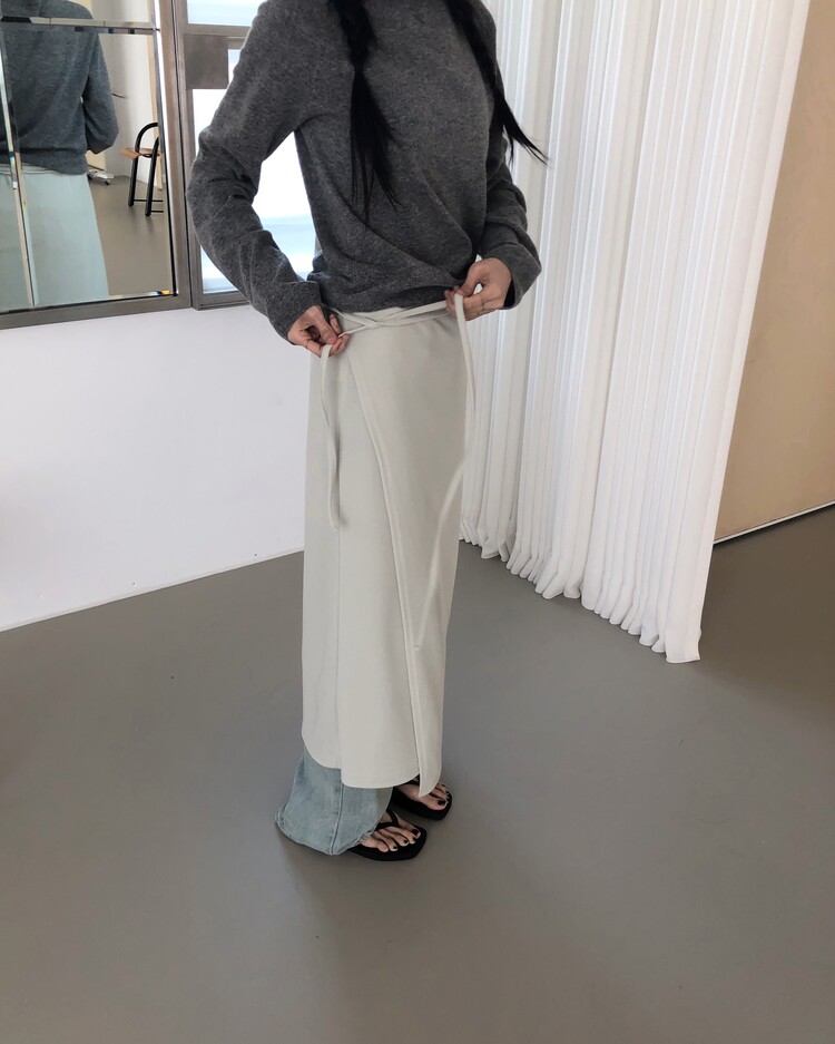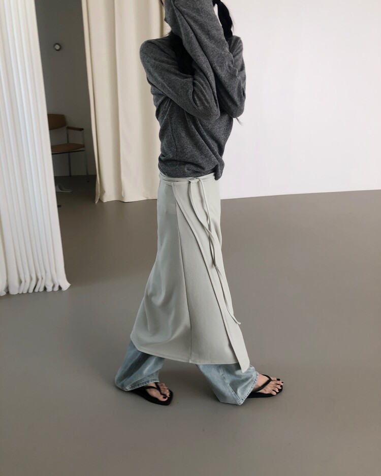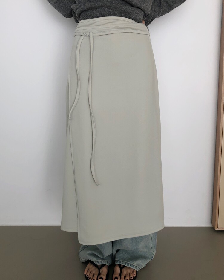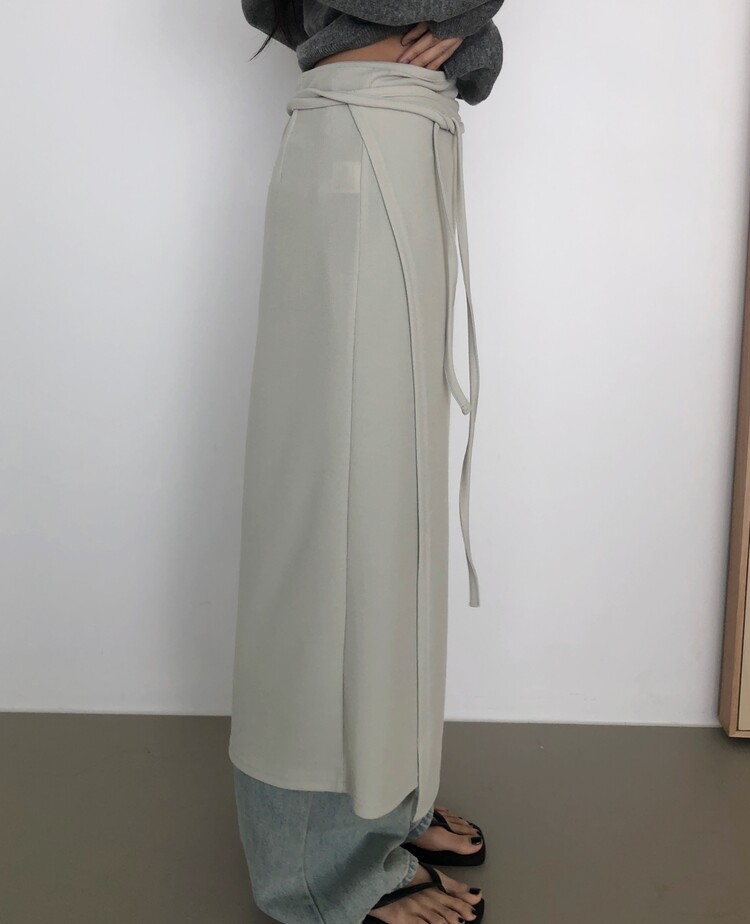 -심플한 디자인에 사이드 스트랩 디테일을 더해 내추럴한 실루엣을 완성시켜주는 랩 스커트