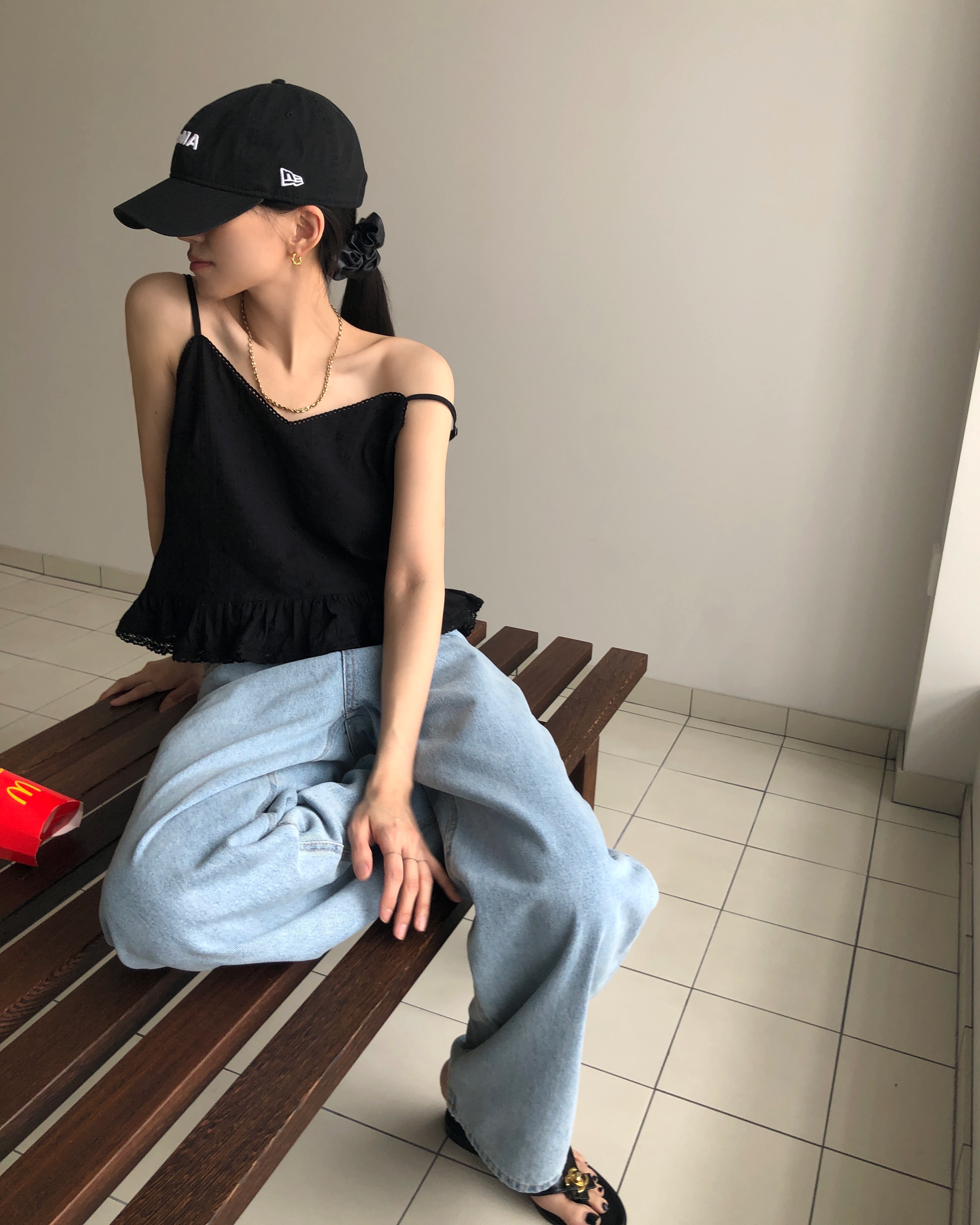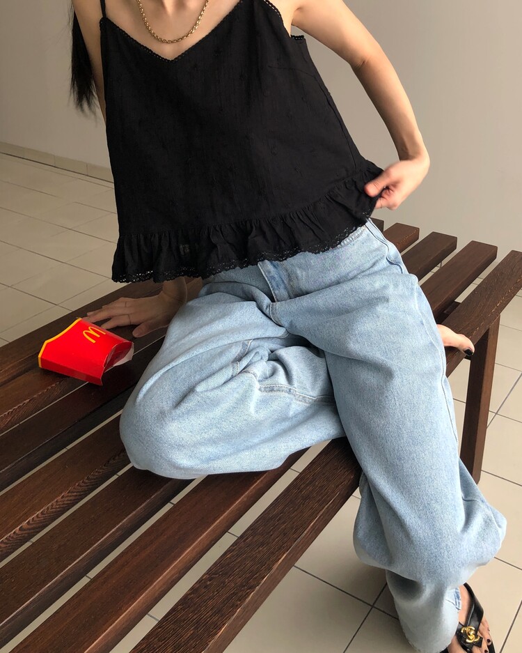 Model : 키 160, 몸무게 40, 하의 사이즈 S