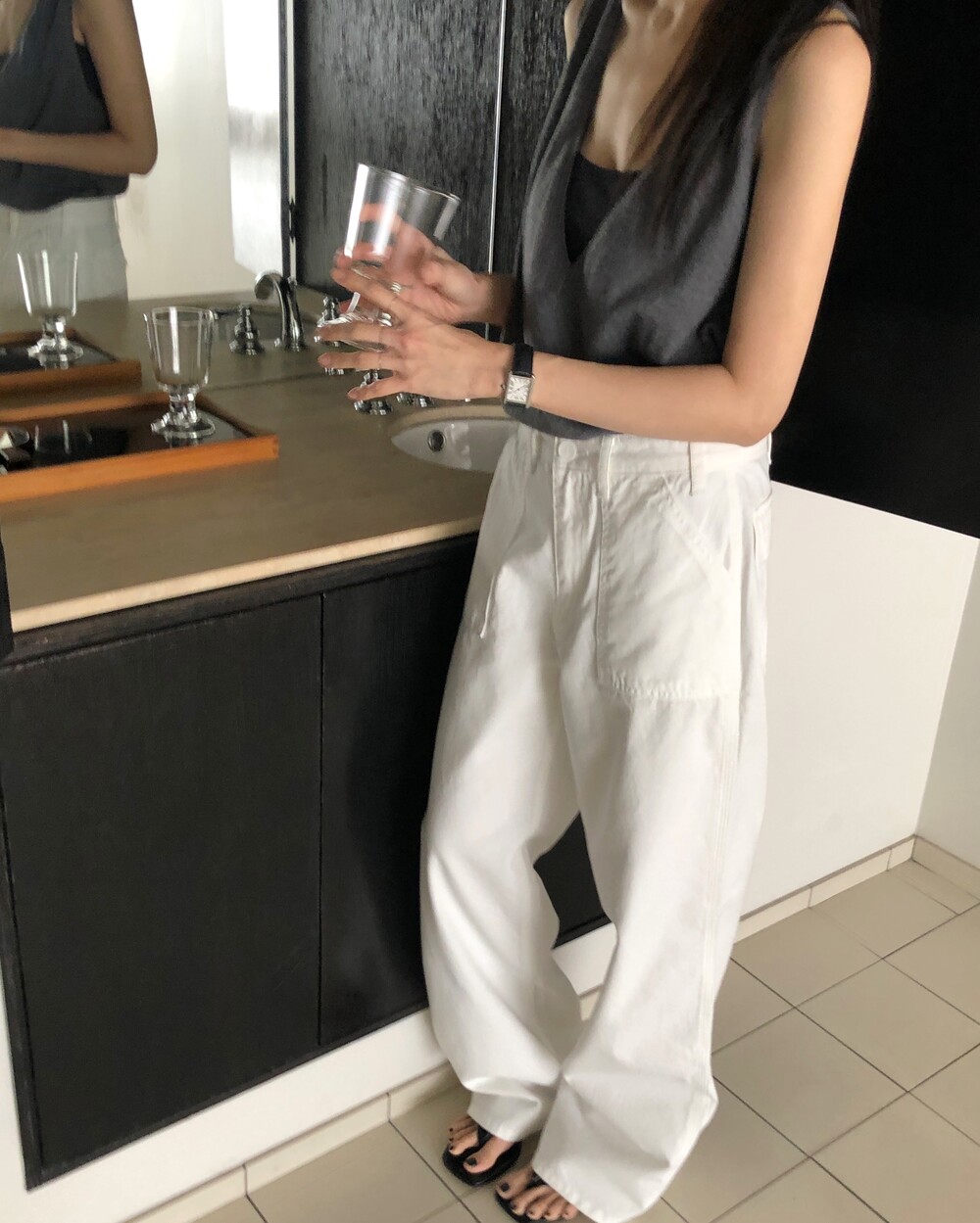 Model : 키 160, 몸무게 40, 하의 사이즈 S