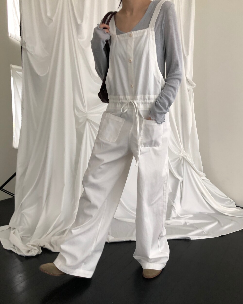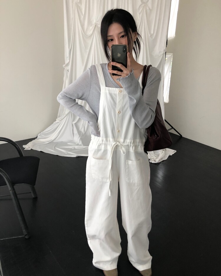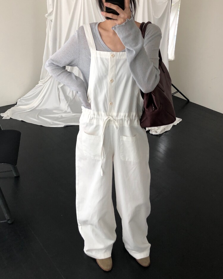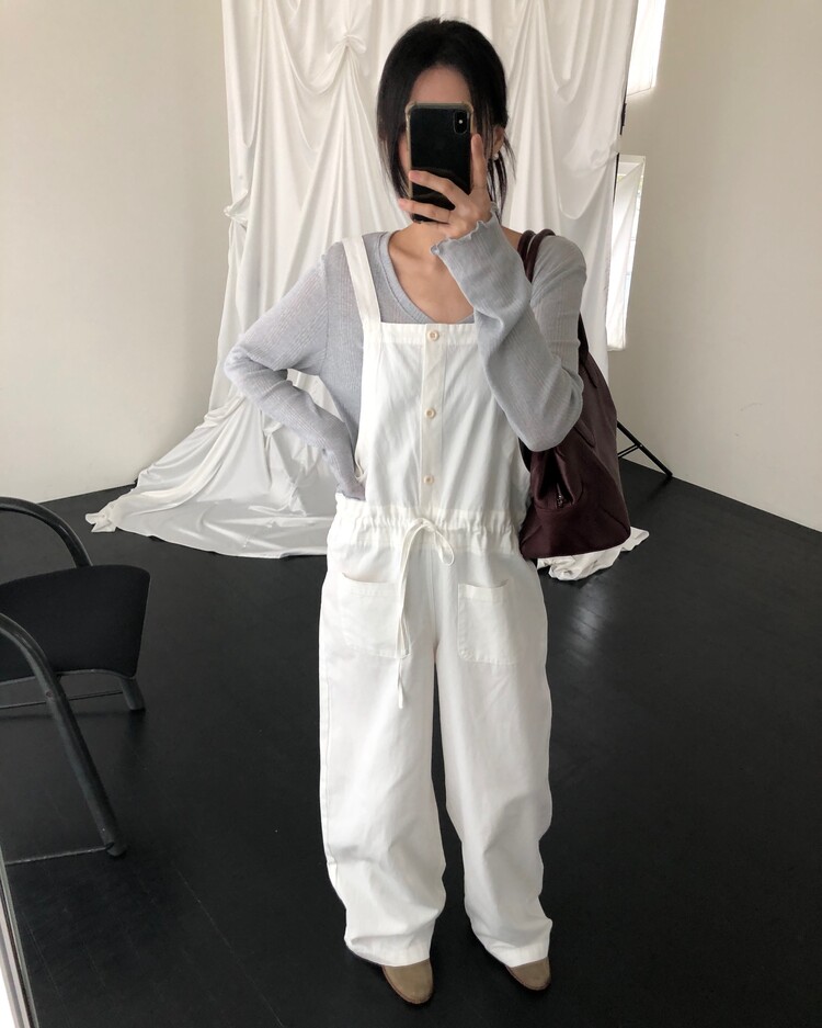 -허리 라인 사이즈를 조절할 수 있어 오버롤 특유의 투박함을 덜어내고 세련된 실루엣으로도 연출 가능하고,