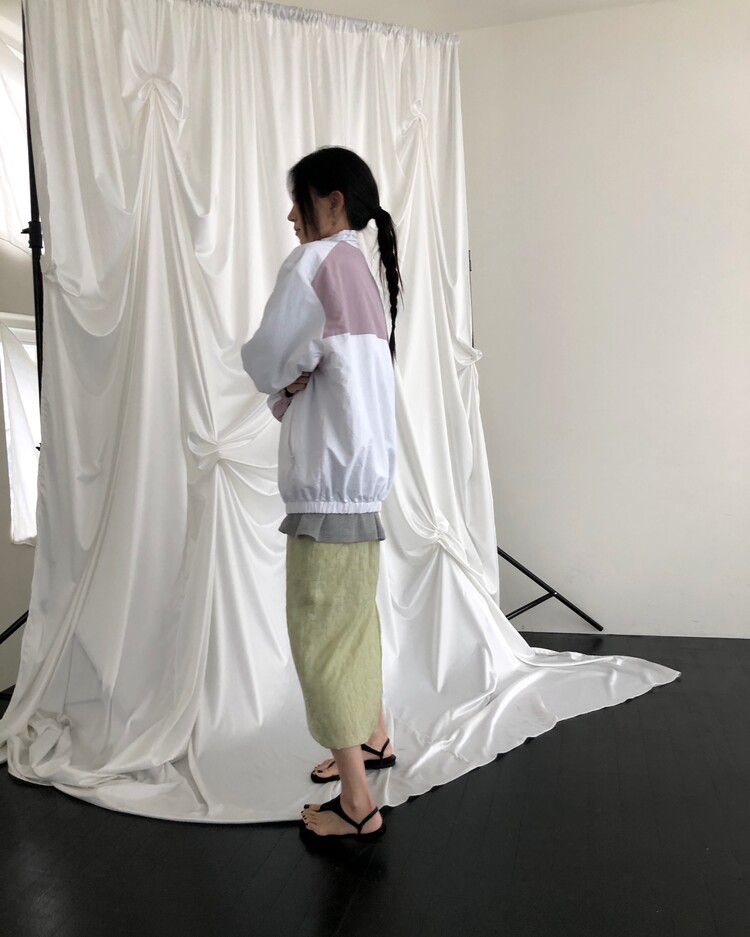 -안감이 내장되어 있고 비침이 심한편은 아니나, 스킨톤의 이너웨어와 함께 착용하시는 것을 권장드립니다.