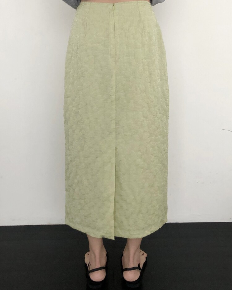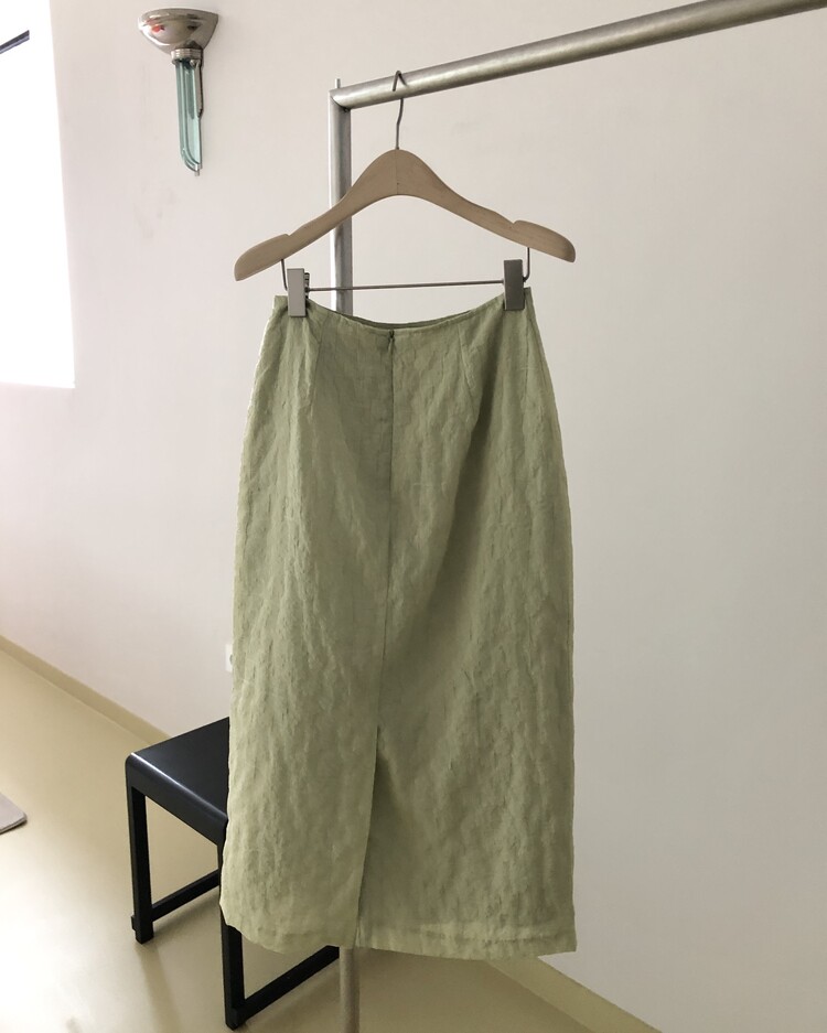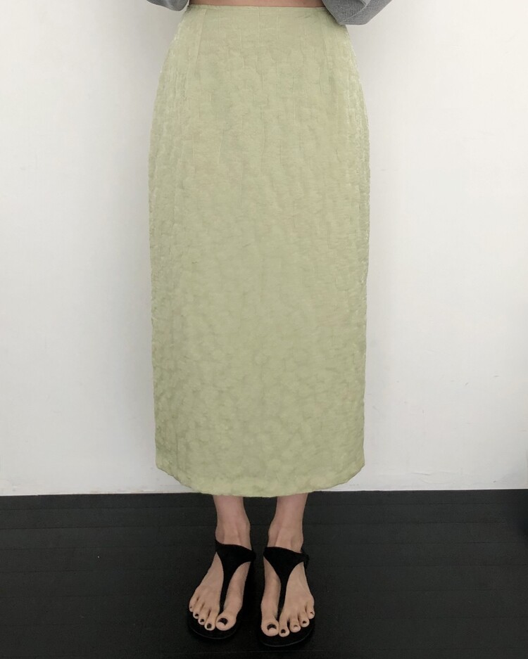 -플라워 패턴이 입체감이 느껴지는 매력적인 자카드 미디 스커트 -일반적인 평면 원단이 아닌, 표면감이 느껴지는 자카드 소재를 사용하여 바디 라인을 탄탄하게 잡아주며 비침 걱정 없이 착용 가능 -뒷면 중앙의 콘솔 지퍼 디테일로 허리 라인을 들뜸 없이 깔끔하게 잡아주어 더욱 슬림하고 정돈된 실루엣 연출 -활동성을 고려한 뒷트임 디테일을 더해, 미디 기장임에도 편안한 착용감 선사 -허리부터 힙까지 매끄럽게 떨어지는 H라인 핏으로 체형을 더욱 길고 날씬해 보이게 만들어 주는 아이템