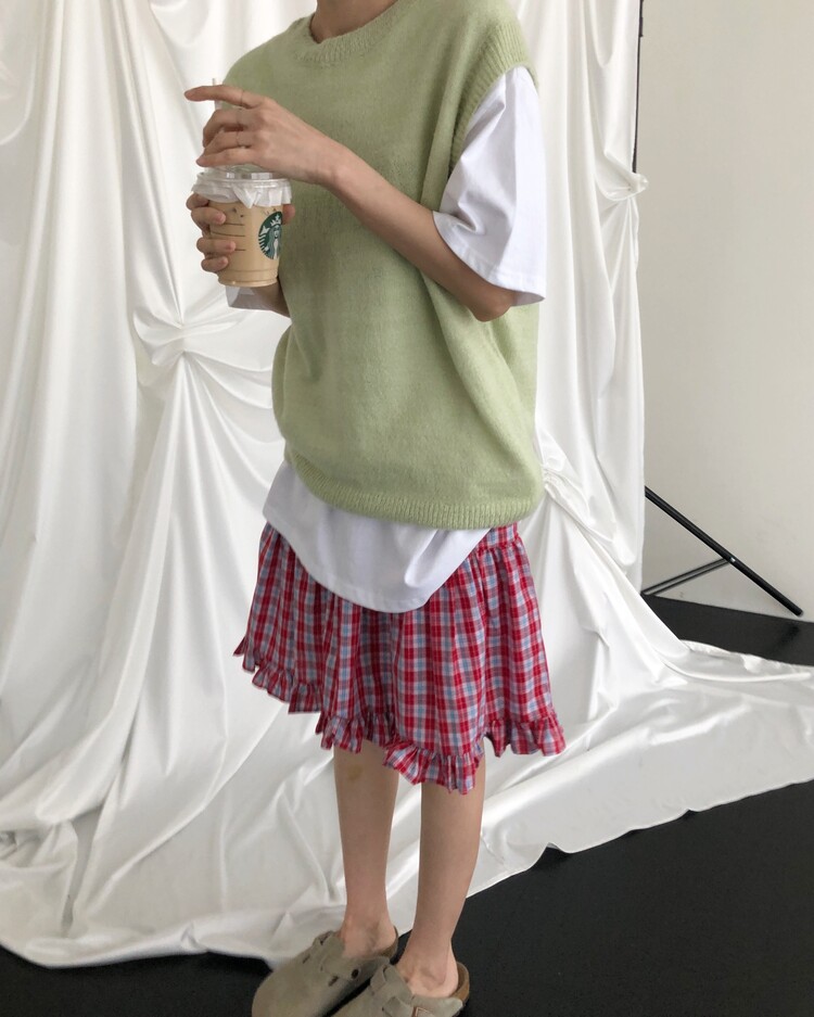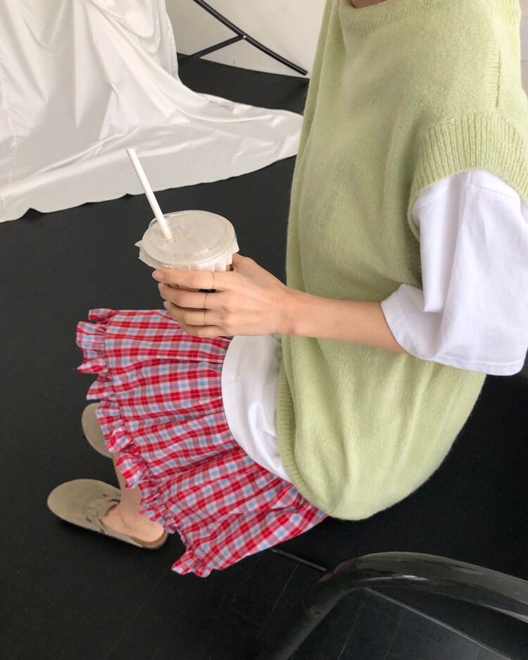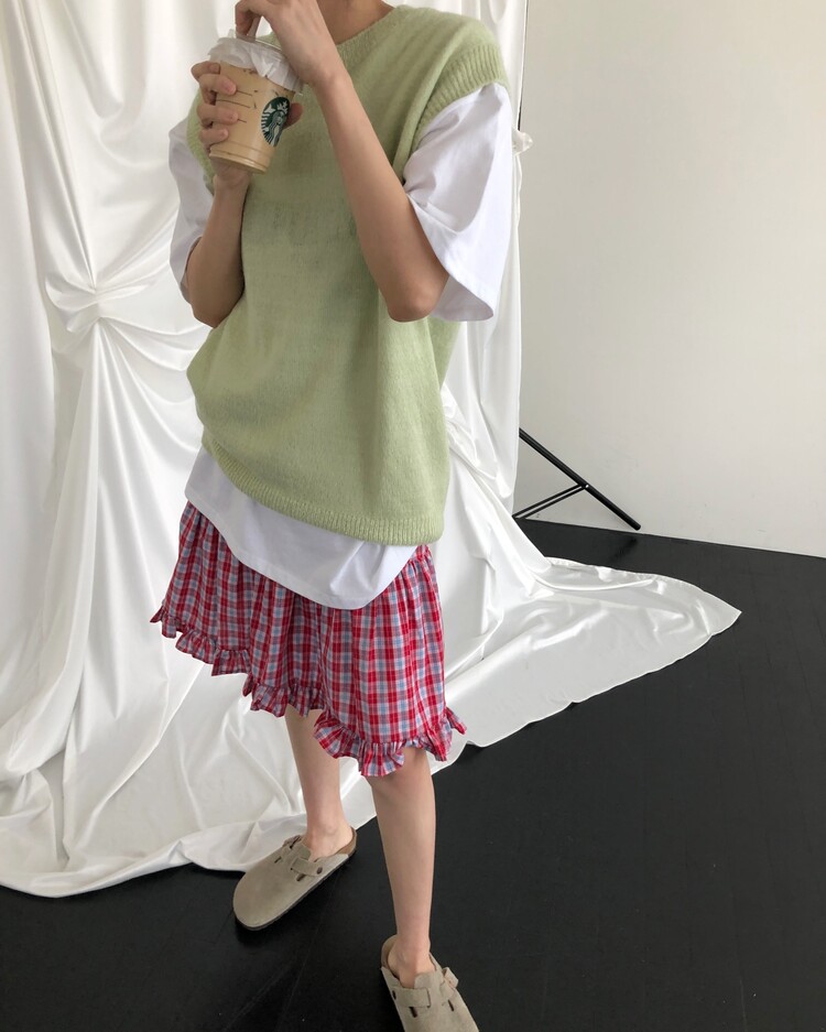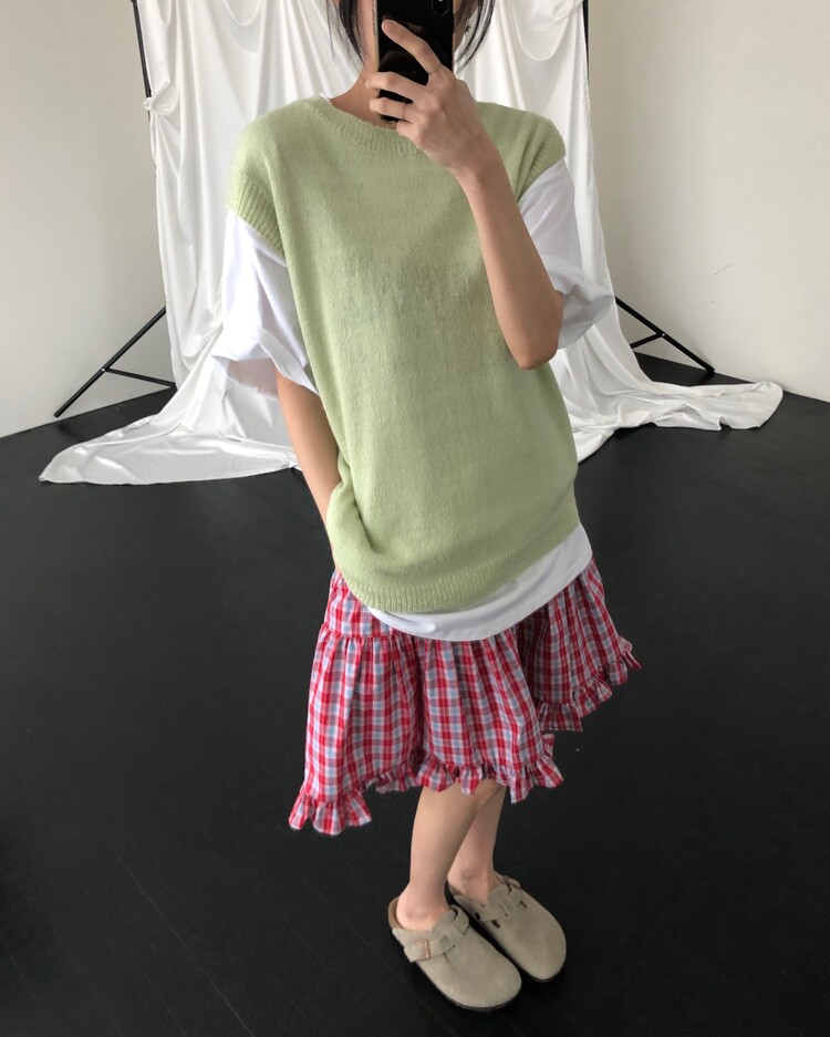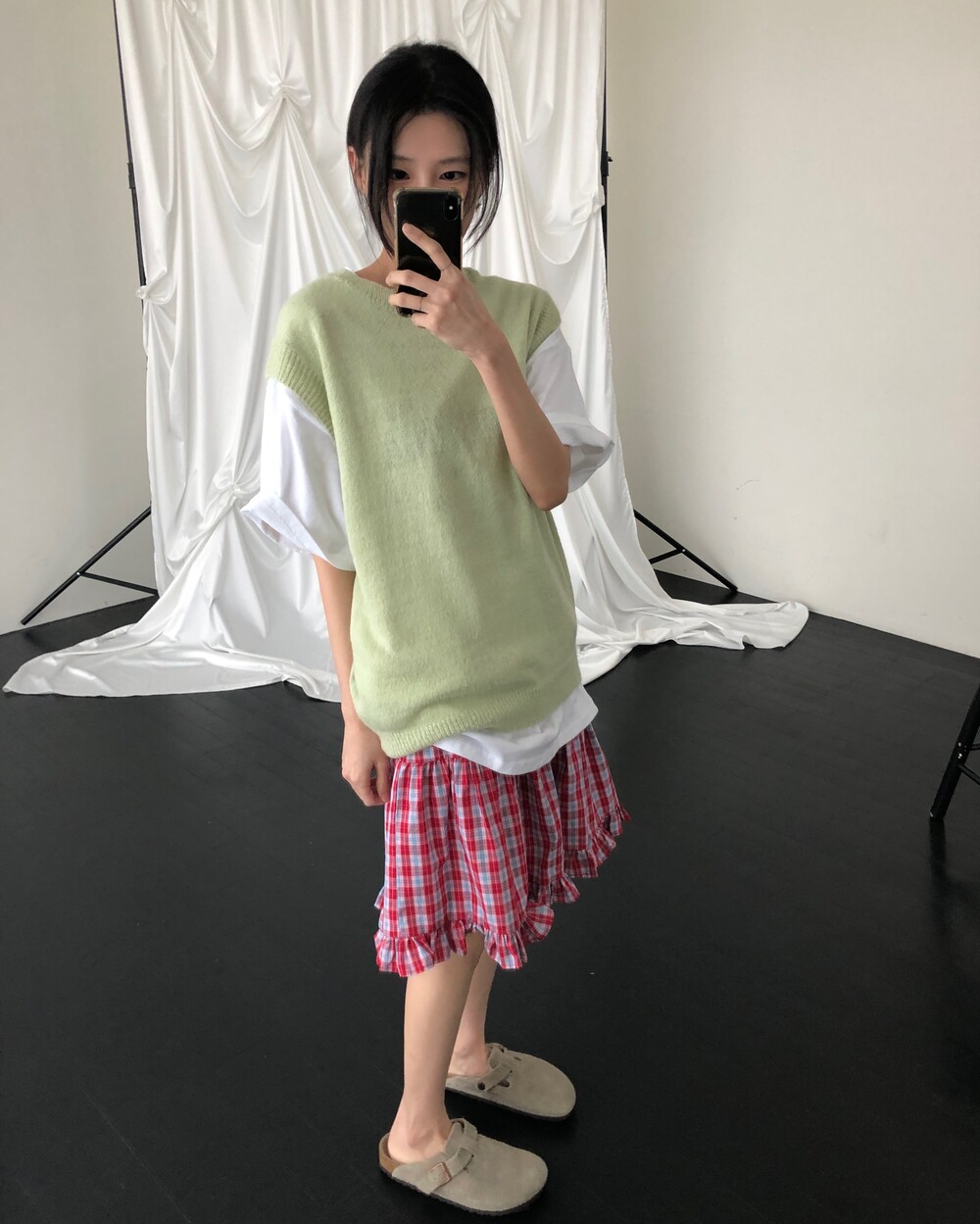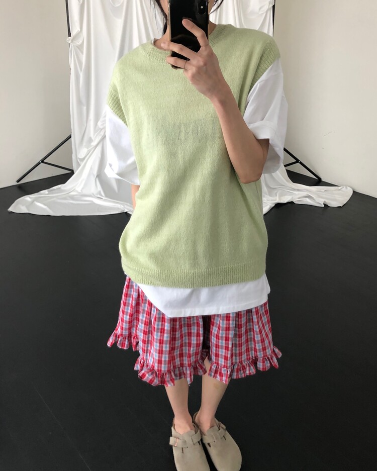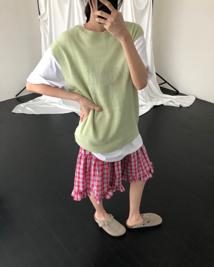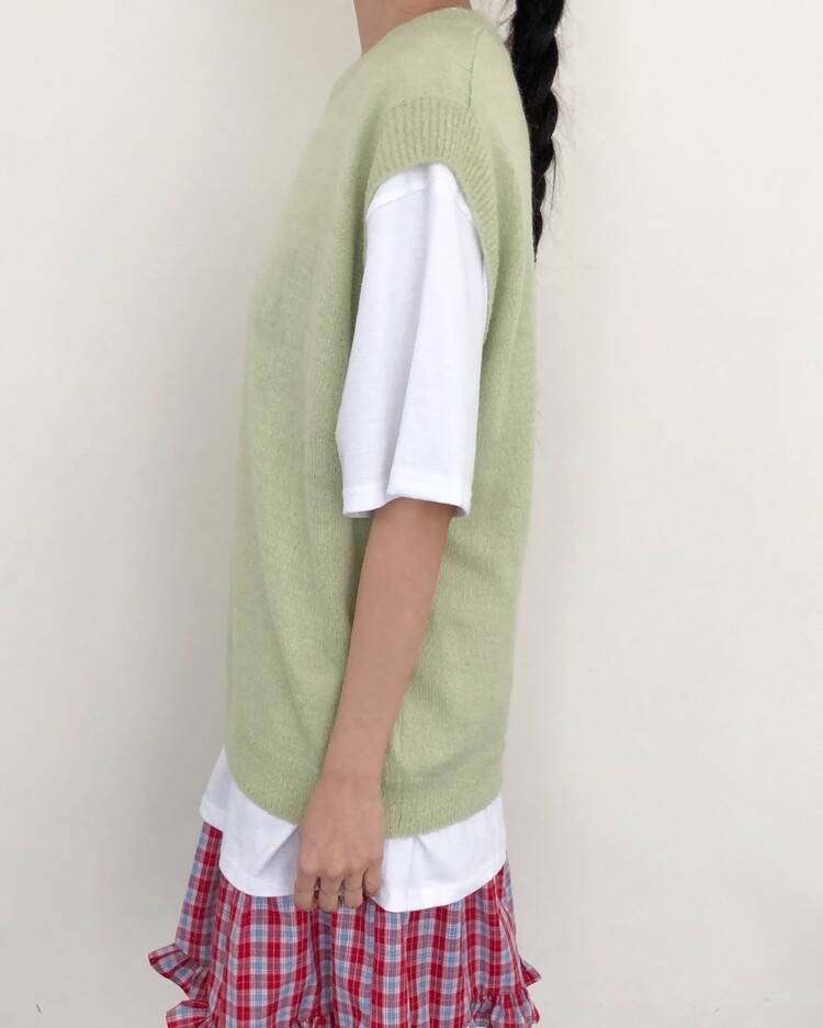 -포근하고 헤어리한 텍스처가 돋보이는 소프트 라운드 니트 베스트