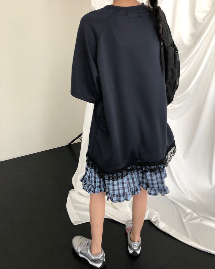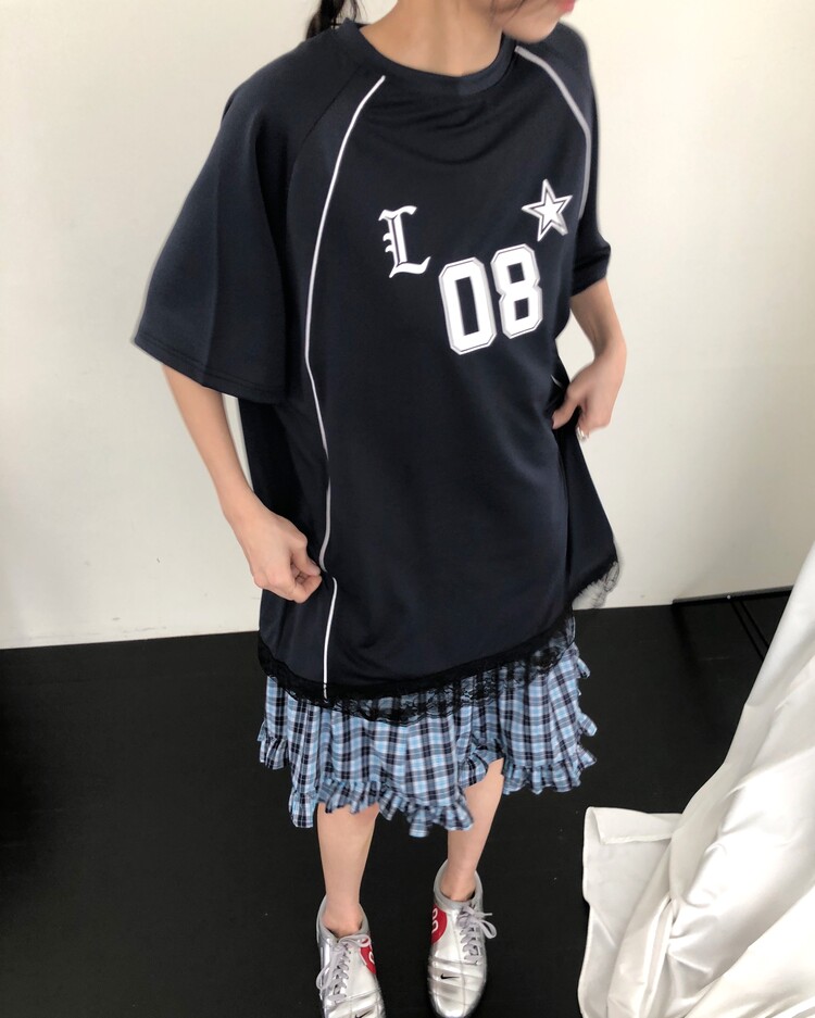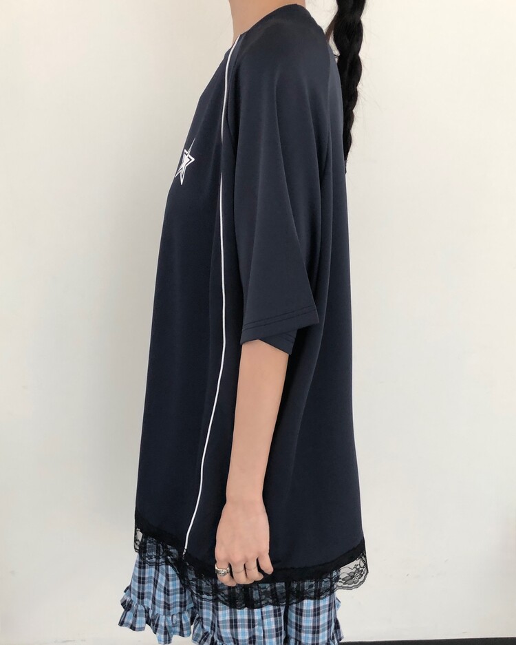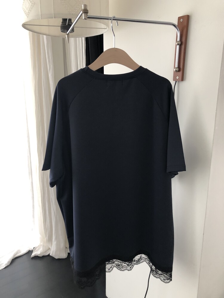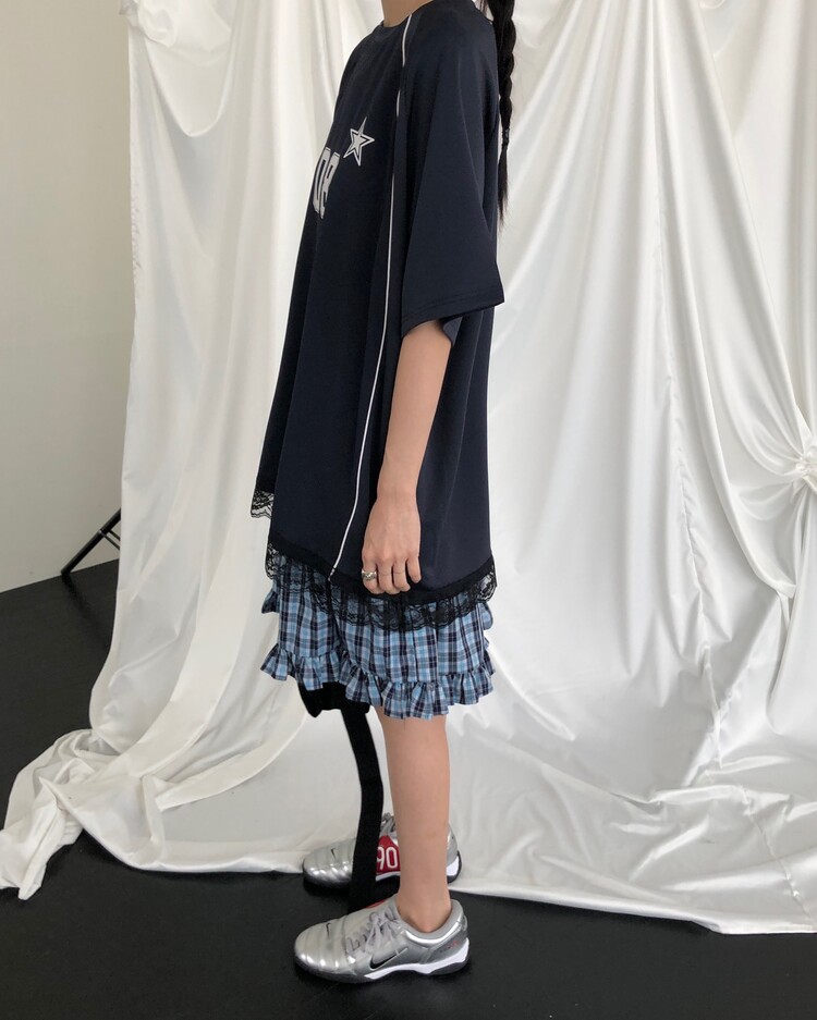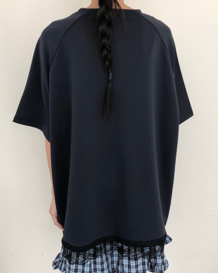 -유니크한 룩으로 완성시켜주는 레이스 배색 오버핏 반팔 티셔츠