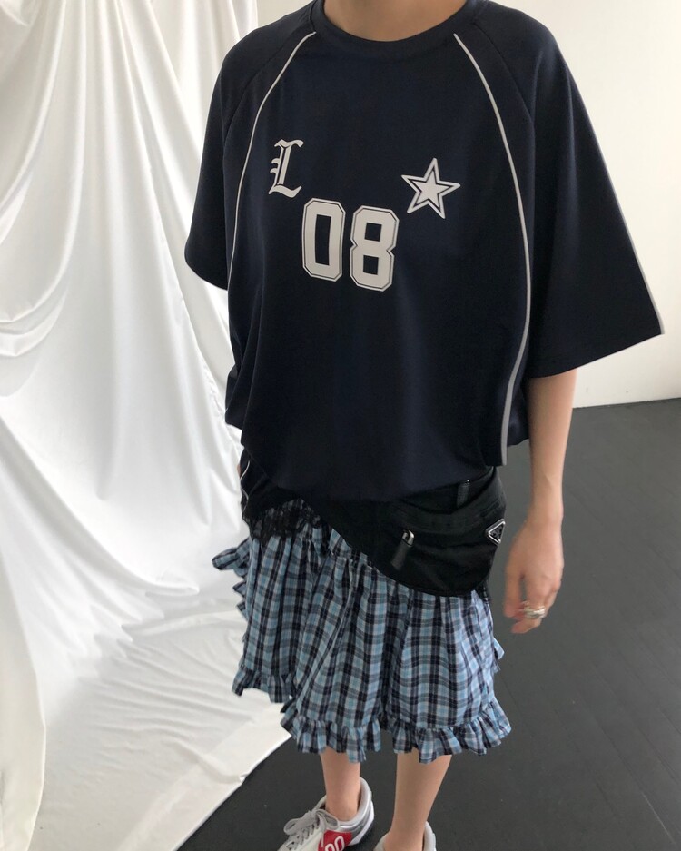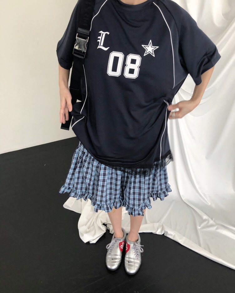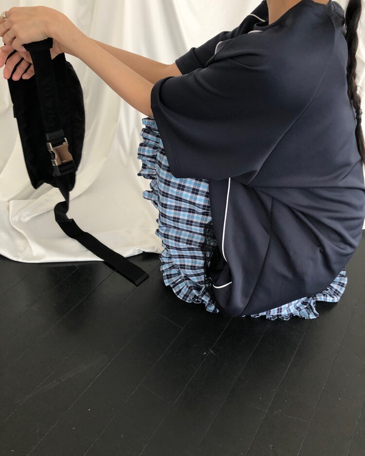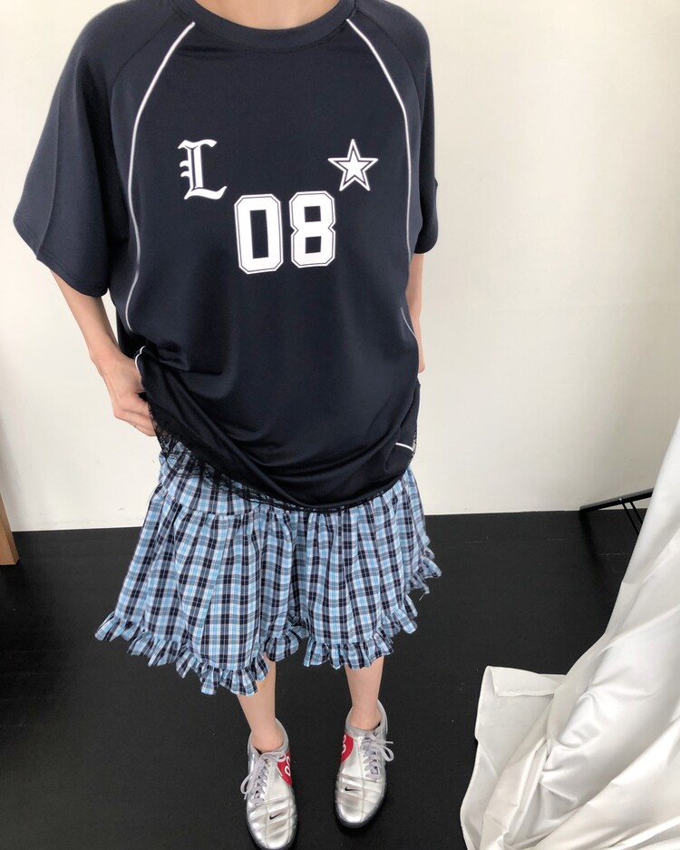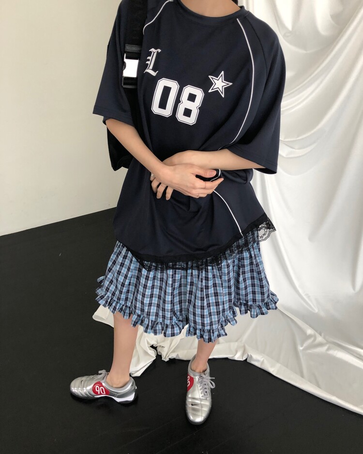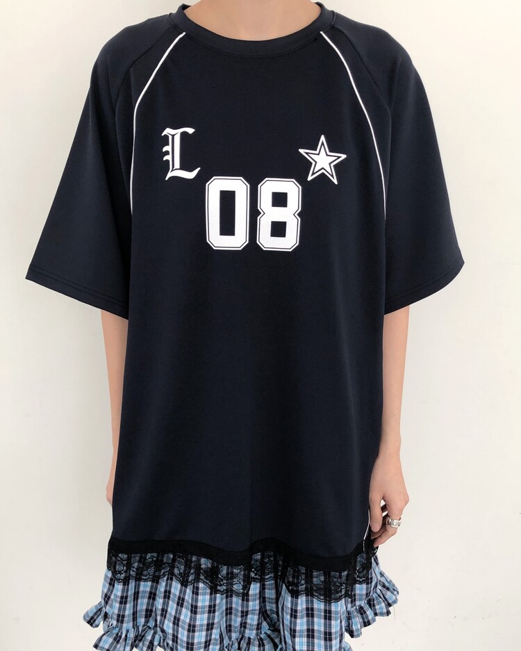 -유니크한 룩으로 완성시켜주는 레이스 배색 오버핏 반팔 티셔츠