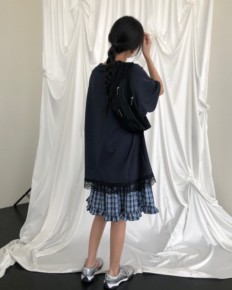 밑단 레이스 디테일을 더해 캐주얼부터 페미닌한 무드로 다양하게 연출 가능
