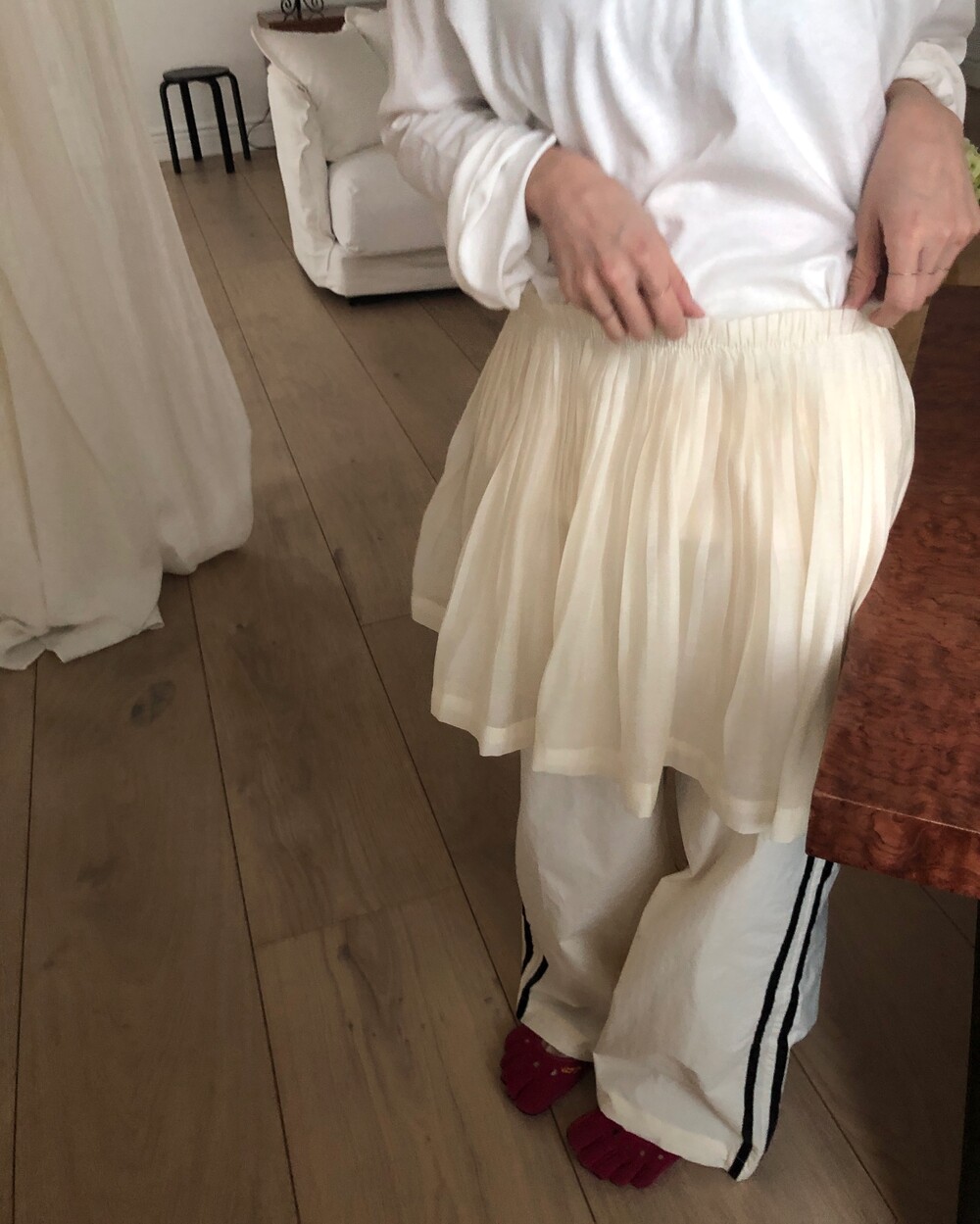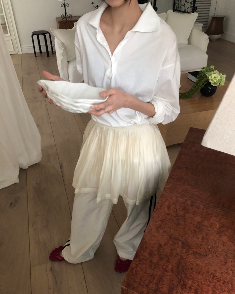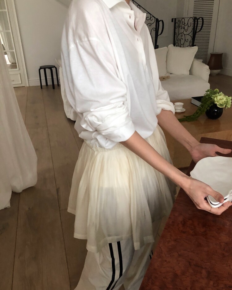 -안감이 내장되어 있고 비침이 심한편은 아니나, 스킨톤의 이너웨어와 함께 착용하시는 것을 권장드립니다.