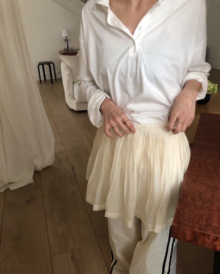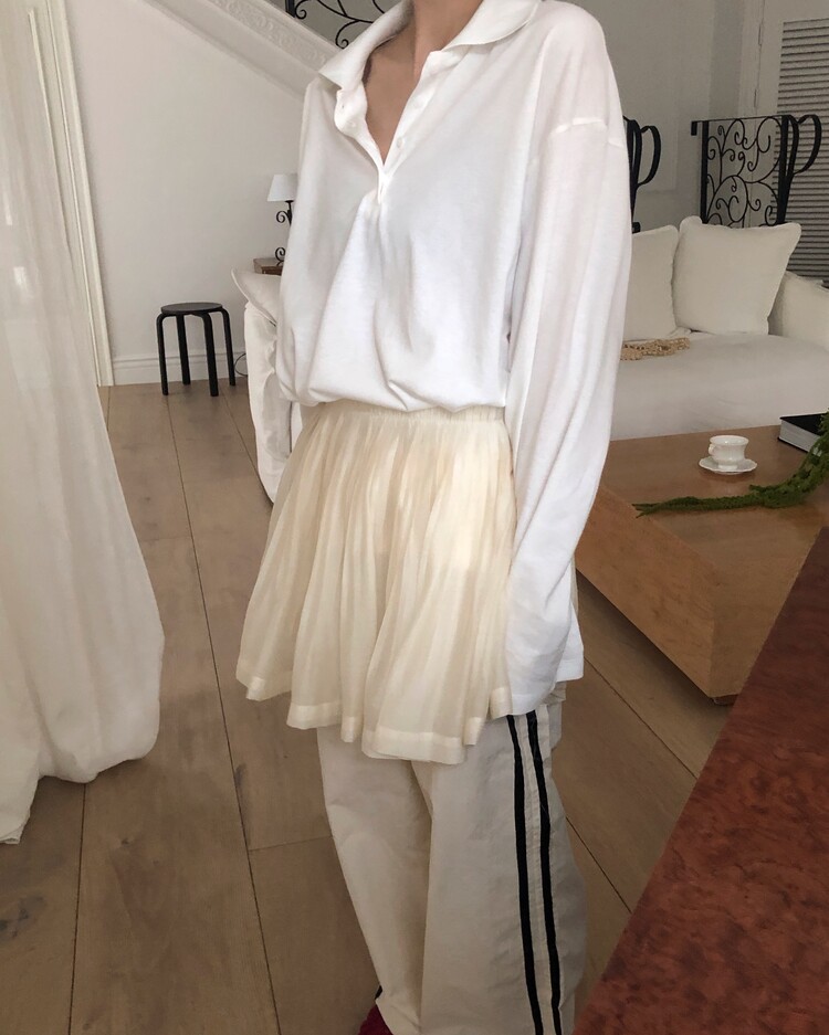 -섬세한 플리츠 주름 위로 더해진 컷오프 디테일이 유니크한 분위기를 자아내는 미니 스커트 -일반적인 마감 처리와 달리 끝단을 자연스럽게 살려 빈티지하면서도 힙한 감성을 더했으며, 가벼운 쉬폰 소재로 로맨틱한 실루엣으로 연출 -허리 전체 부드럽지만 탄탄한 밴딩을 더해 사이즈 구애 없이 착용 가능하고, 편안한 활동감 선사 -촘촘하게 잡힌 플리츠 주름이 풍성한 볼륨감을 만들어주며, 착용시 레그 라인을 더욱 길고 슬림하게 보이게 해주는 체형 보완 효과 -정형화되지 않은 내추럴한 올 풀림 디테일이 자칫 평범할 수 있는 플리츠 디자인에 감각적인 포인트를 더해 다양한 상하의와 레이어드 스타일링이 가능한 소장 가치가 높은 아이템