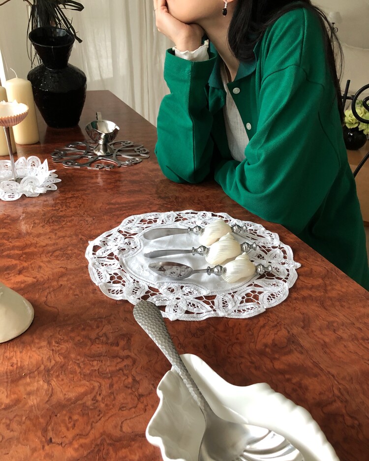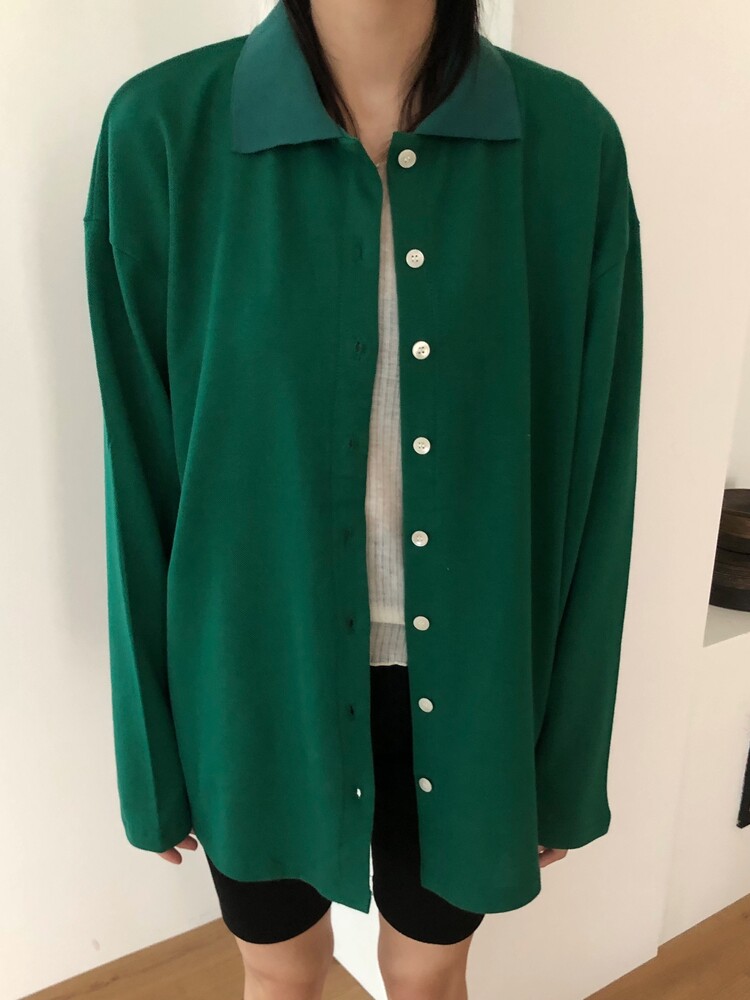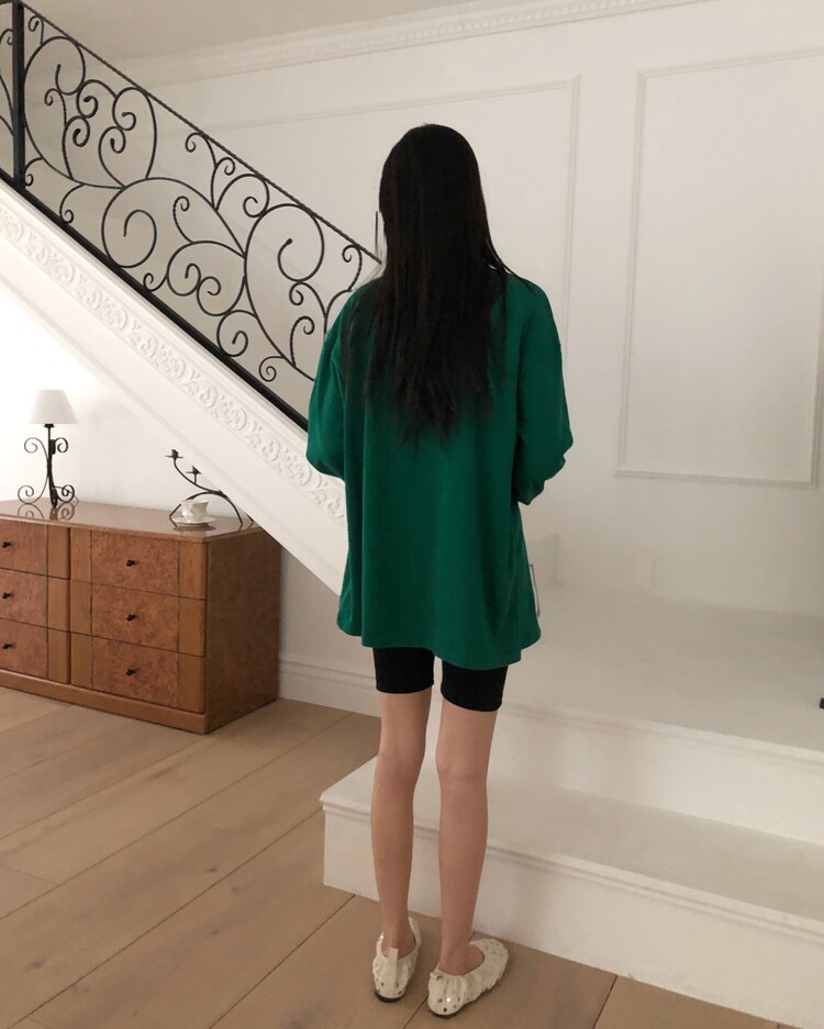 -어깨 라인이 자연스럽게 드롭되는 루즈핏으로 설계되어 체형 보정 효과는 물론, 여유롭고 여리여리한 무드로 연출