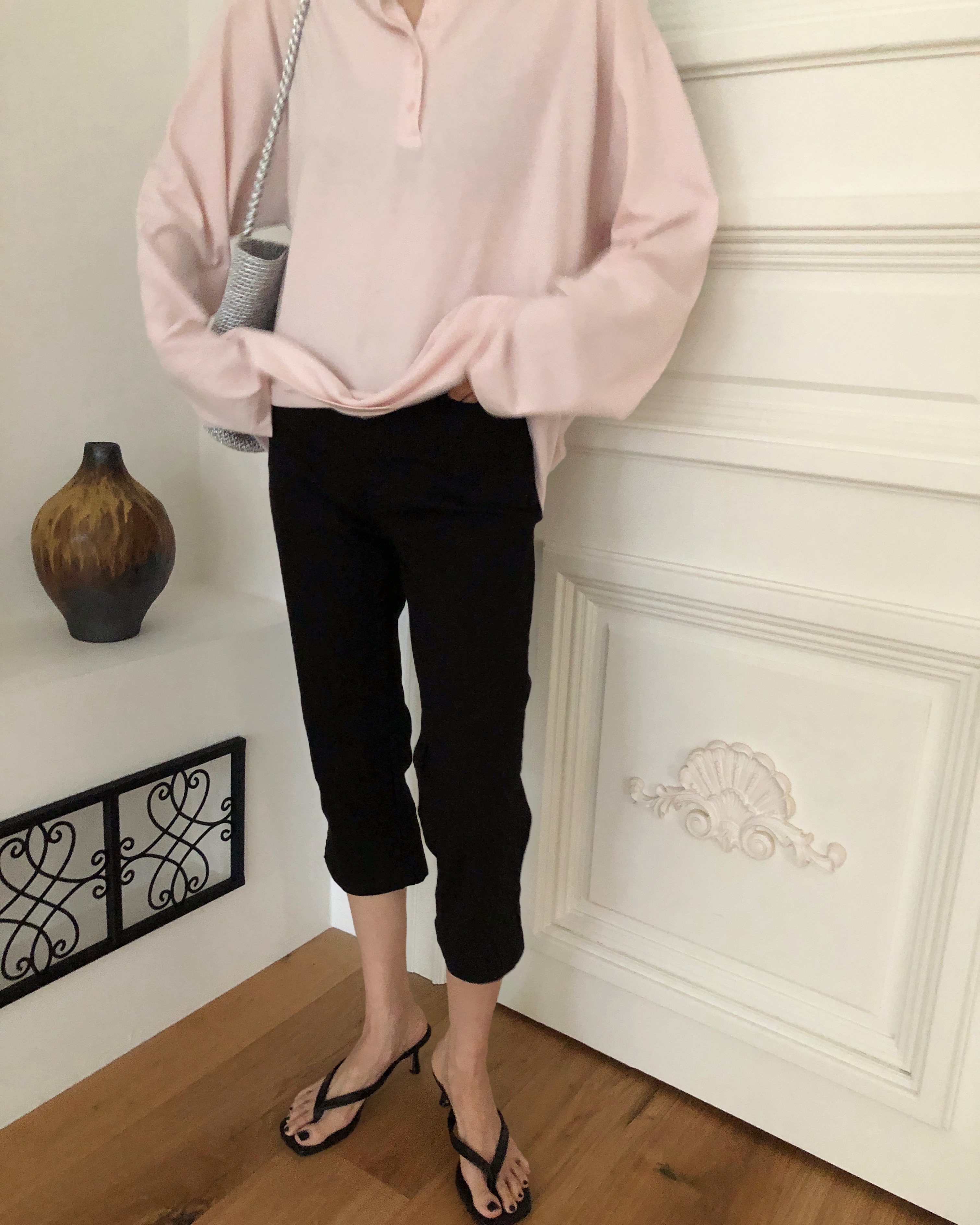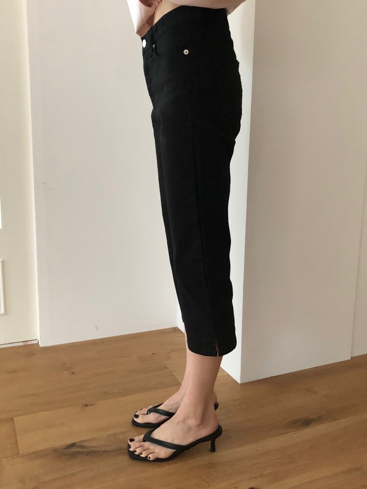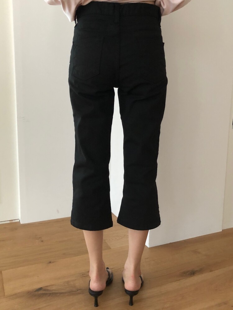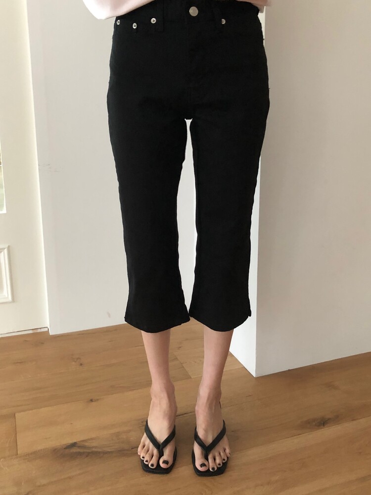 -클래식한 데님에 트렌디한 카프리 기장을 더해준 사이드 슬릿 카프리 데님 팬츠 -탄탄한 코튼 베이스에 복원력이 뛰어난 스판 혼방 소재를 사용하여, 데님 특유의 뻣뻣함 없이 하루 종일 편안한 착용감 선사 -무릎 늘어남을 최소화하면서도 바디라인을 쫀쫀하게 잡아주어 더욱 슬림한 레그 라인 연출 -밑단 옆면에 더해진 슬릿 디테일로 종아리 라인이 부각되지 않도록 여유로운 아웃핏 완성 -9부 카프리 기장으로 설계되어 다리가 더욱 길어 보이며, 데일리하면서도 격식 있는 자리까지 활용 가능한 아이템