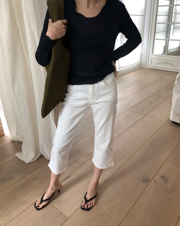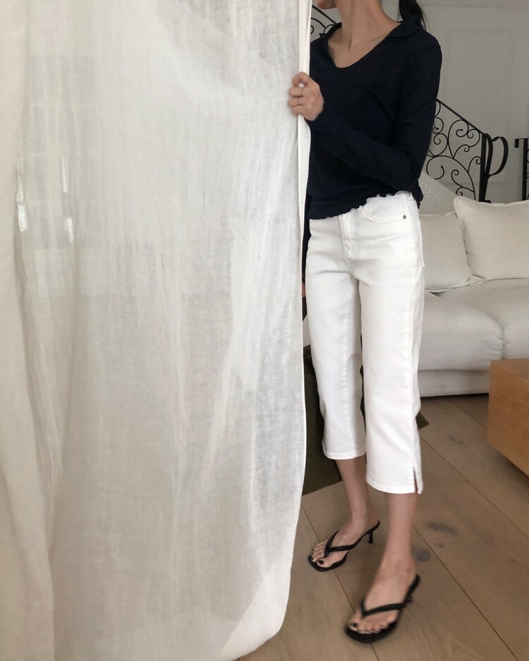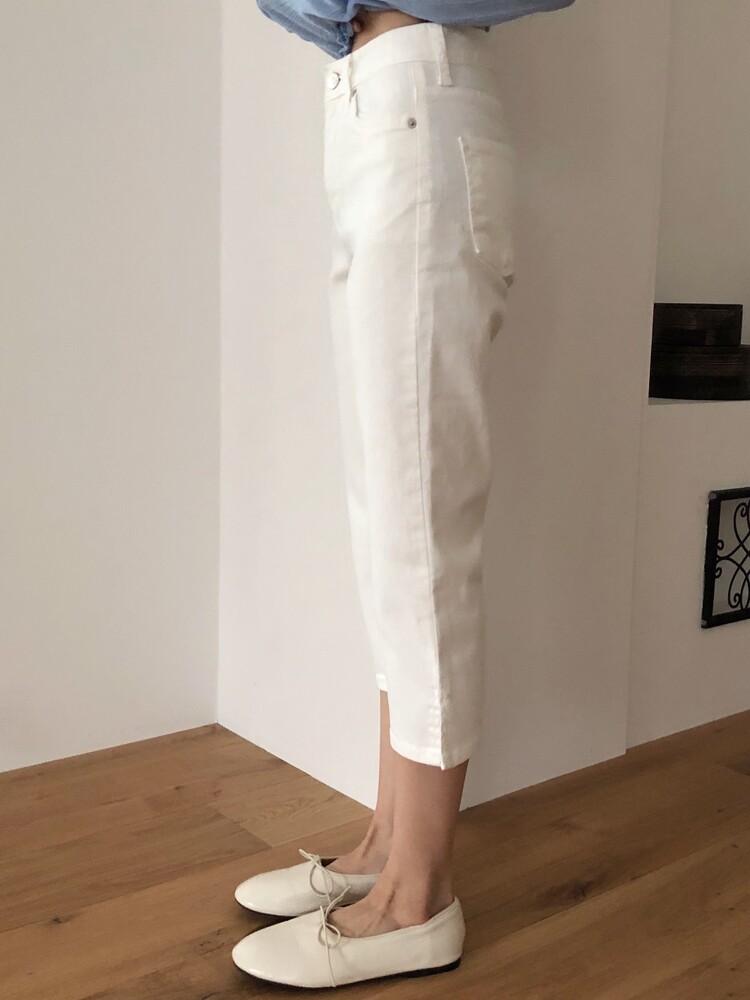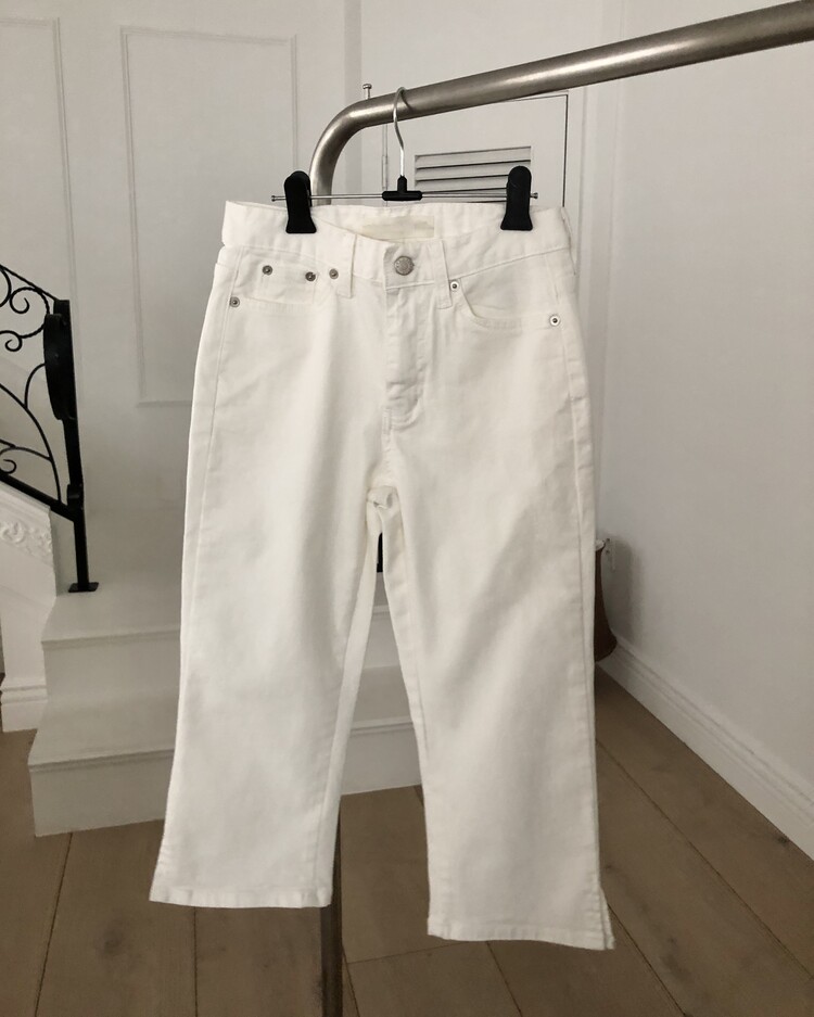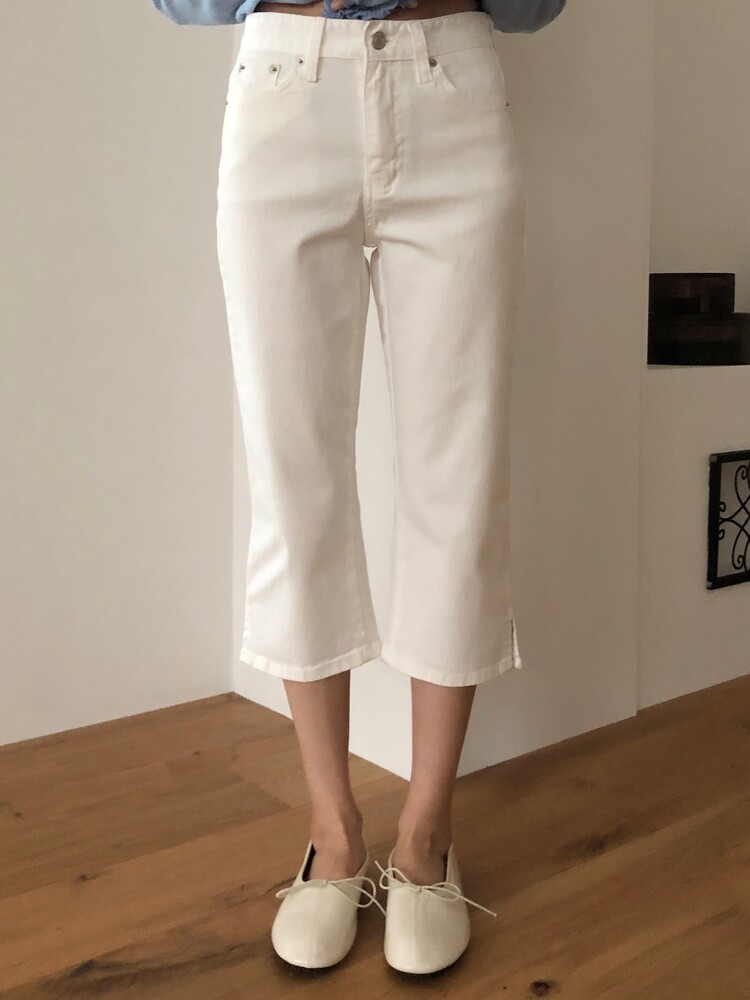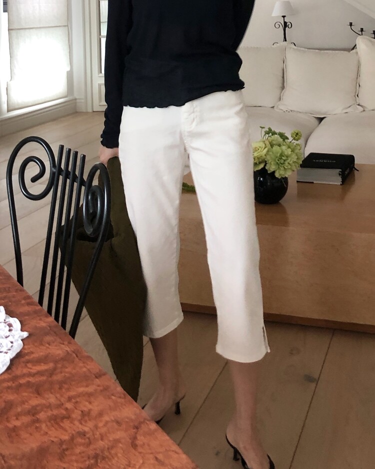 -클래식한 데님에 트렌디한 카프리 기장을 더해준 사이드 슬릿 카프리 데님 팬츠
