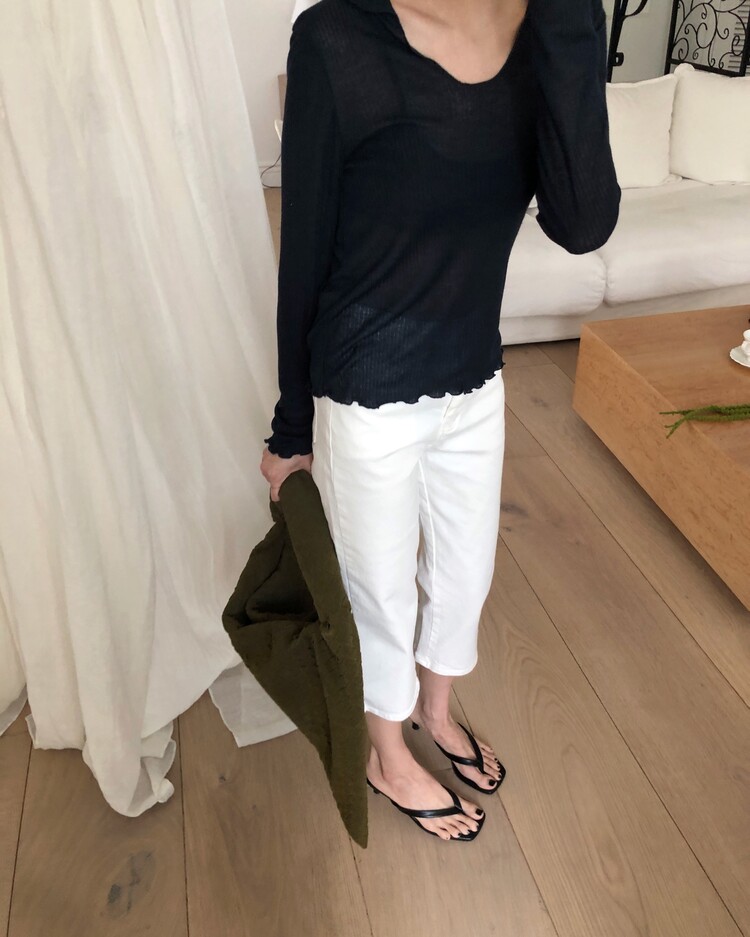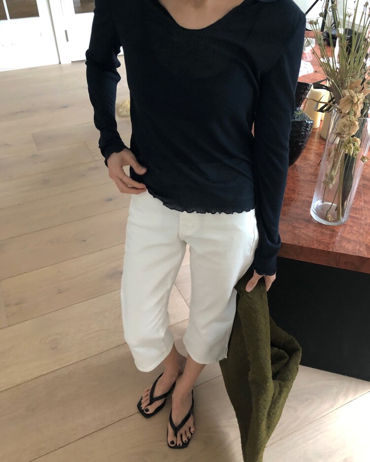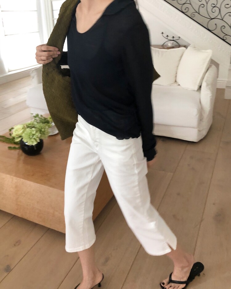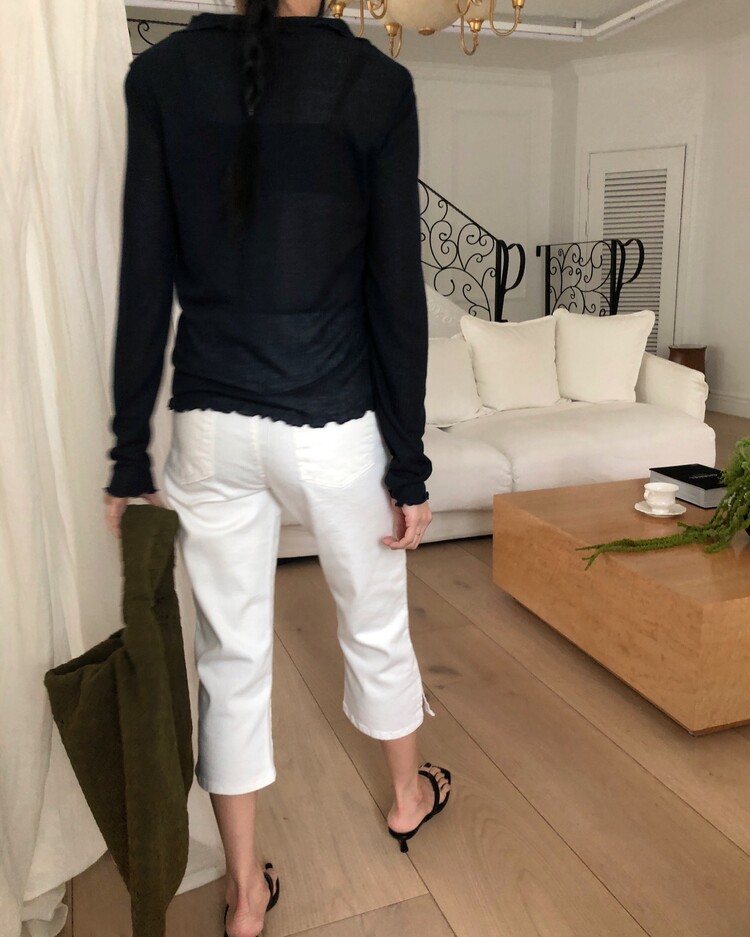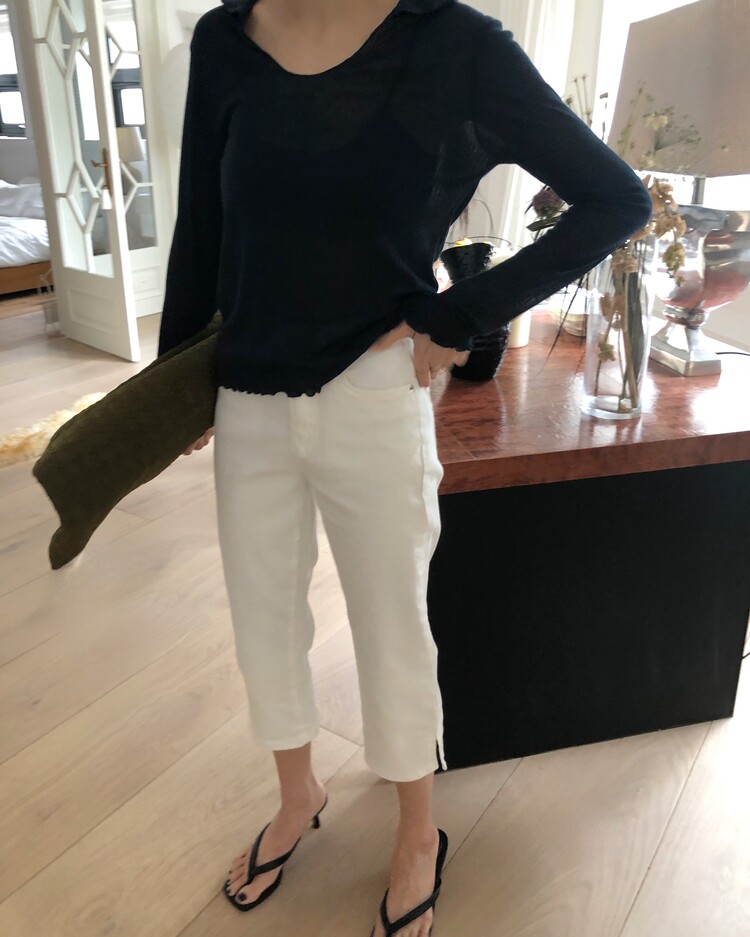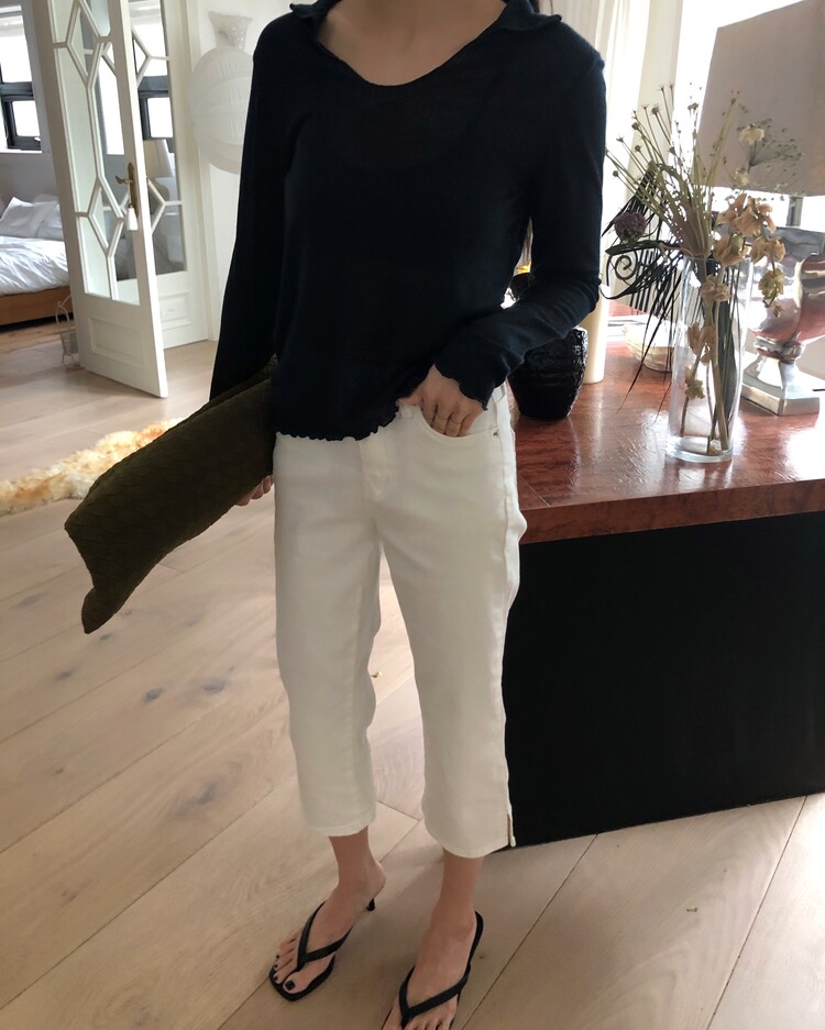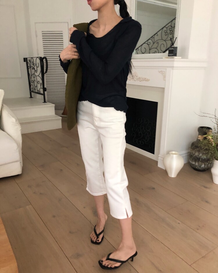 -클래식한 데님에 트렌디한 카프리 기장을 더해준 사이드 슬릿 카프리 데님 팬츠