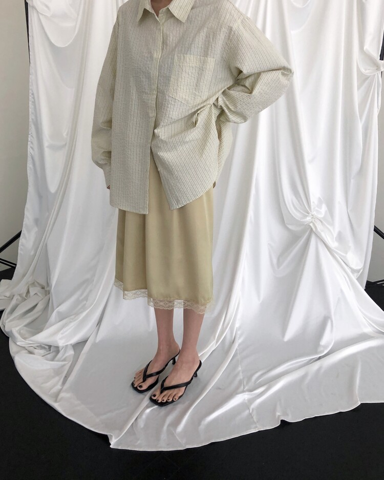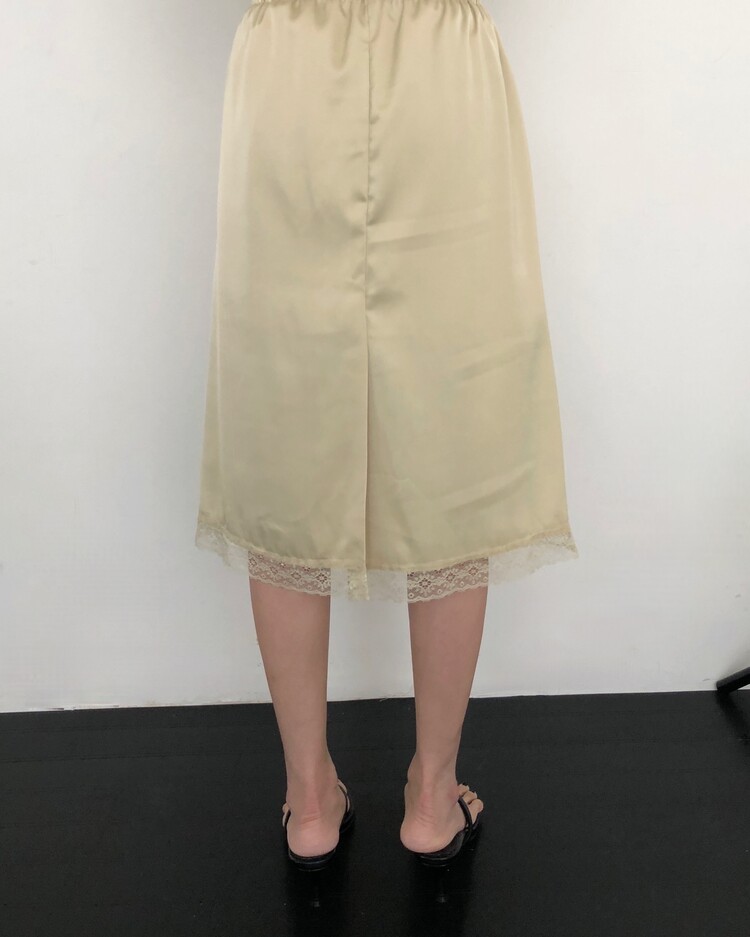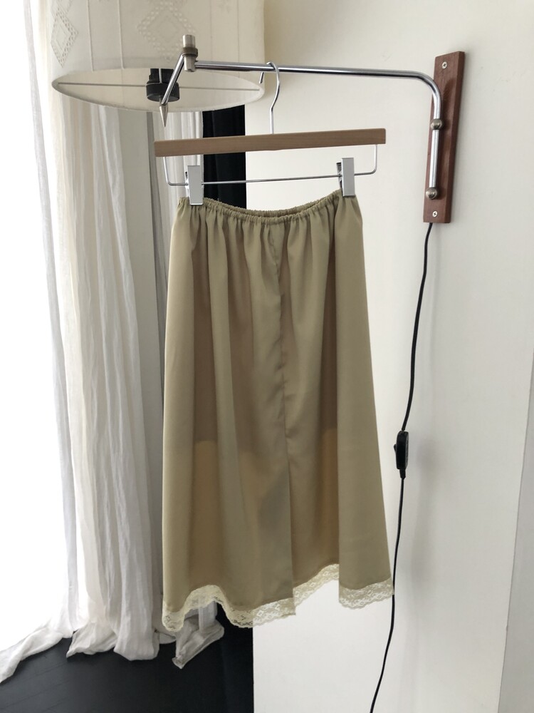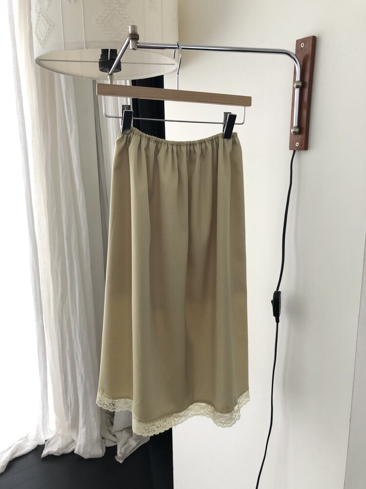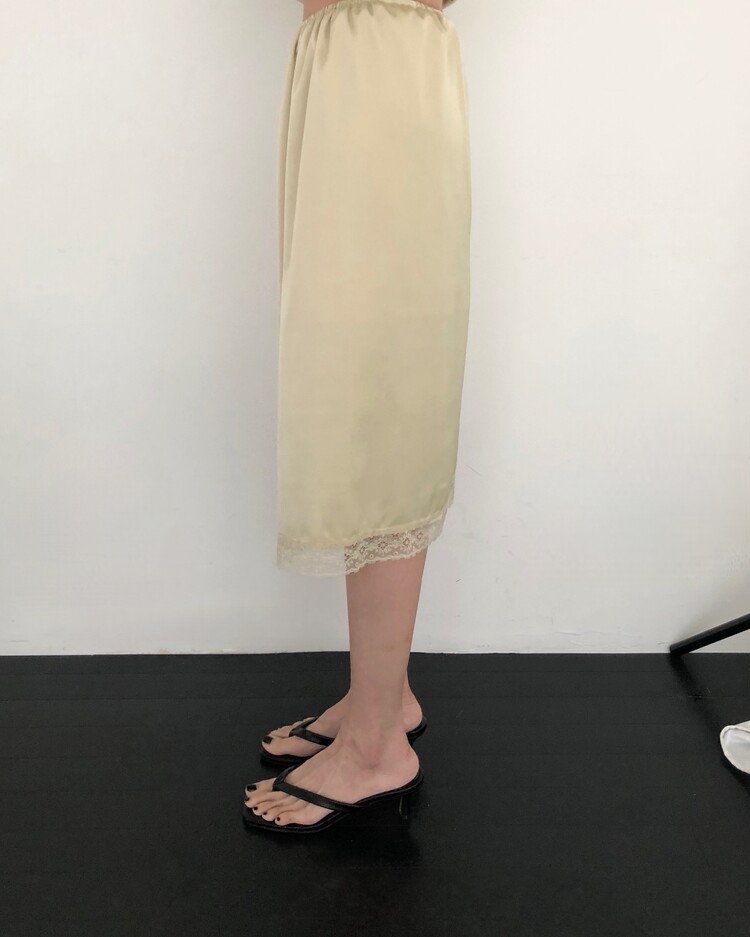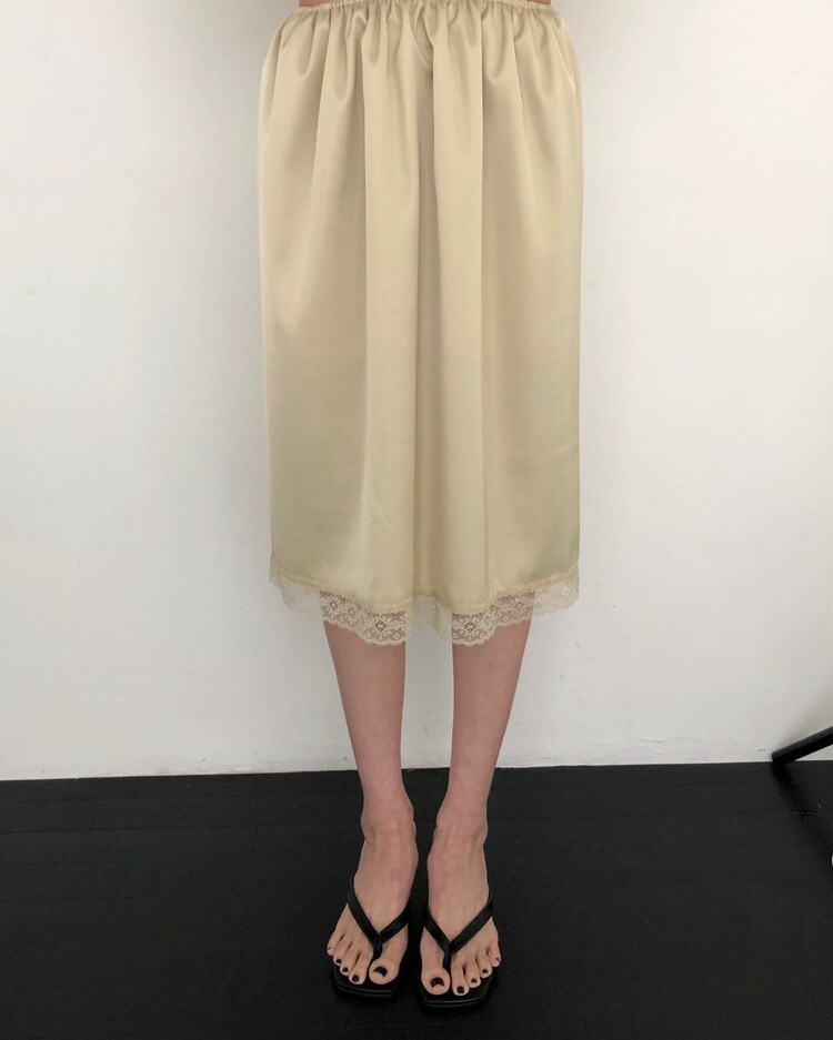 -흐르듯 찰랑이는 사틴 소재와 밑단의 섬세한 레이스 디테일이 조화로운 밴딩 스커트