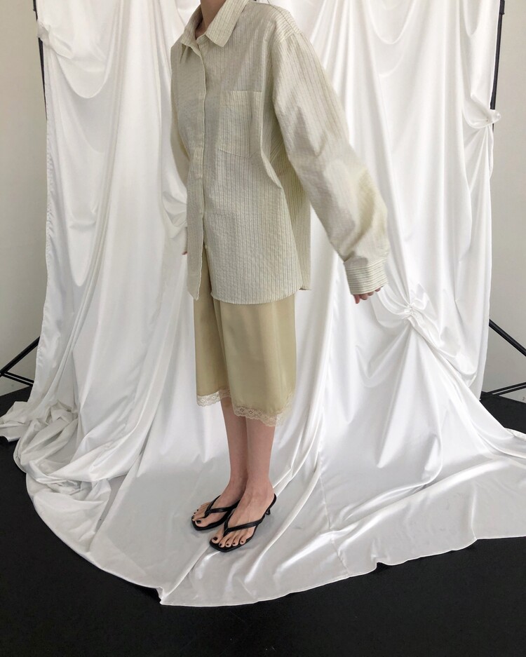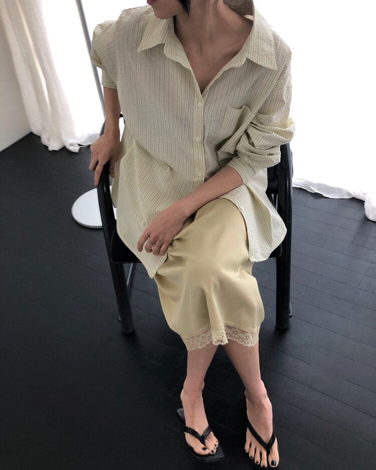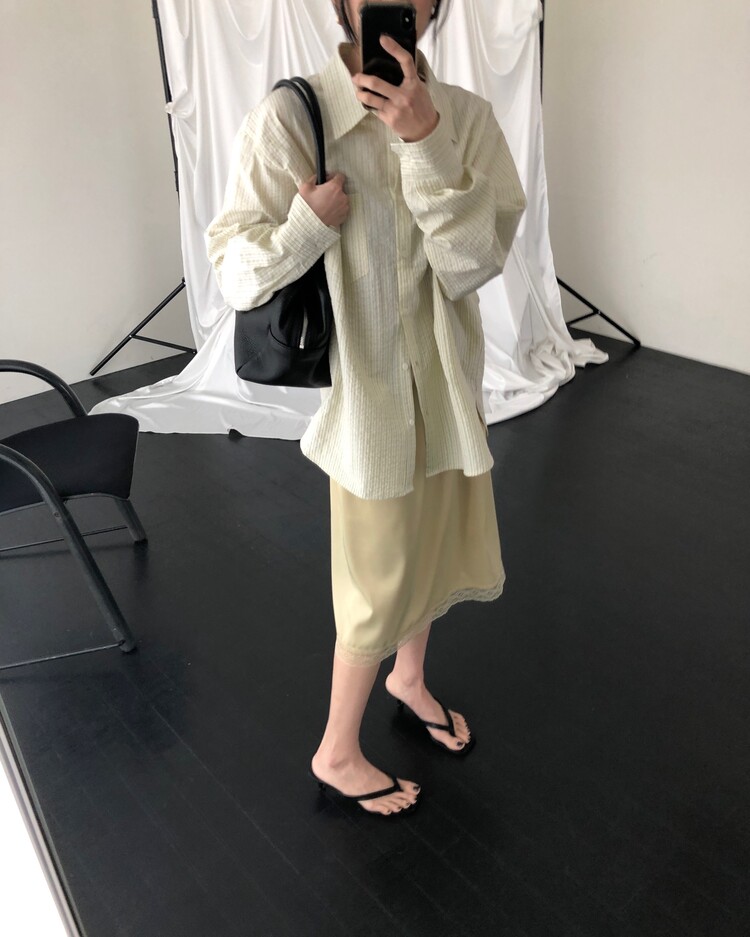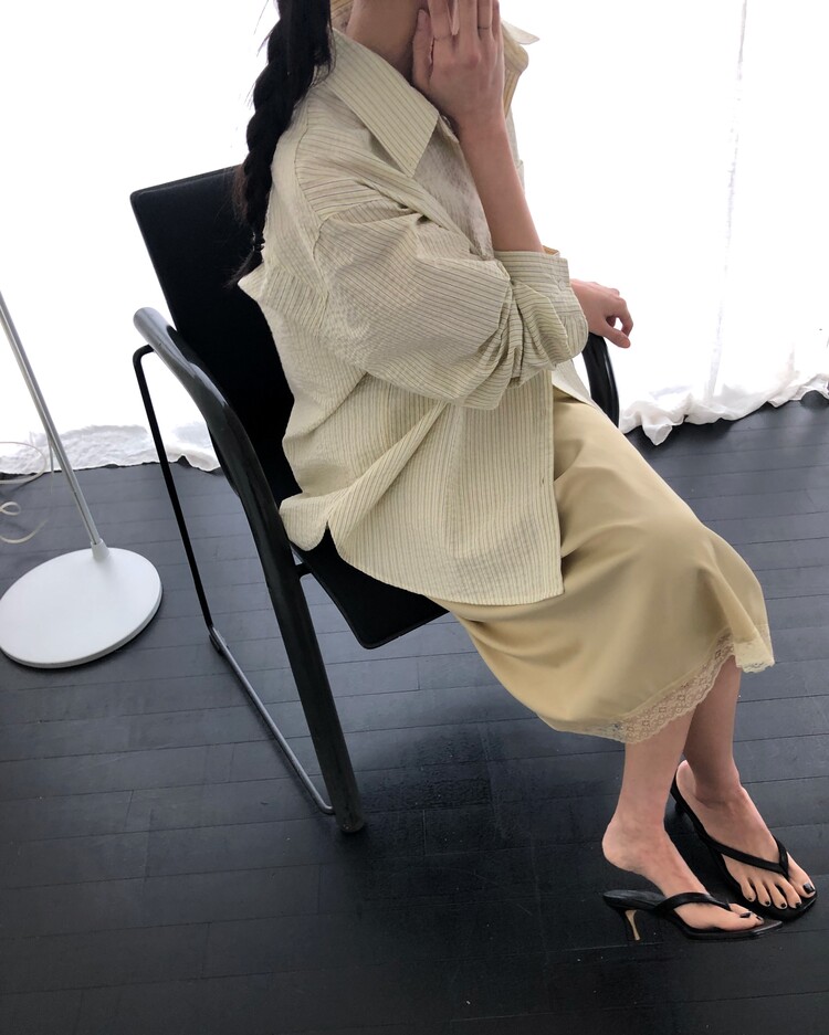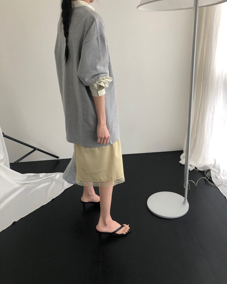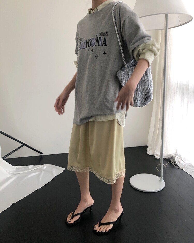 -흐르듯 찰랑이는 사틴 소재와 밑단의 섬세한 레이스 디테일이 조화로운 밴딩 스커트