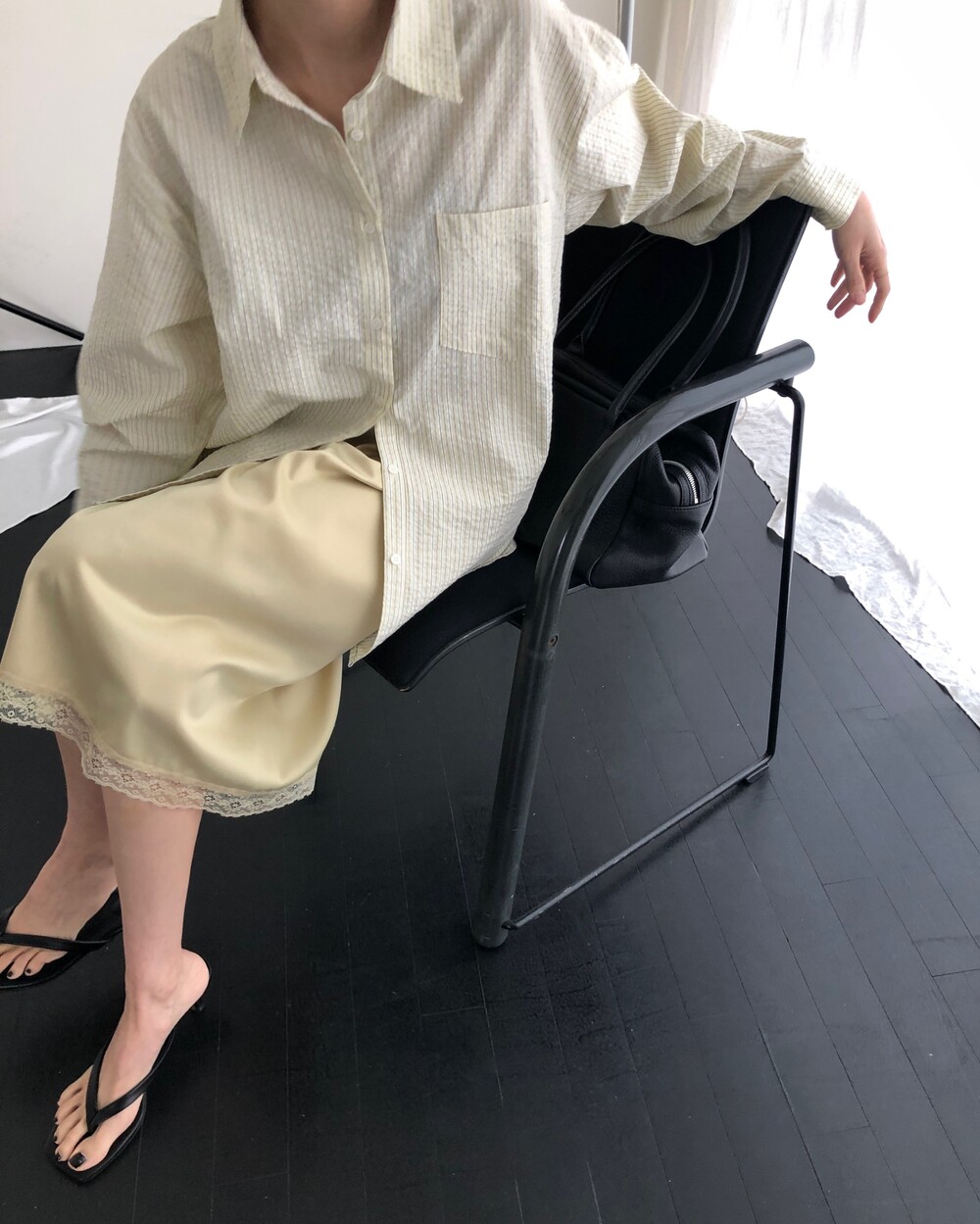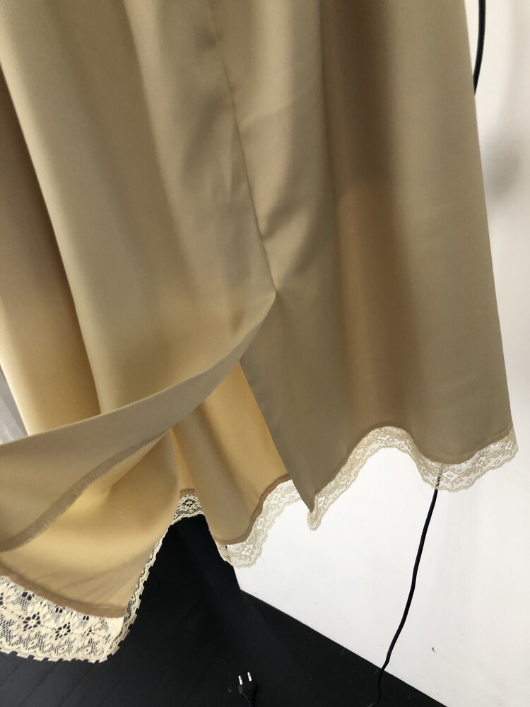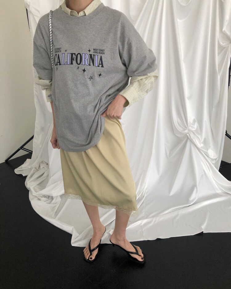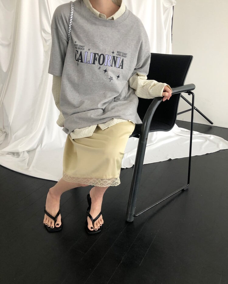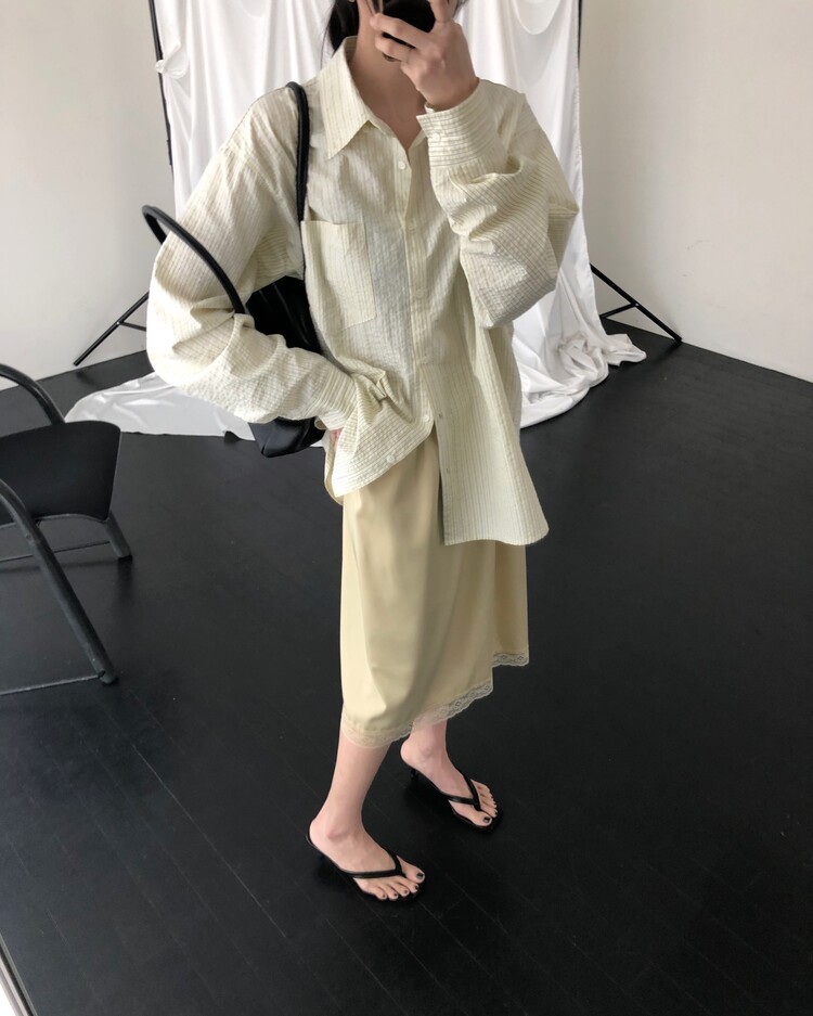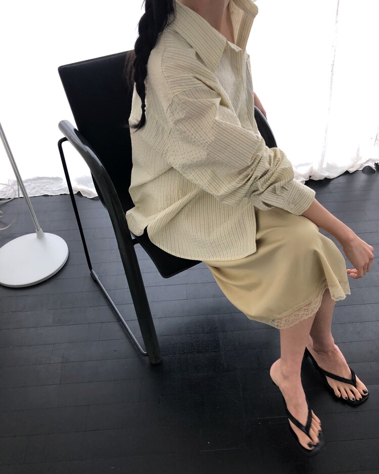 -흐르듯 찰랑이는 사틴 소재와 밑단의 섬세한 레이스 디테일이 조화로운 밴딩 스커트