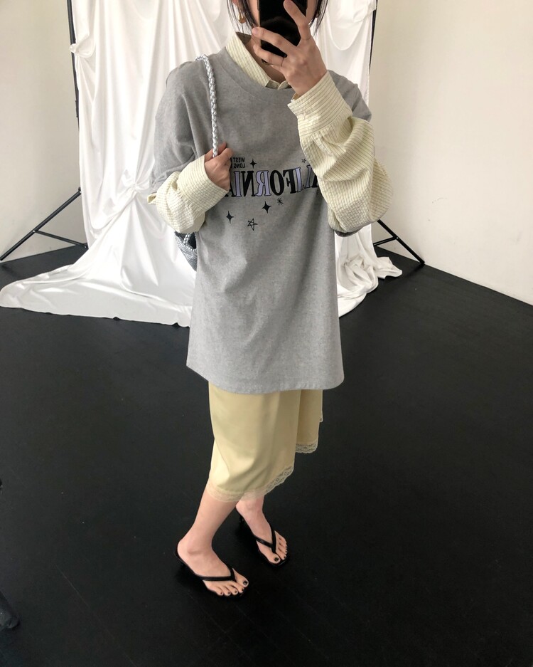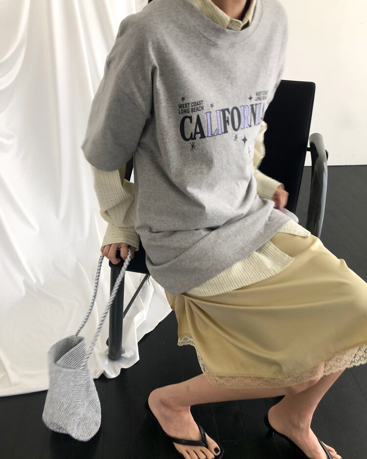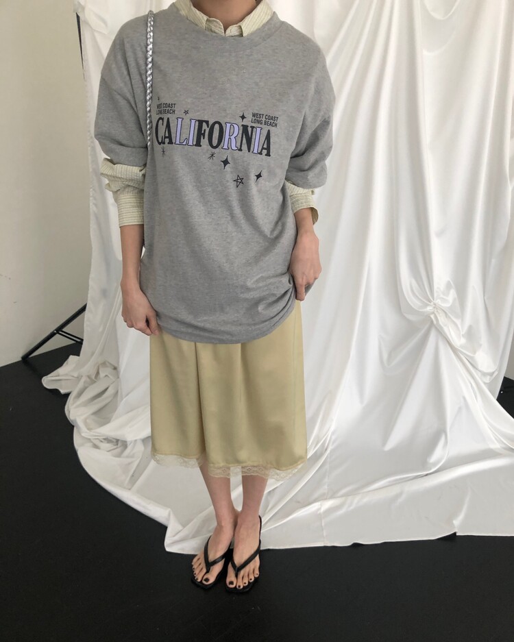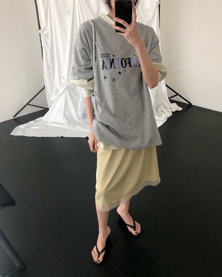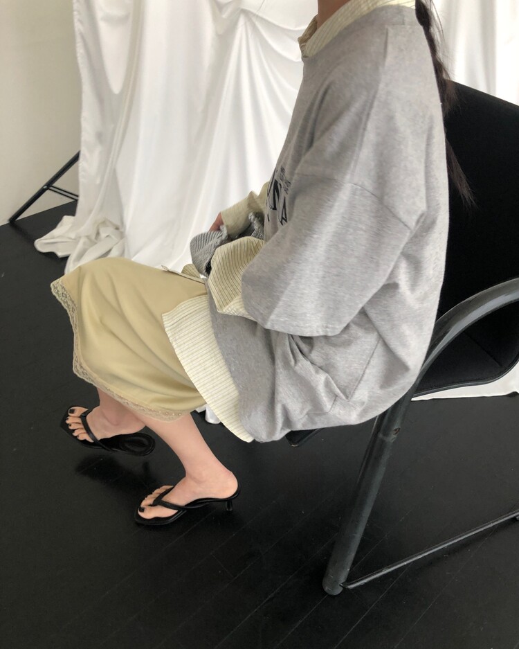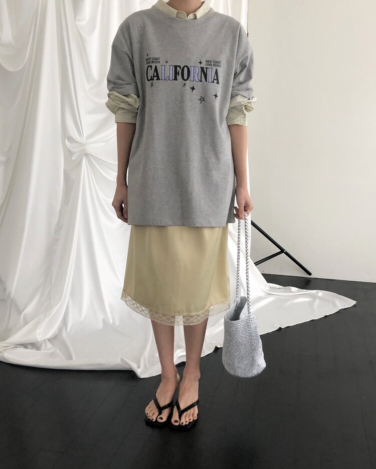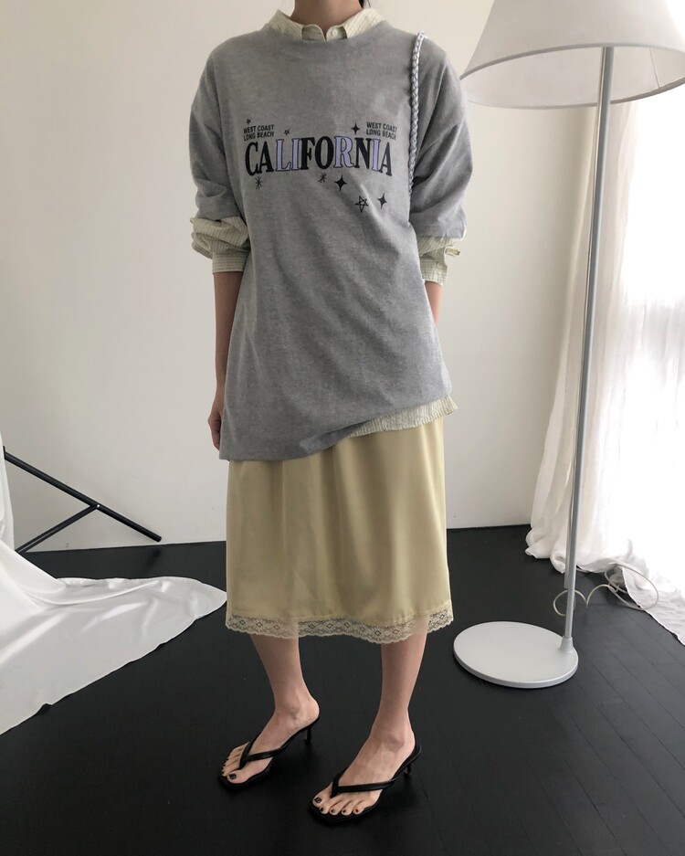 -스커트 밑단 배색 레이스 디테일로 빈티지하면서도 여성스러운 무드로 연출