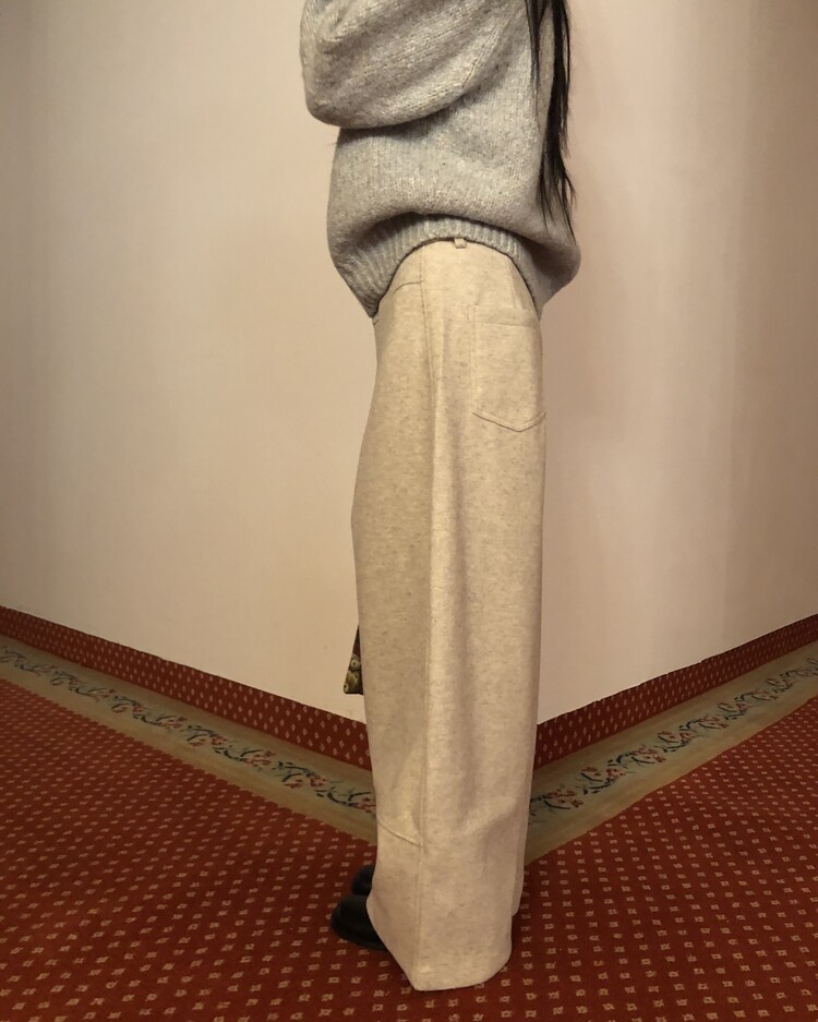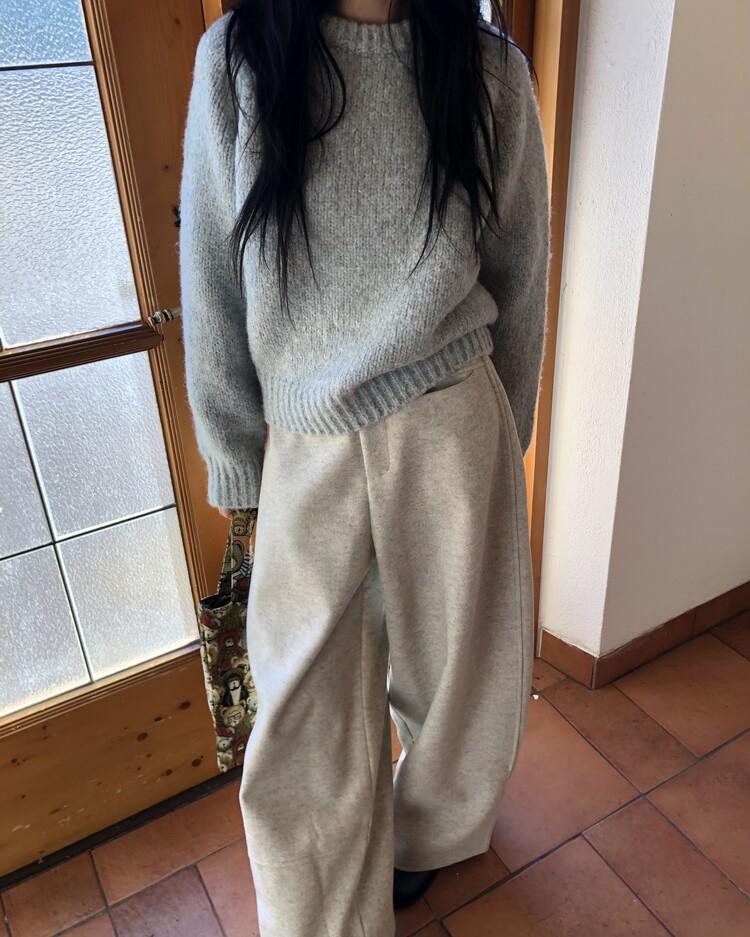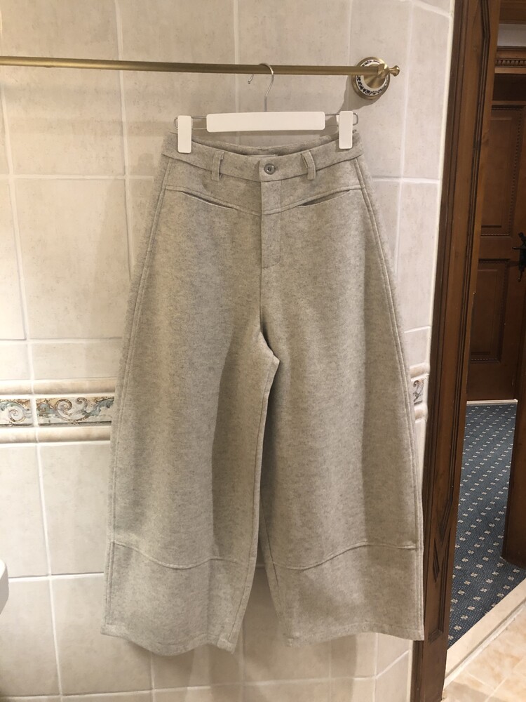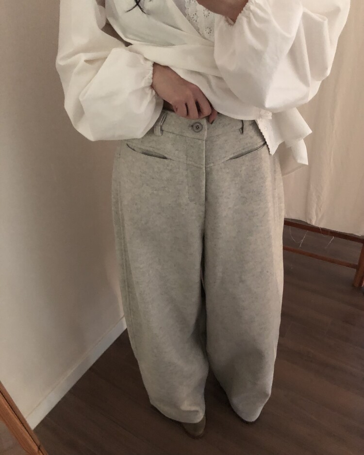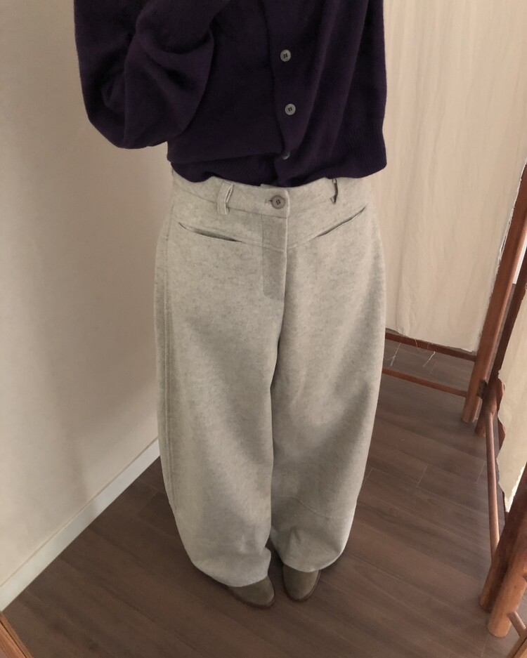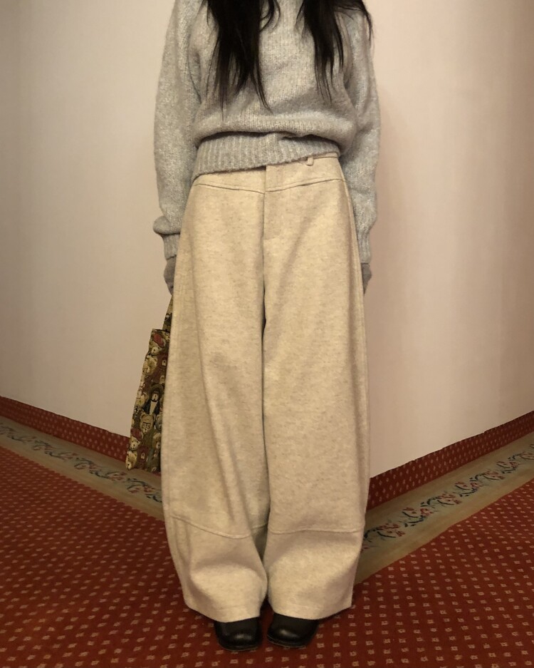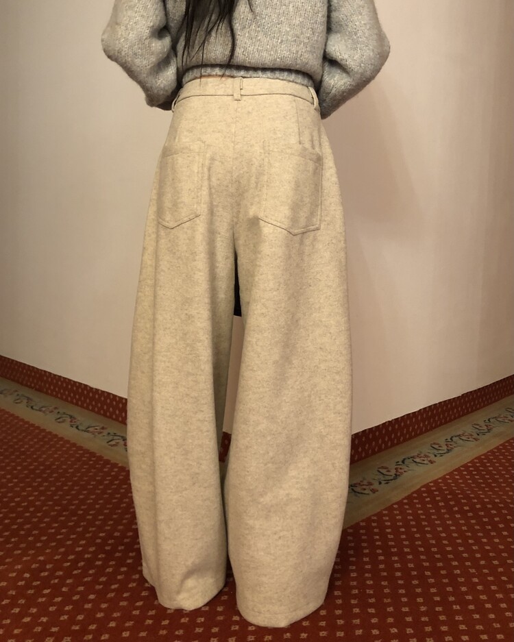 -비스코스 폴리 혼방 소재로 도톰하고 포근한 터치감의 울 팬츠