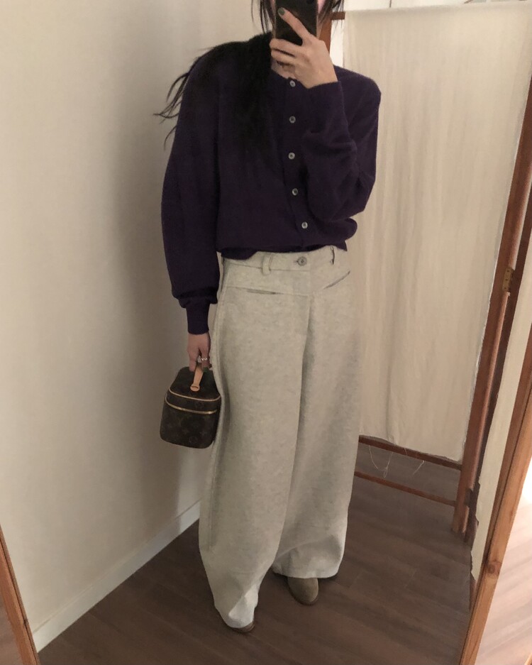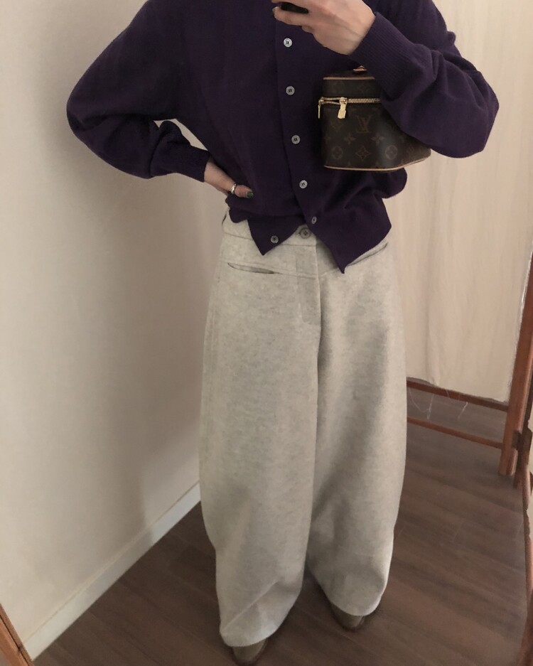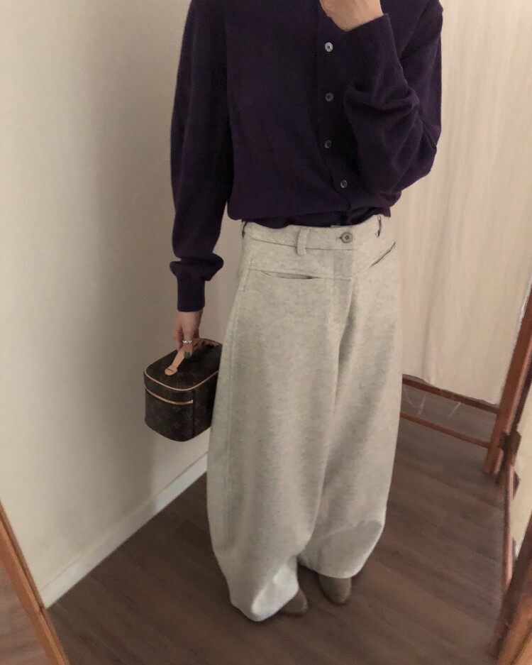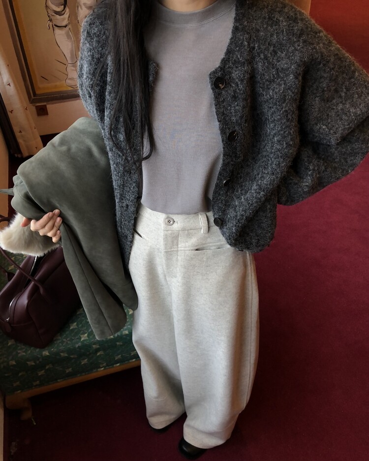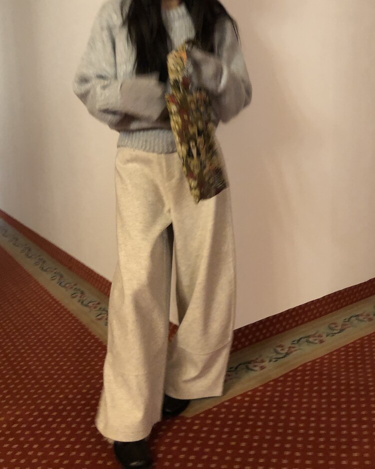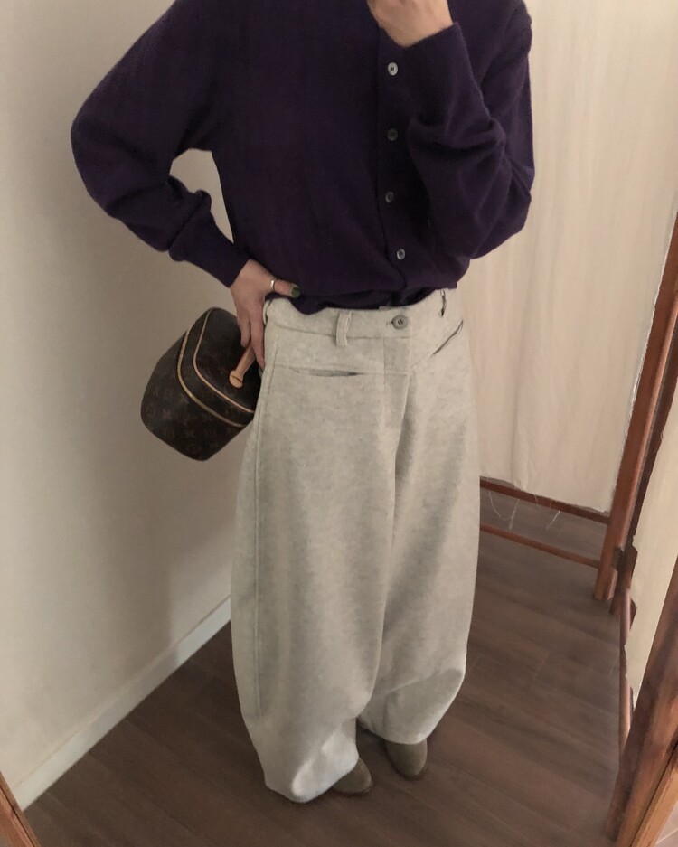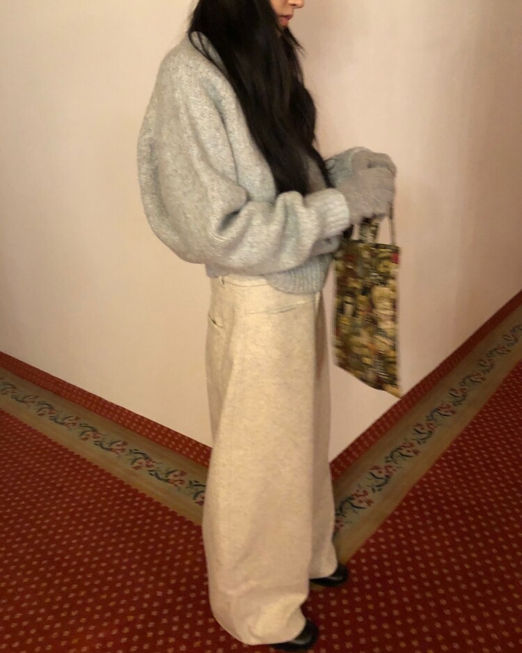 -비스코스 폴리 혼방 소재로 도톰하고 포근한 터치감의 울 팬츠