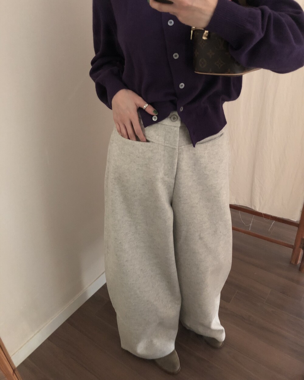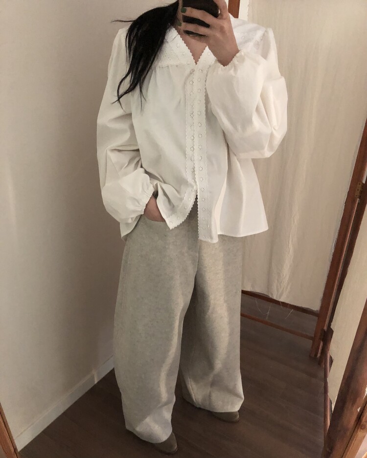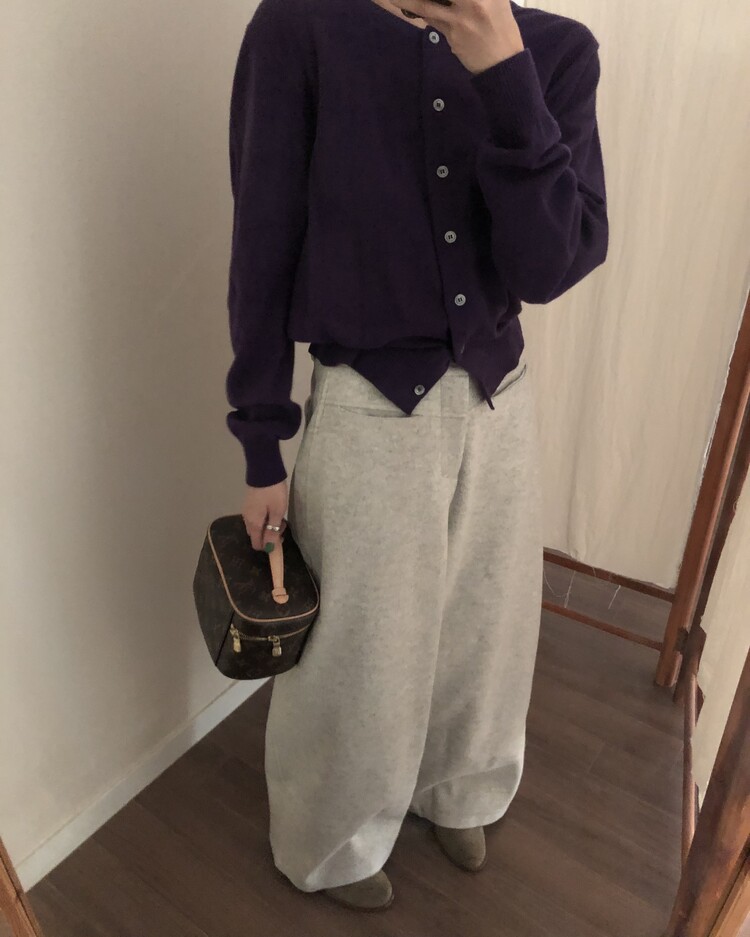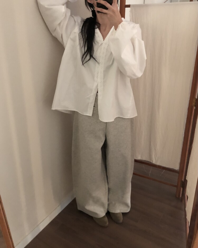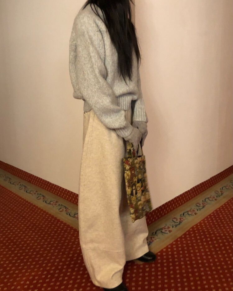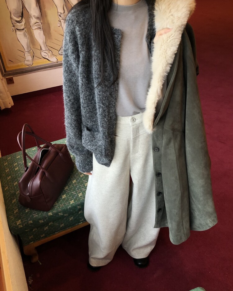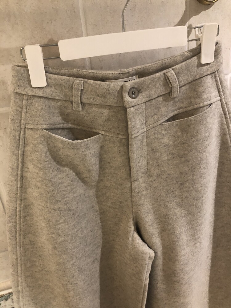 -비스코스 폴리 혼방 소재로 도톰하고 포근한 터치감의 울 팬츠