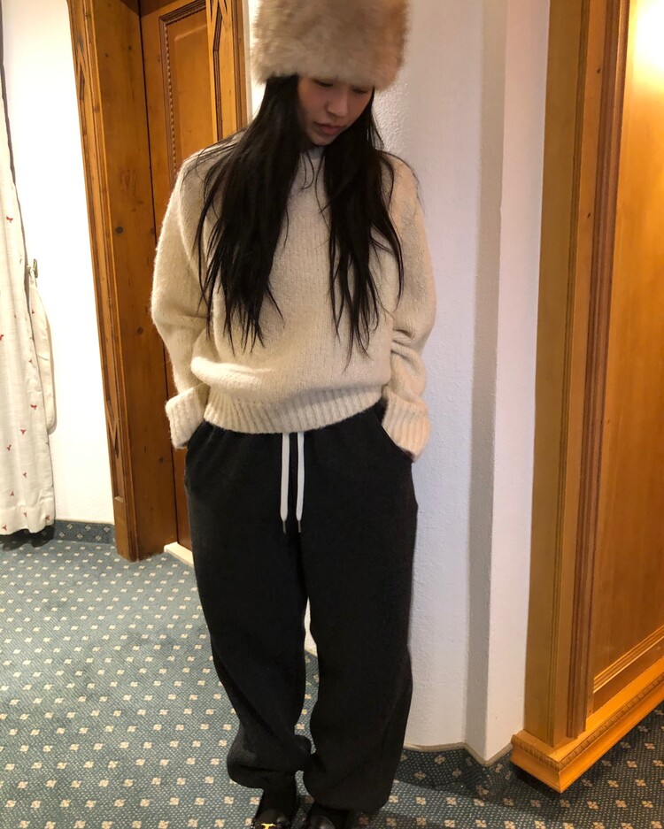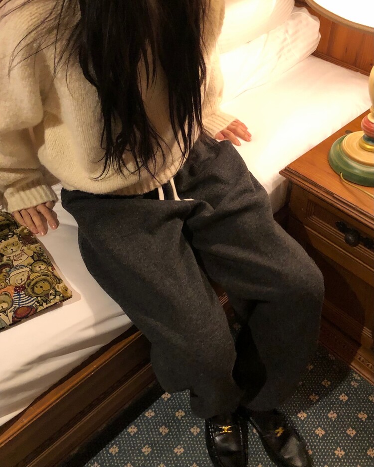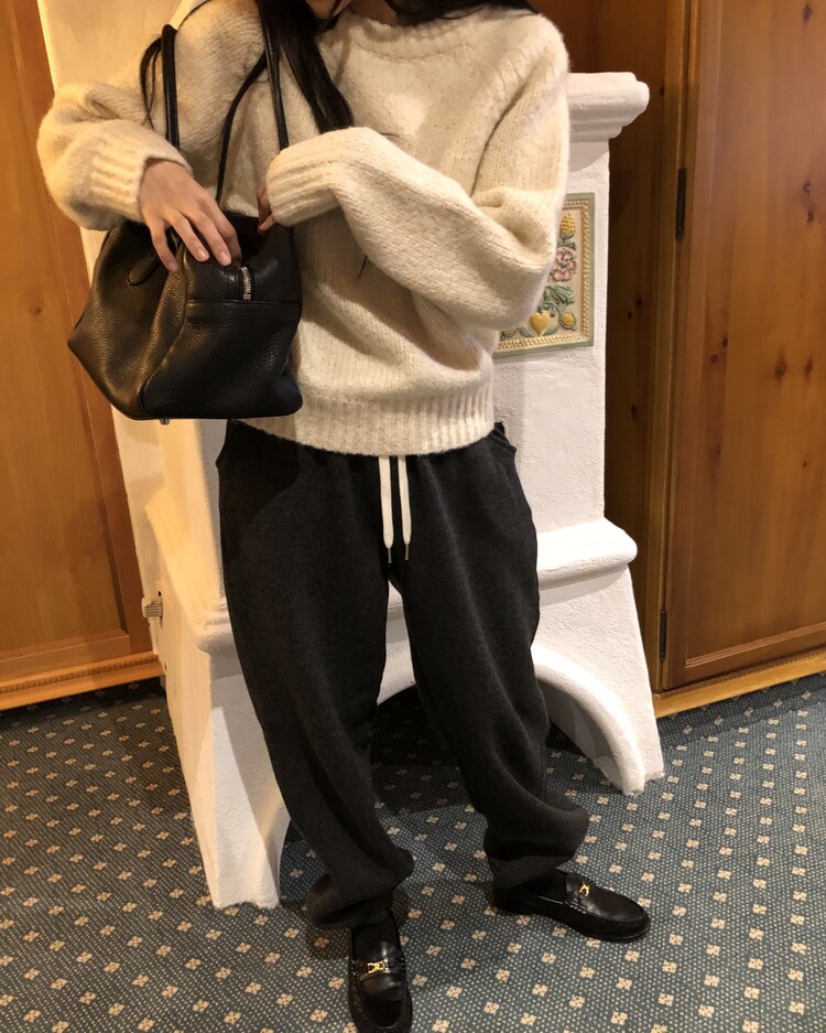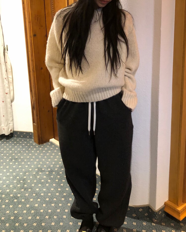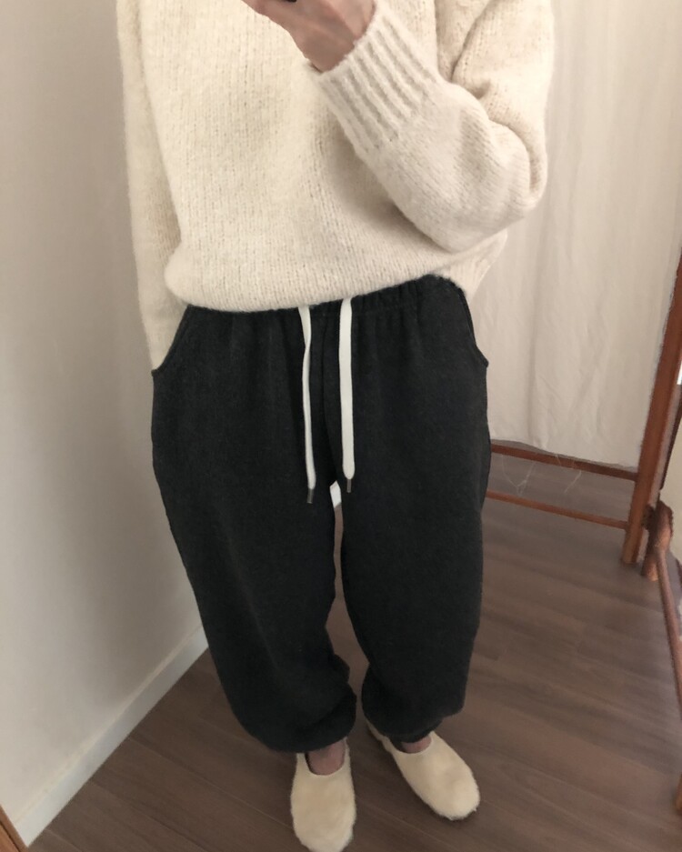-울 폴리 혼방으로 제작 된 편안한 무드의 니트 조거 팬츠