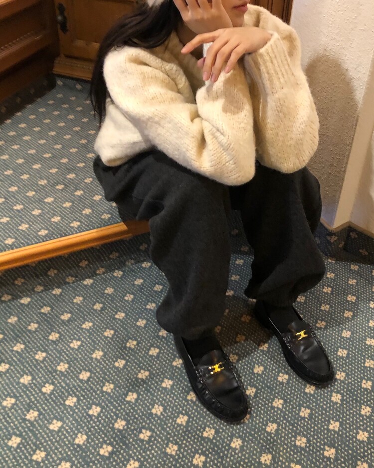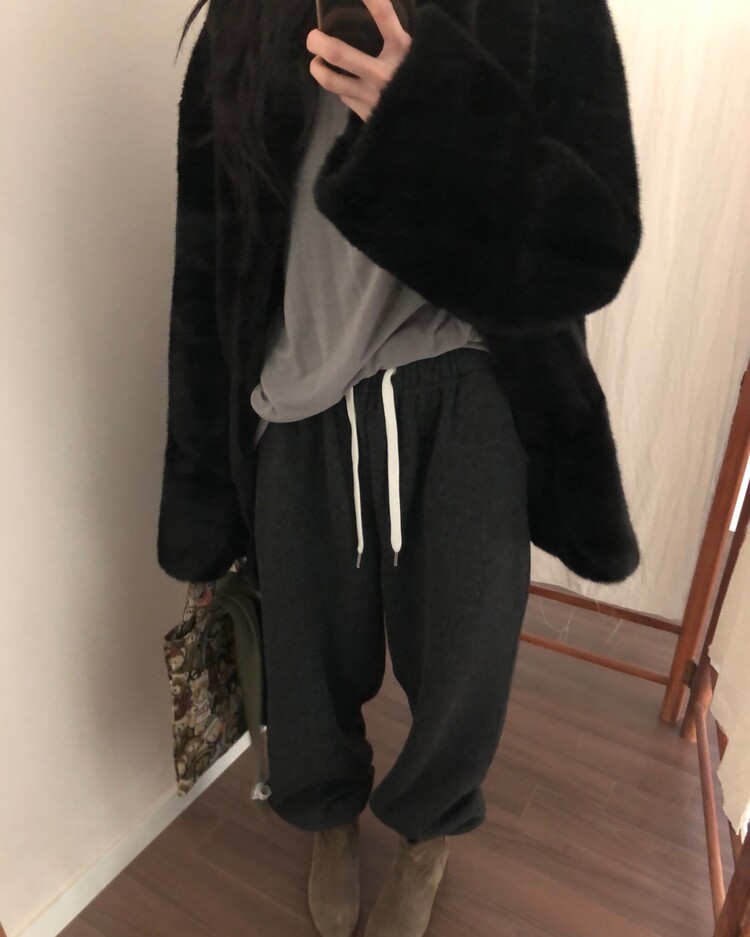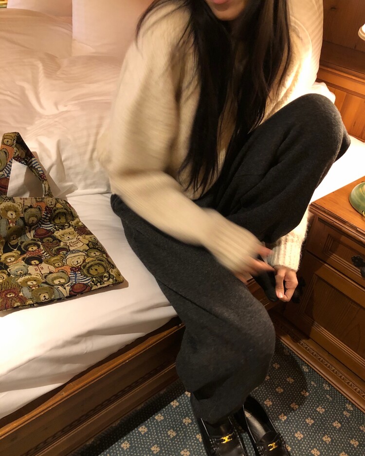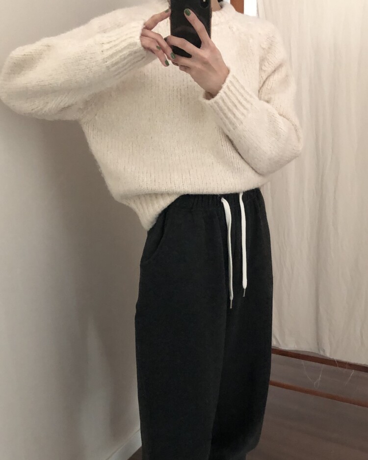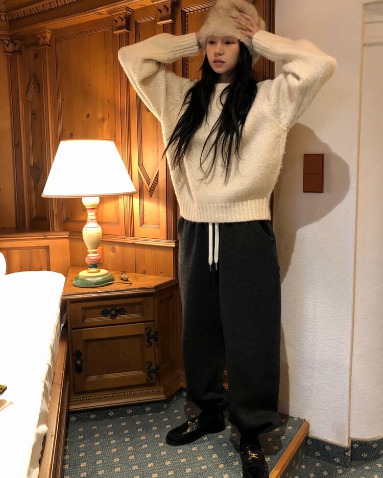 -울 폴리 혼방으로 제작 된 편안한 무드의 니트 조거 팬츠