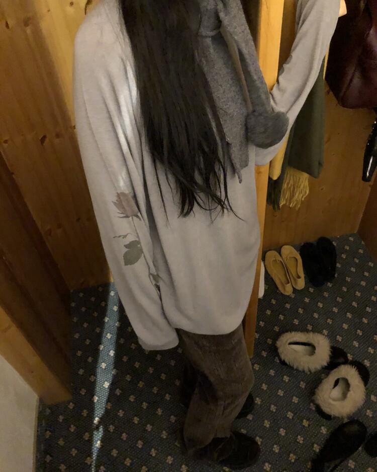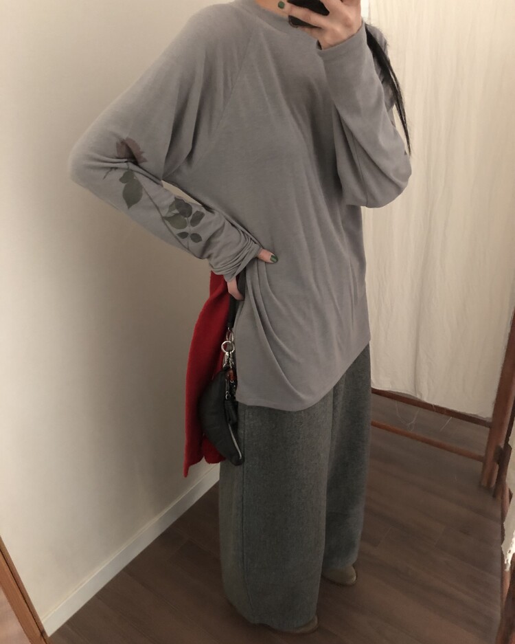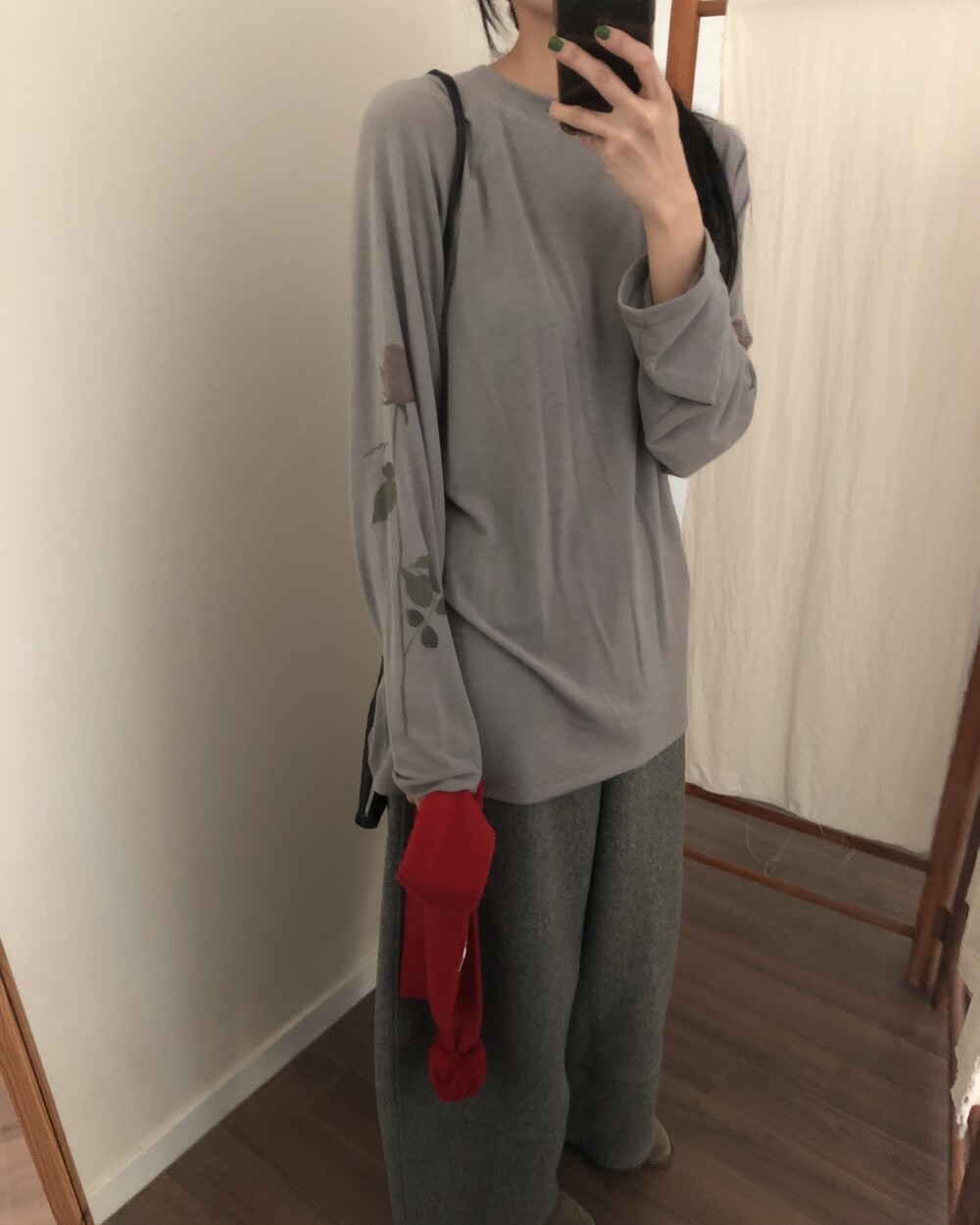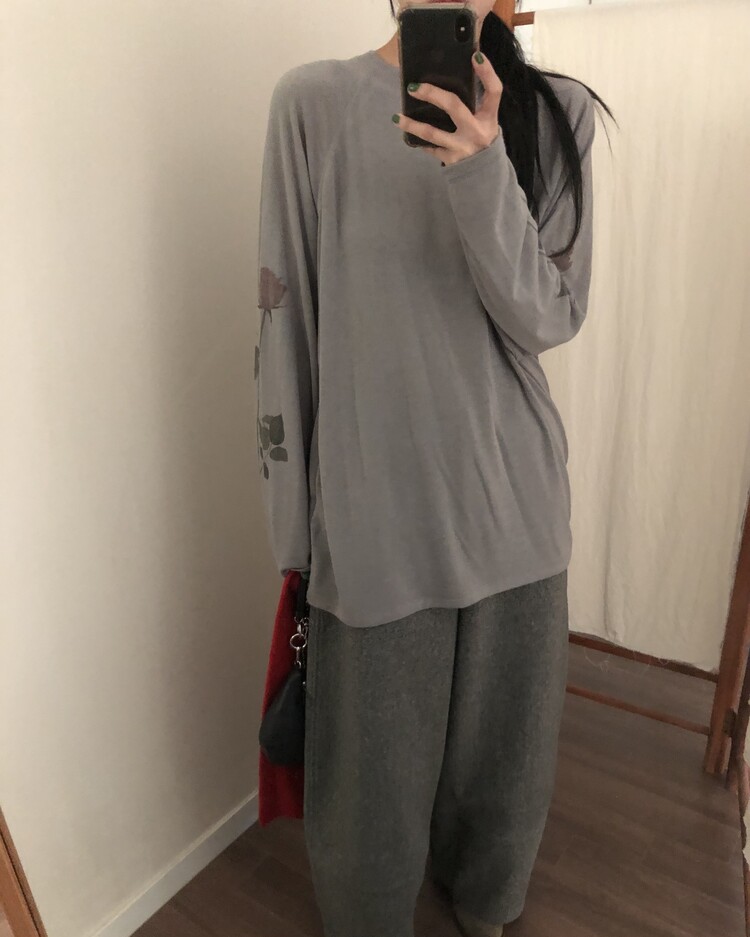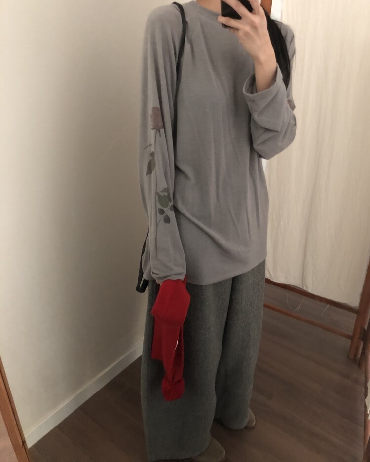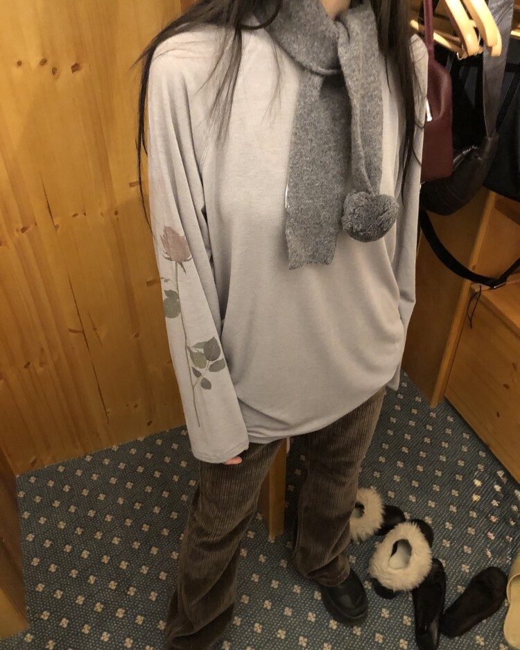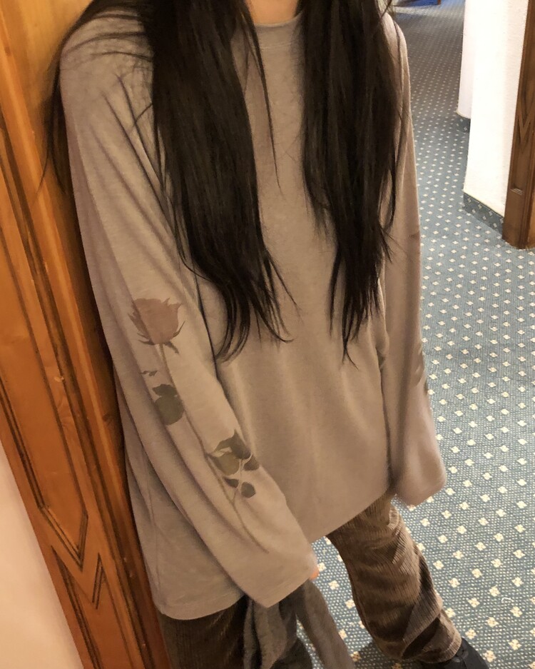 -긴 소매 기장과 로즈 프린팅 디테일이 빈티지하면서 독특한 무드로 연출
