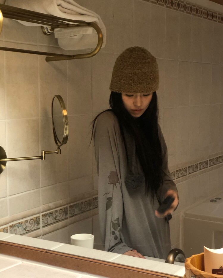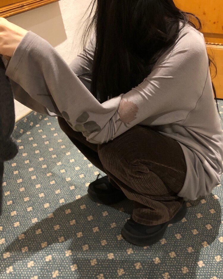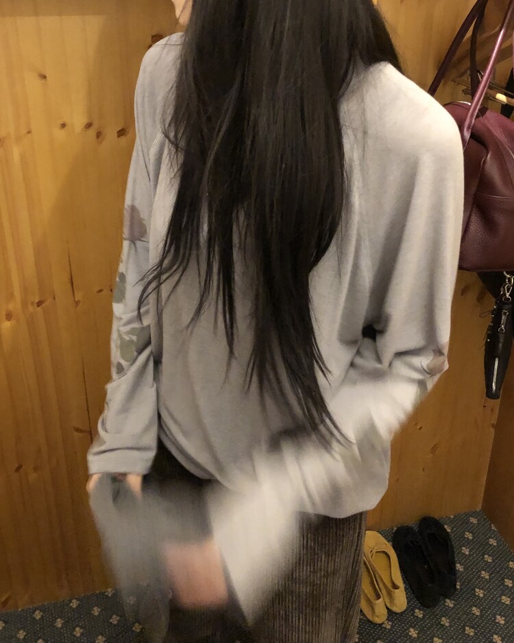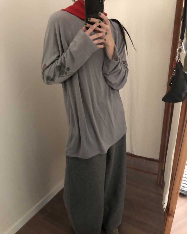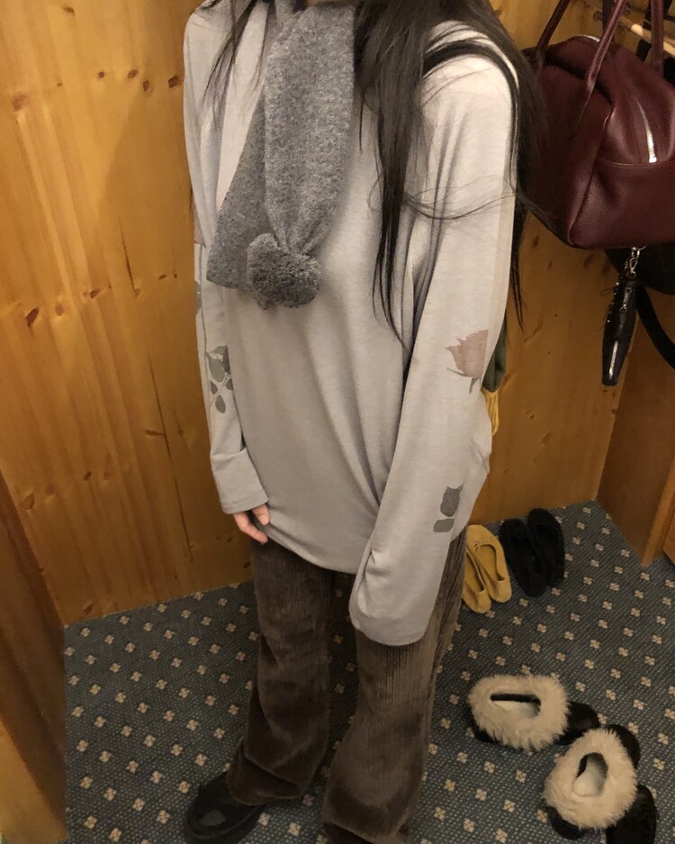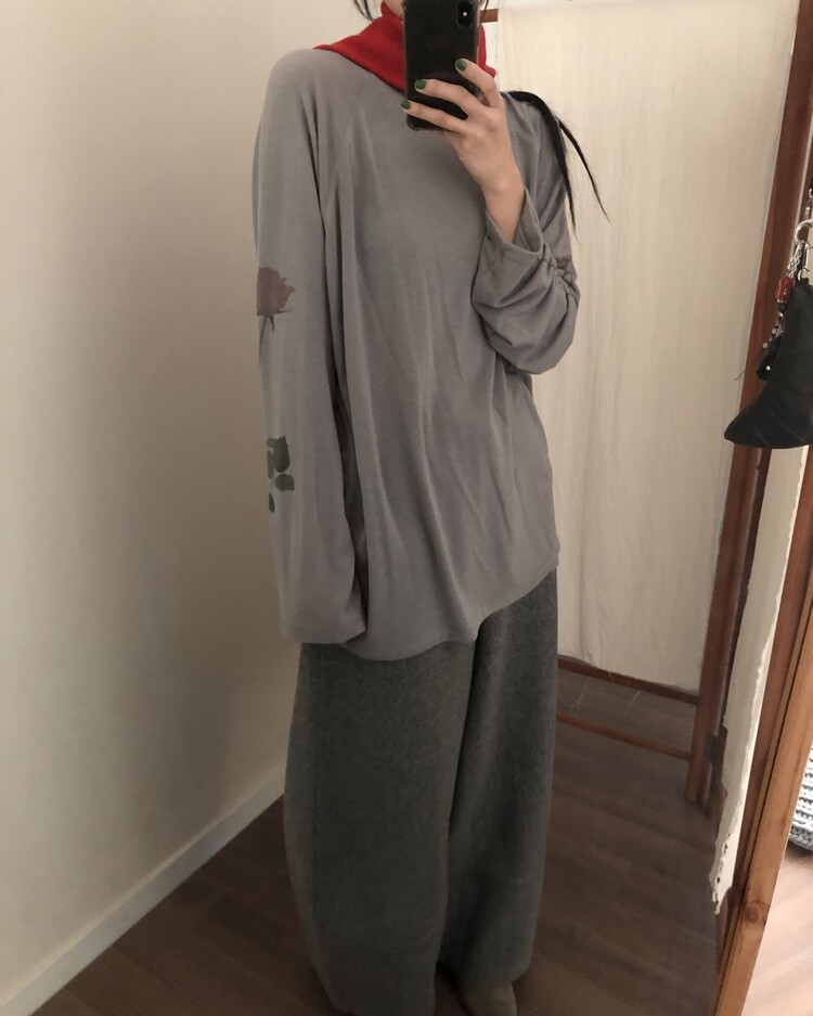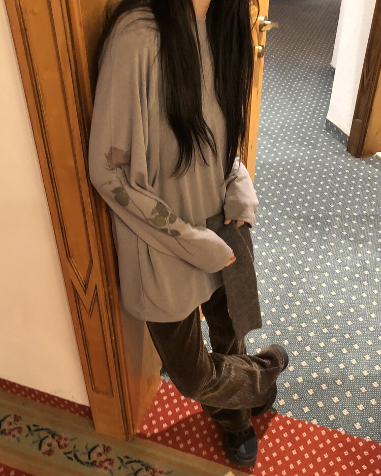 -긴 소매 기장과 로즈 프린팅 디테일이 빈티지하면서 독특한 무드로 연출