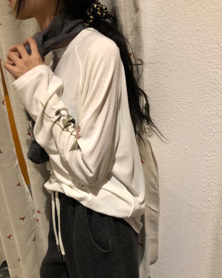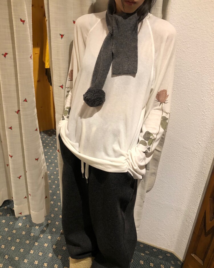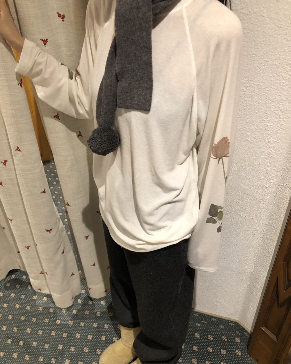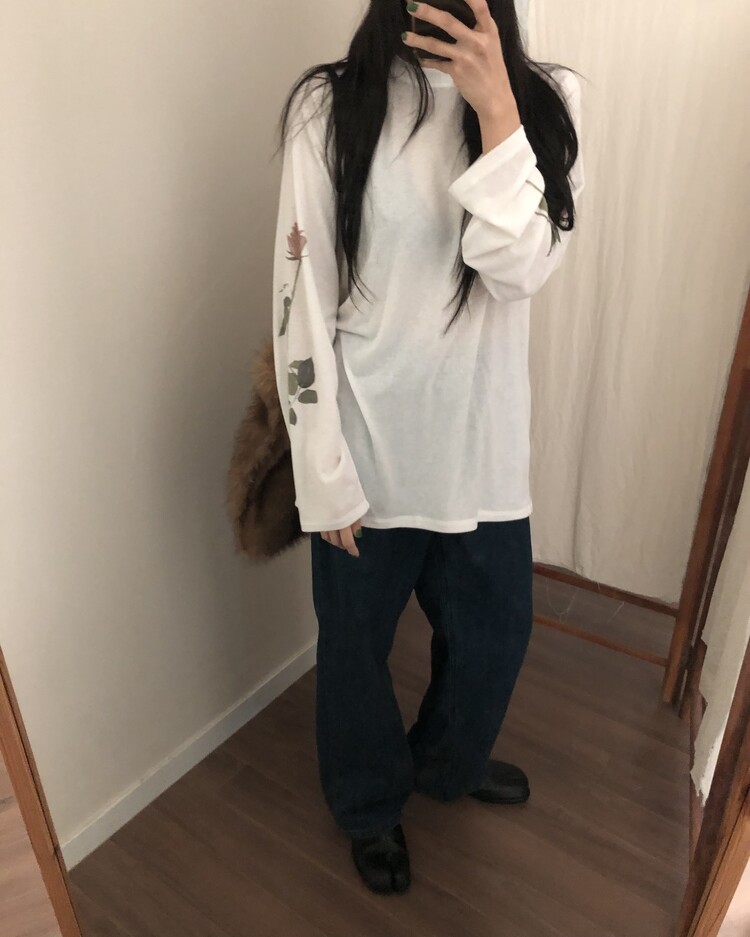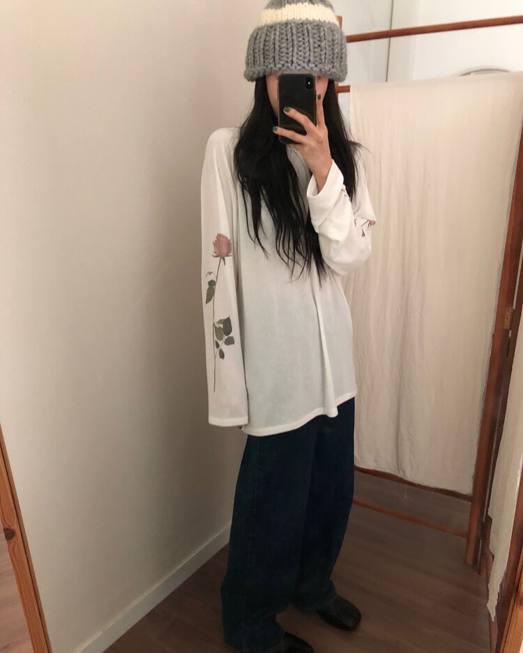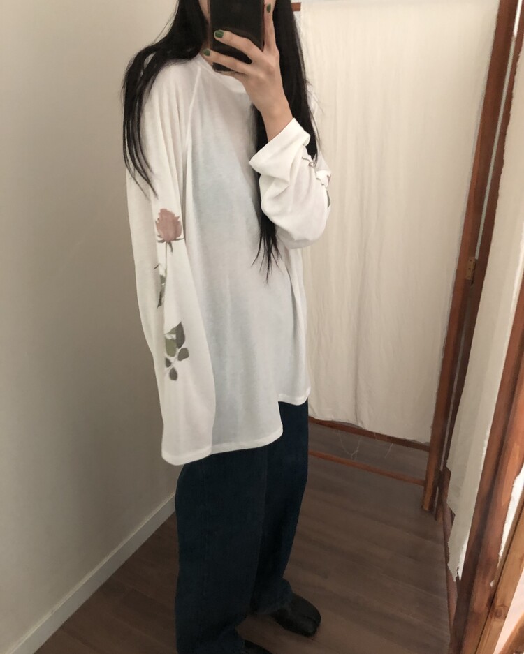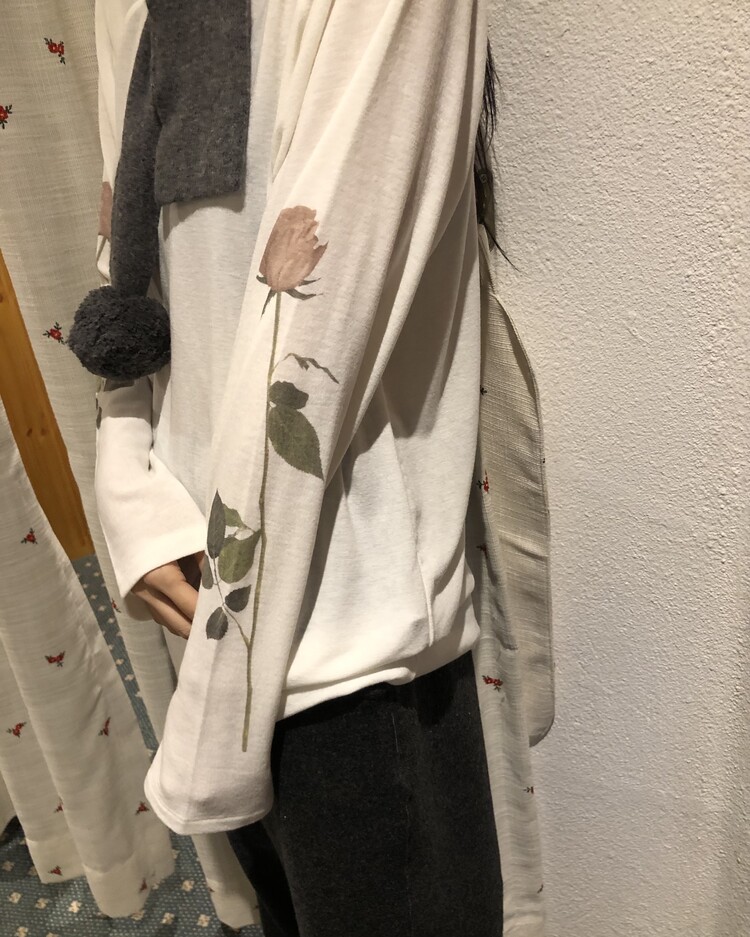 -긴 소매 기장과 로즈 프린팅 디테일이 빈티지하면서 독특한 무드로 연출