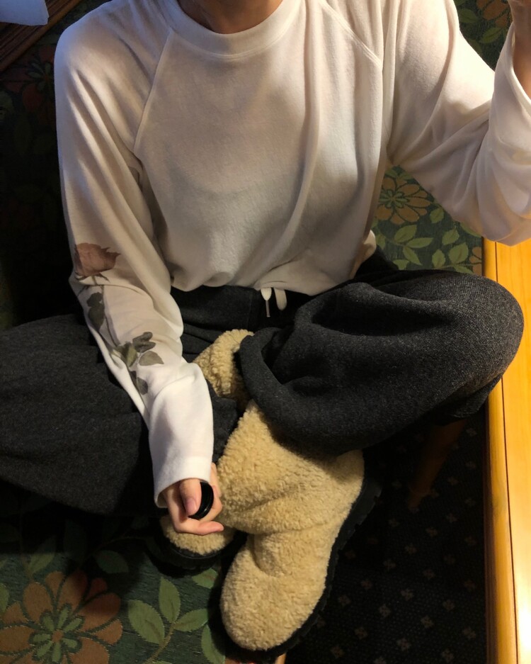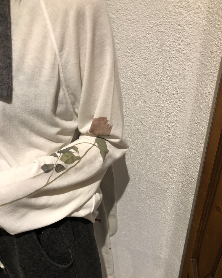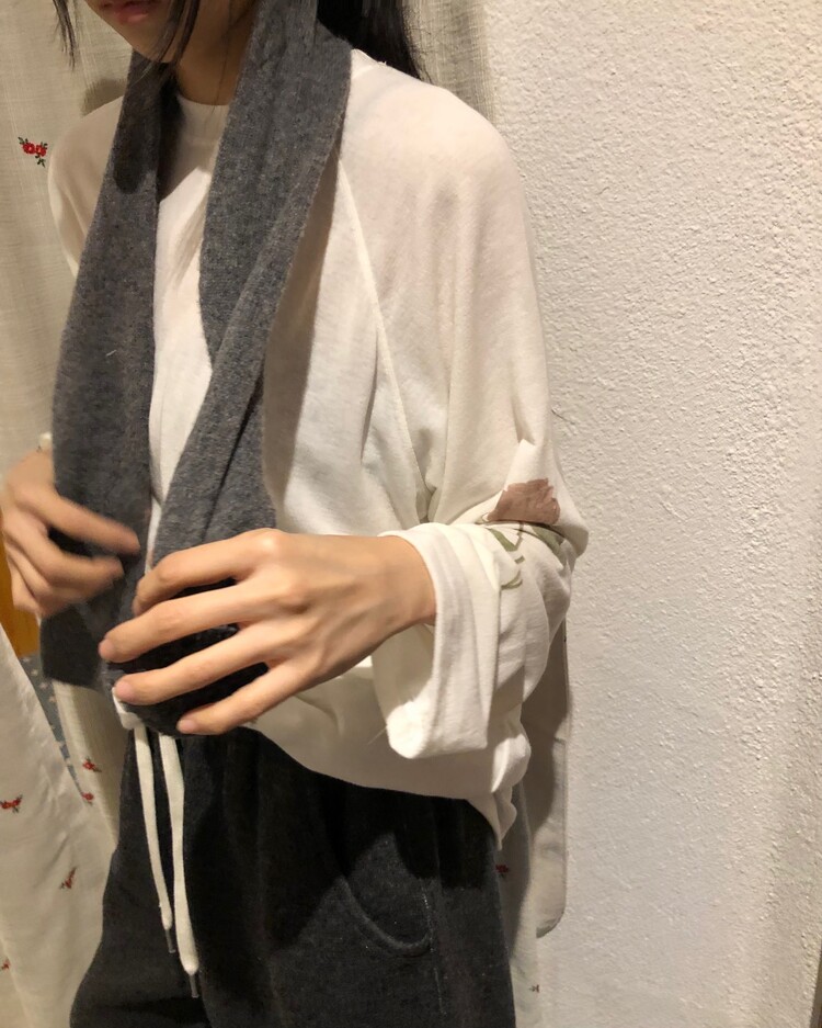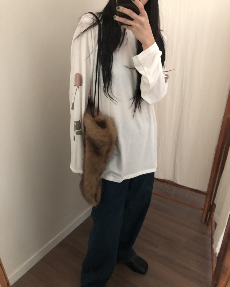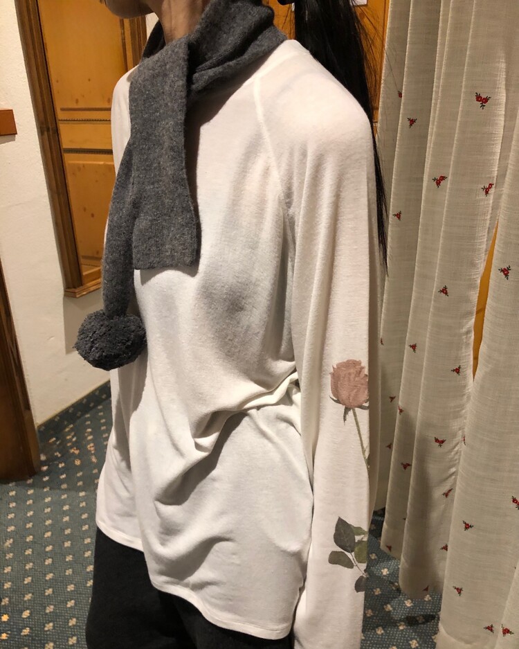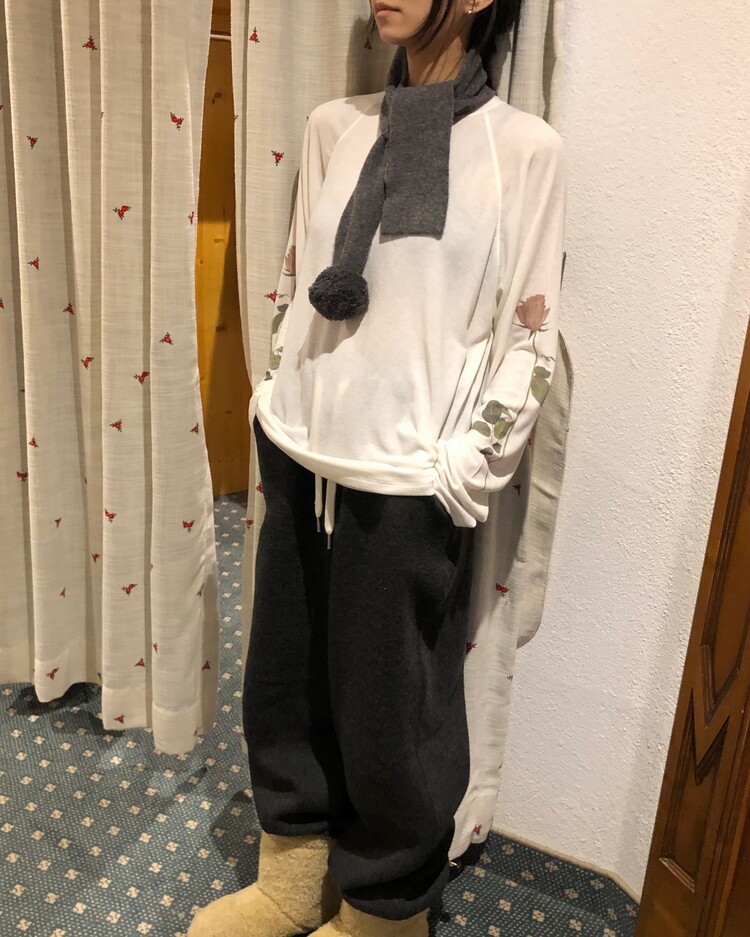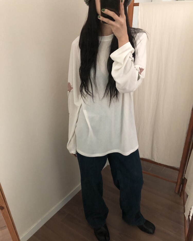 -긴 소매 기장과 로즈 프린팅 디테일이 빈티지하면서 독특한 무드로 연출
