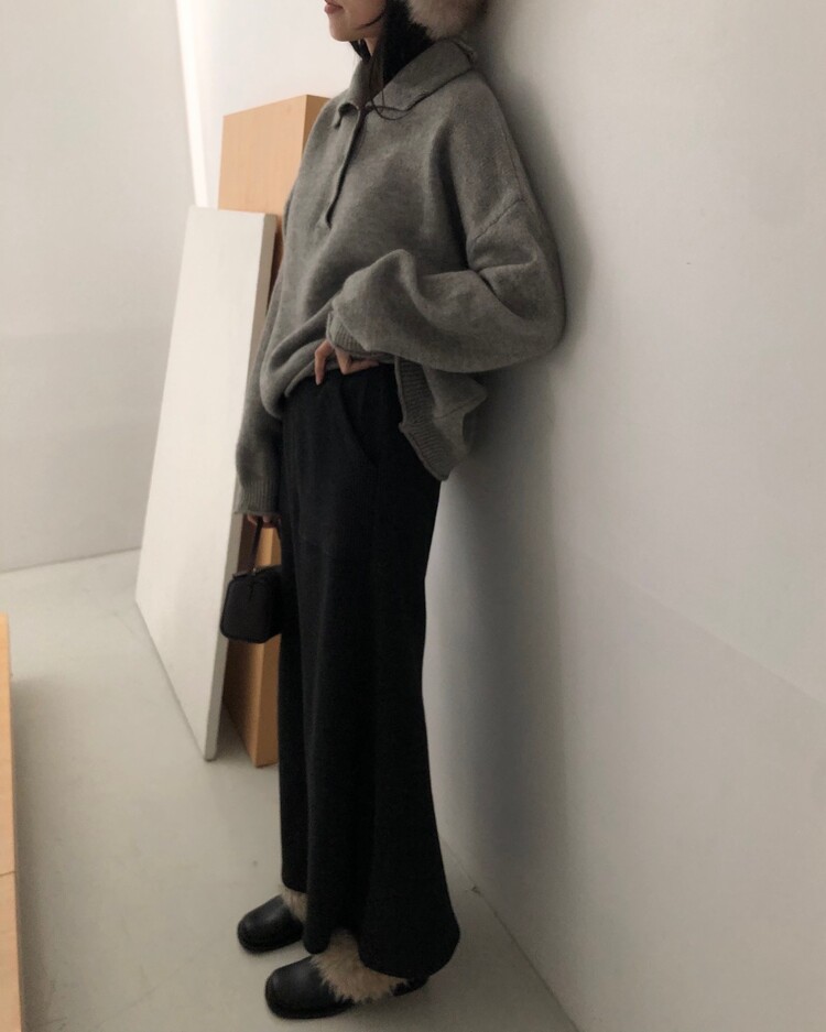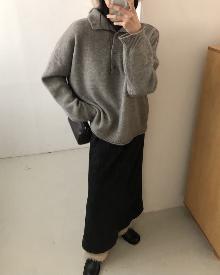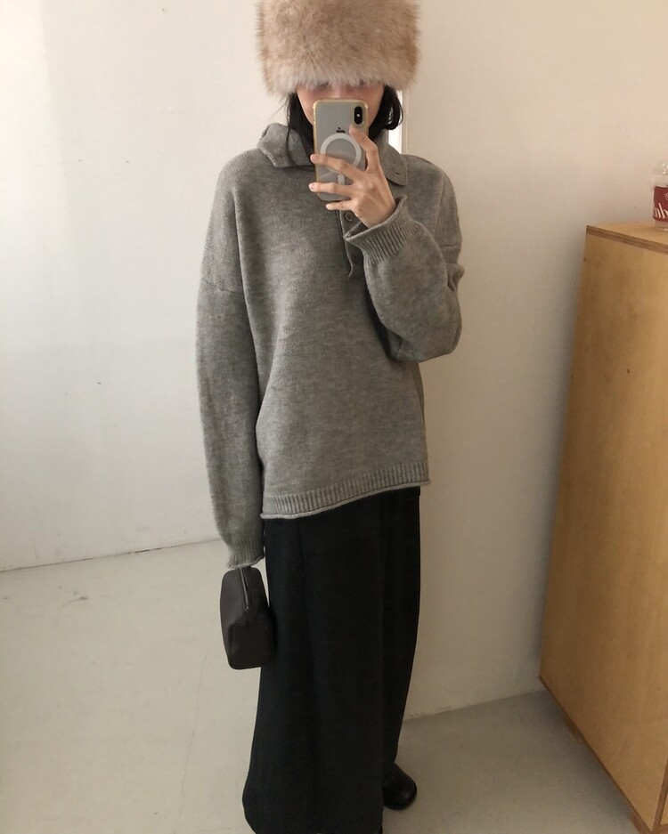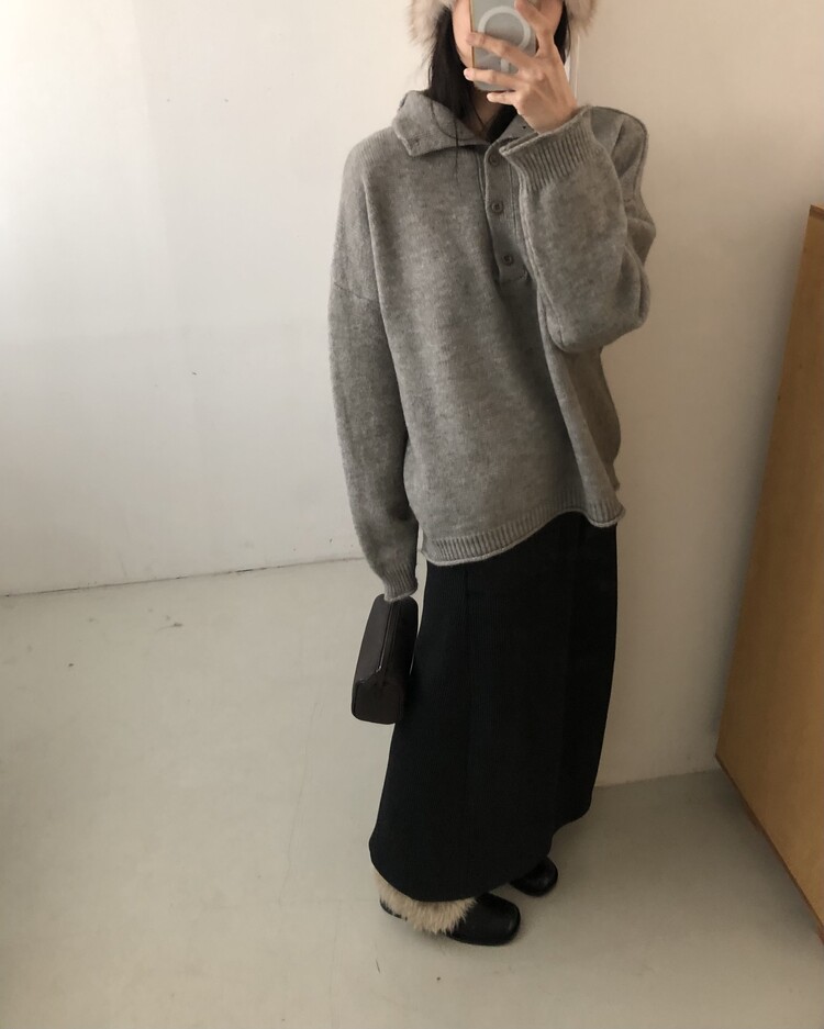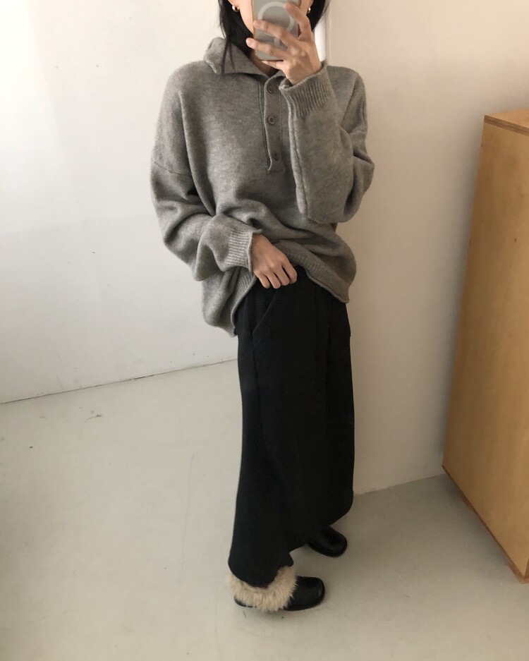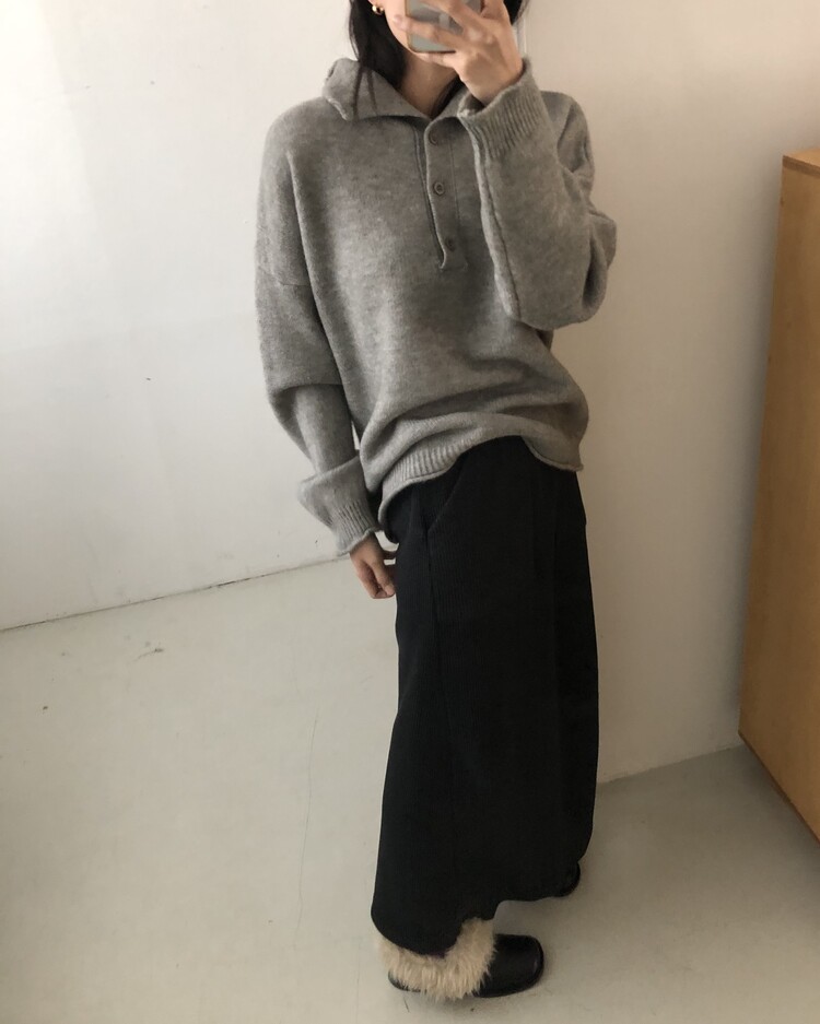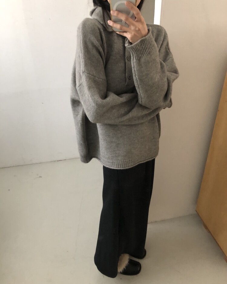 ・ Top : Mood Button Knit_Gray