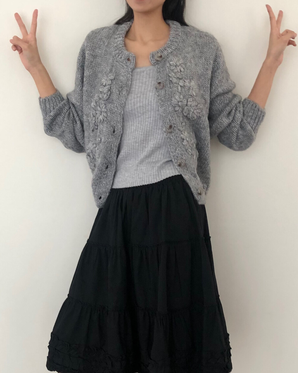 -울 알파카 혼방 소재로 보송보송한 헤어리함이 포근한 착용감으로 느껴지는 가디건