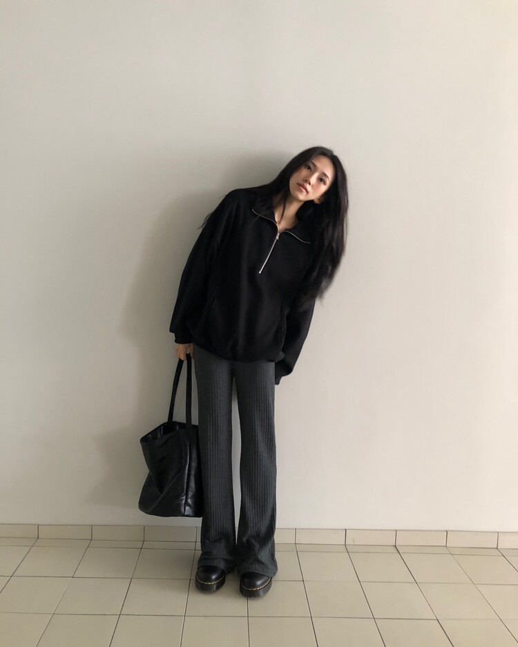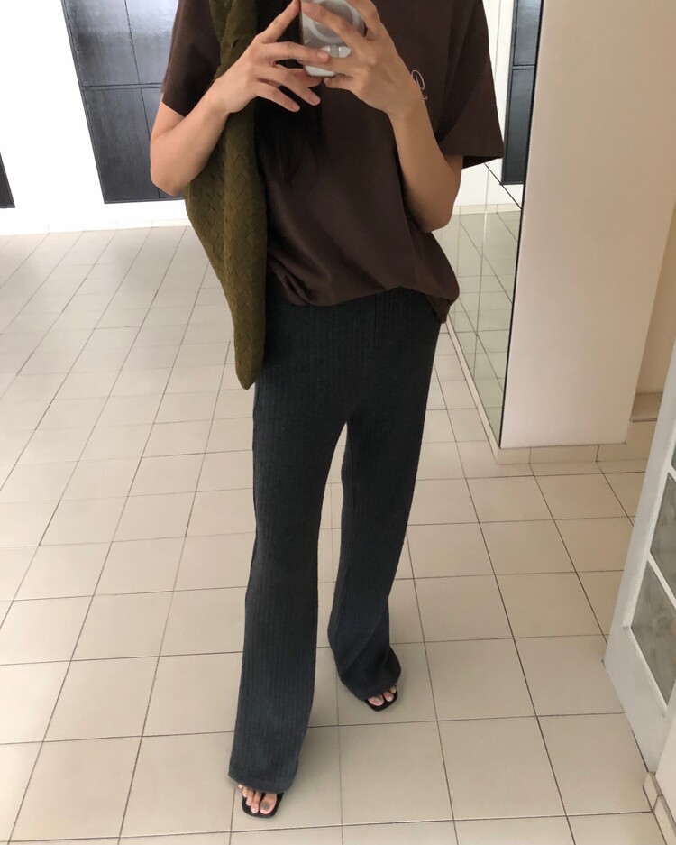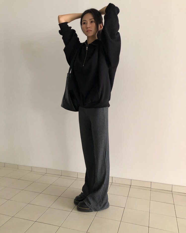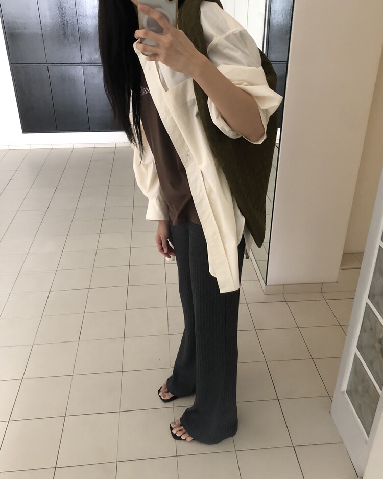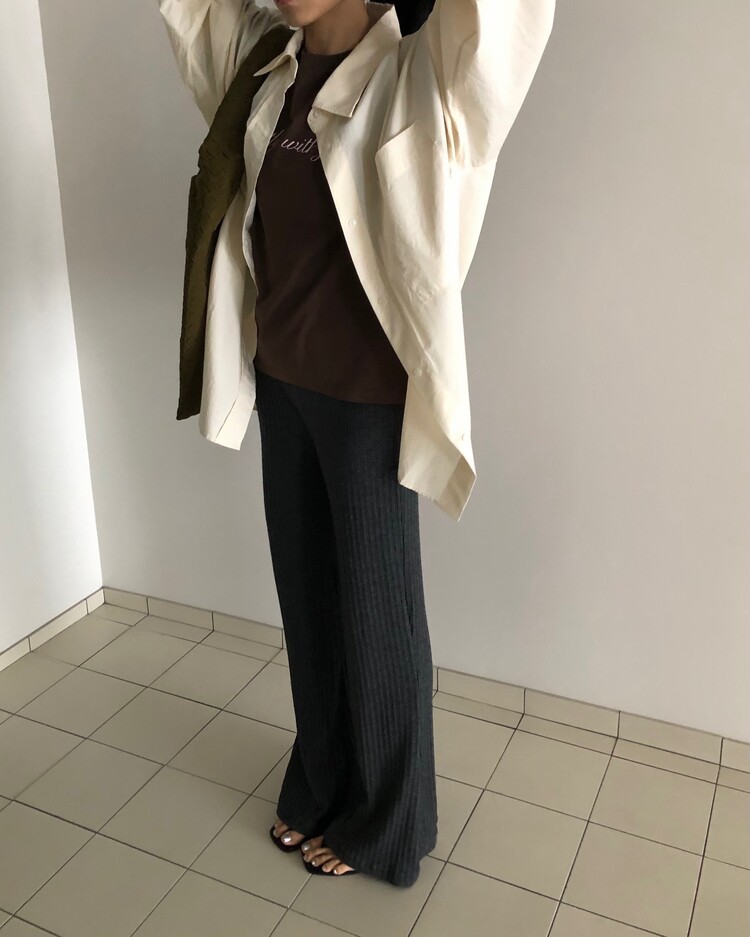 -์ธ๋ก ์คํธ๋ผ์ดํ ํจํด์ผ๋ก ๋ ๊ทธ ๋ผ์ธ์ด ๊ธธ๊ณ ๊ฐ๋์ด ๋ณด์ด๋ ์ค๋ฃจ์ฃ์ผ๋ก ์ฐ์ถย