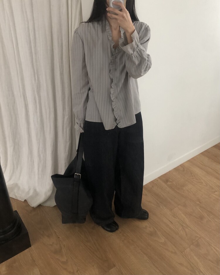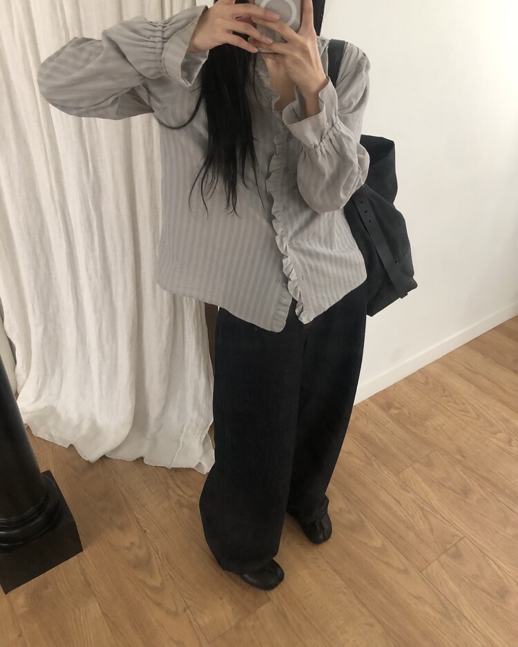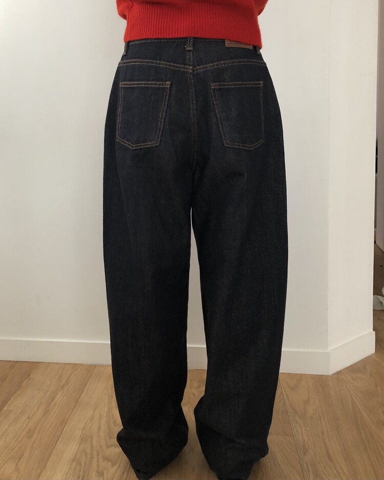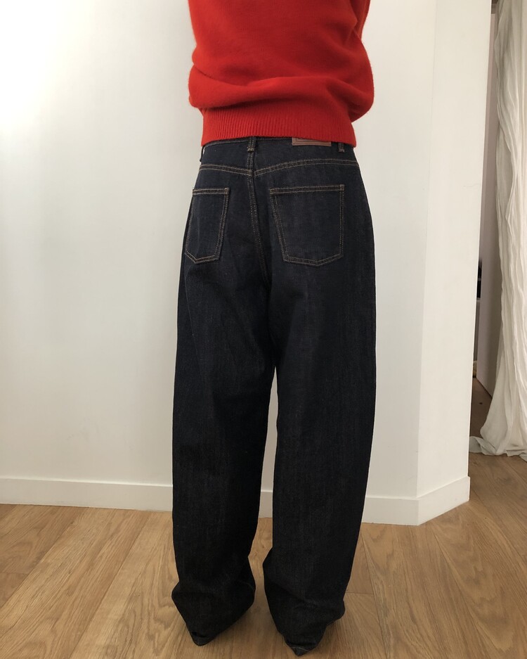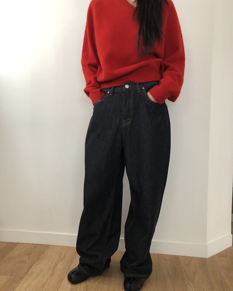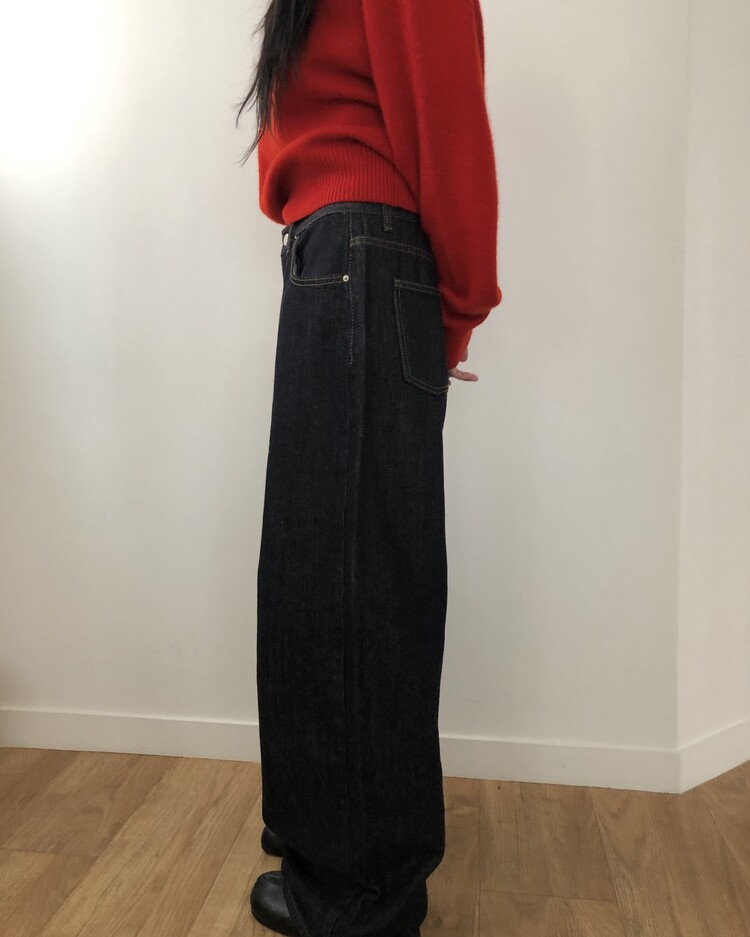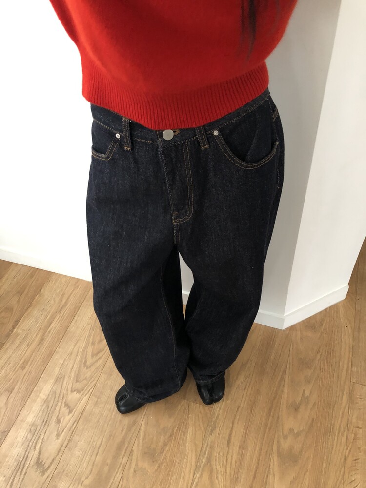 -스타일리시한 와이드한 핏, 적당한 길이감으로 다양한 스타일 연출 가능한 데님 팬츠