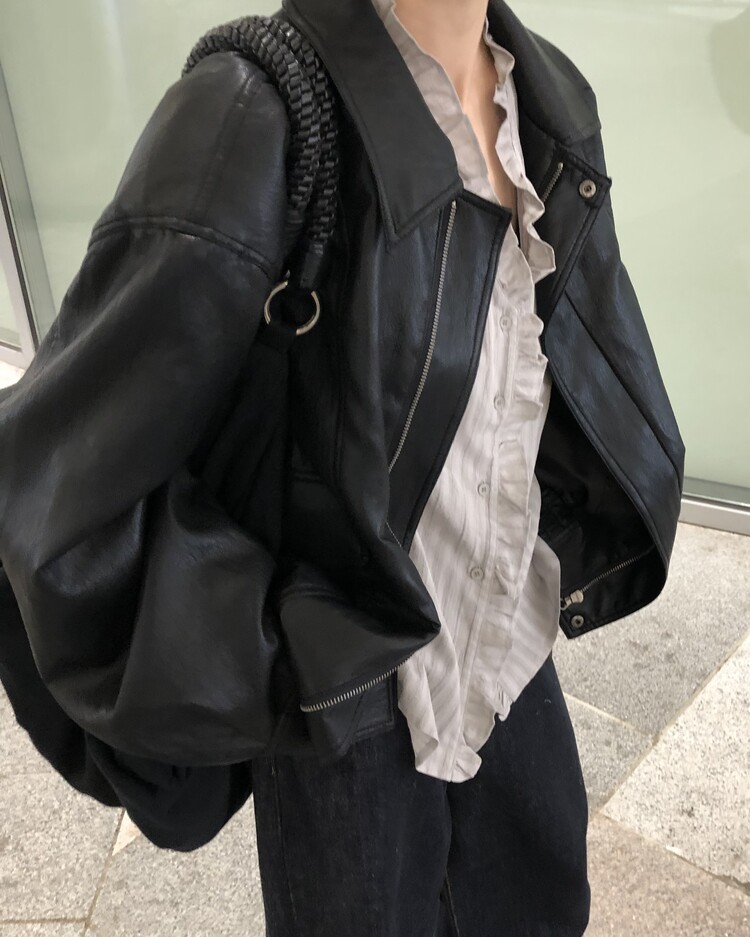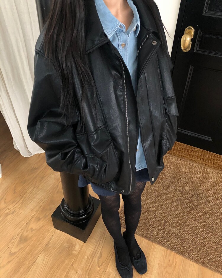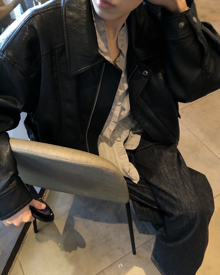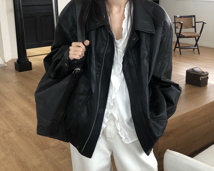 -페이크 레더로 제작되어 관리에 용이한 점퍼