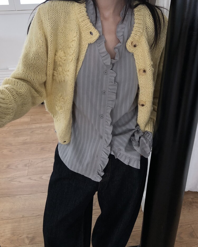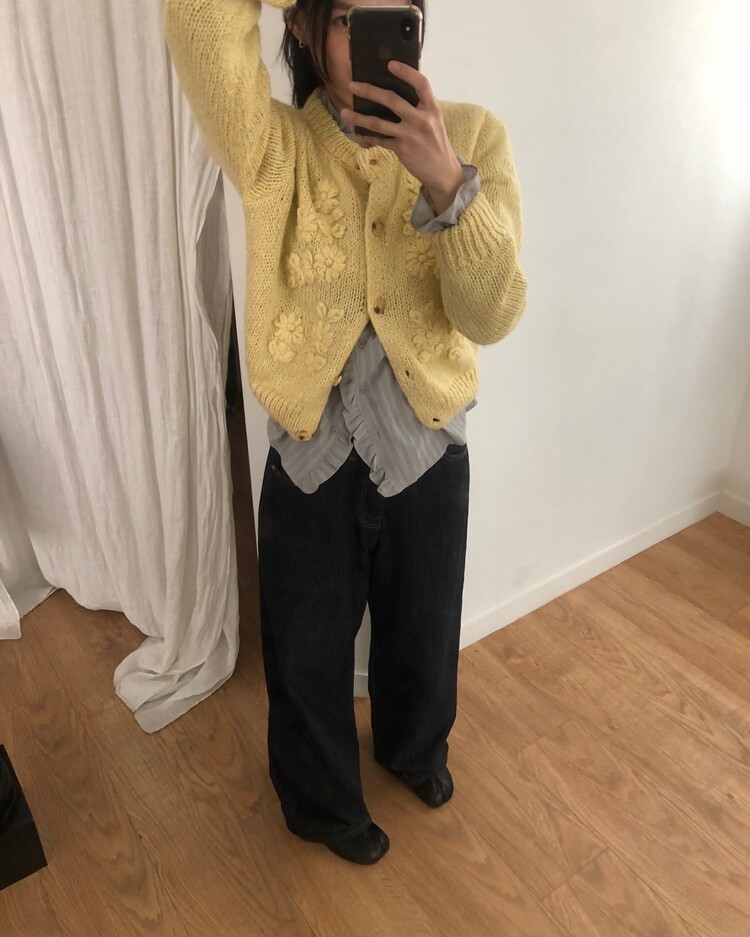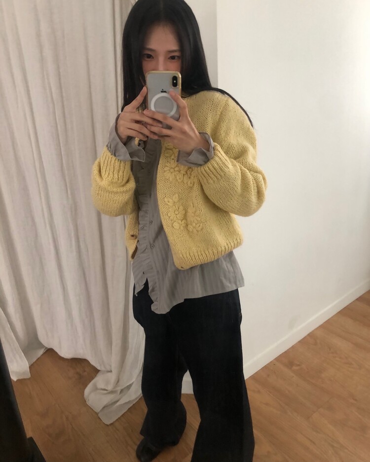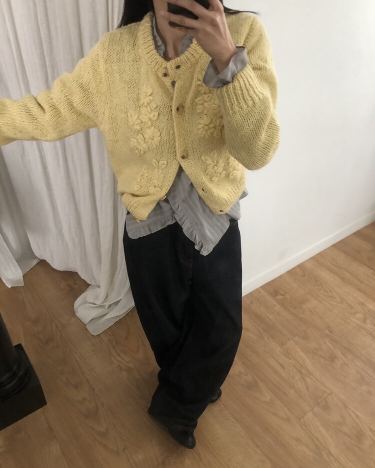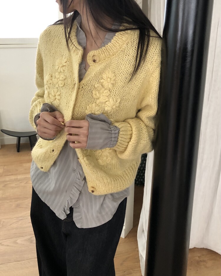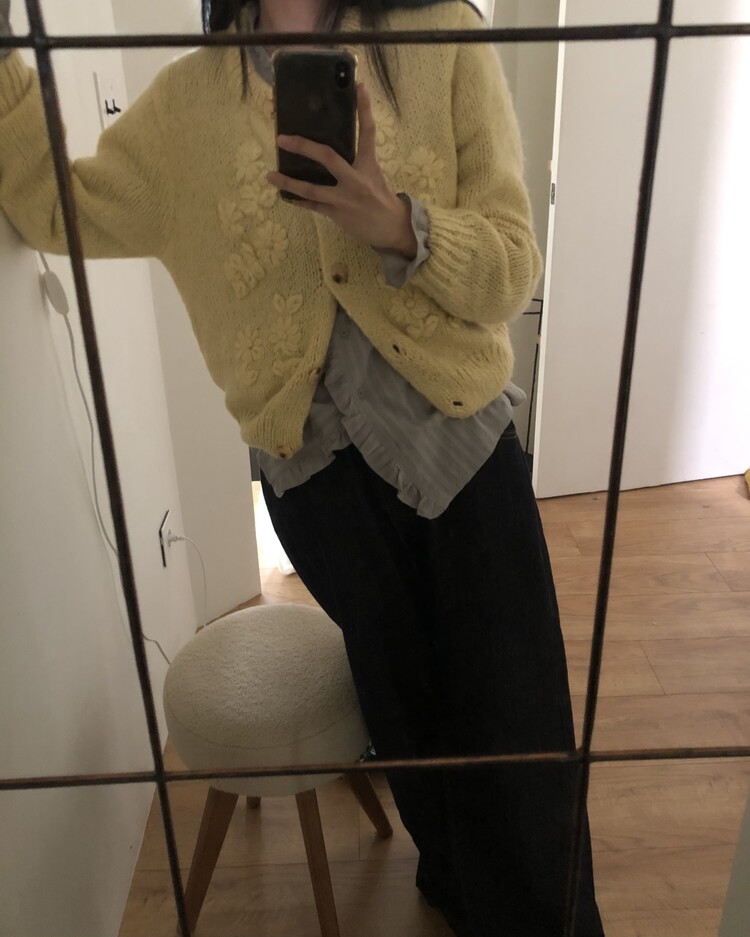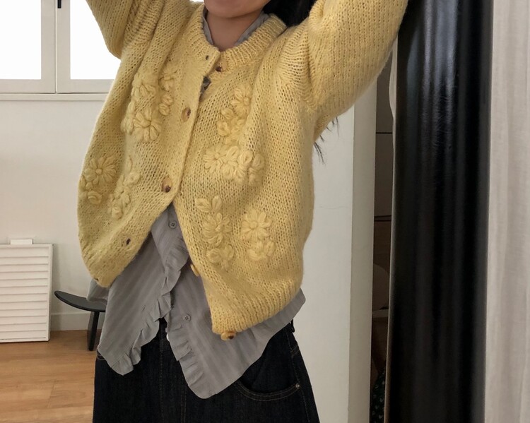 -울 알파카 혼방 소재로 보송보송한 헤어리함이 포근한 착용감으로 느껴지는 가디건