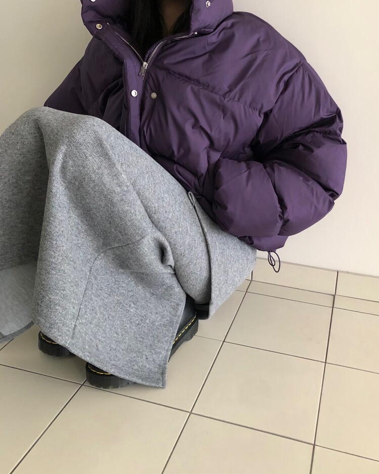 -미니멀한 디자인으로 활용도 높은 하이넥 덕다운 패딩