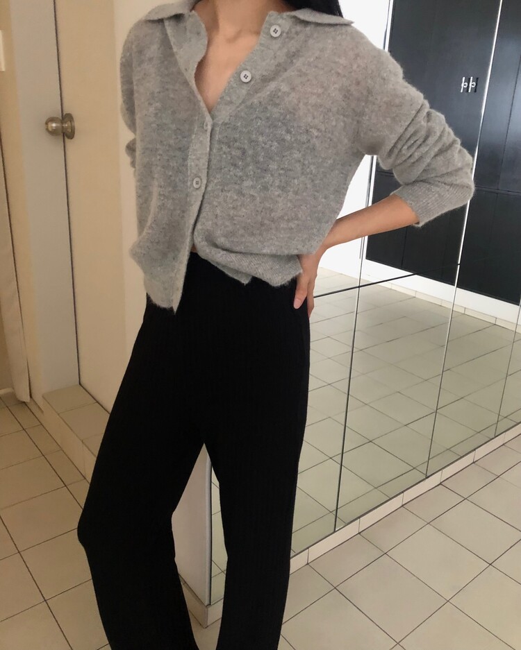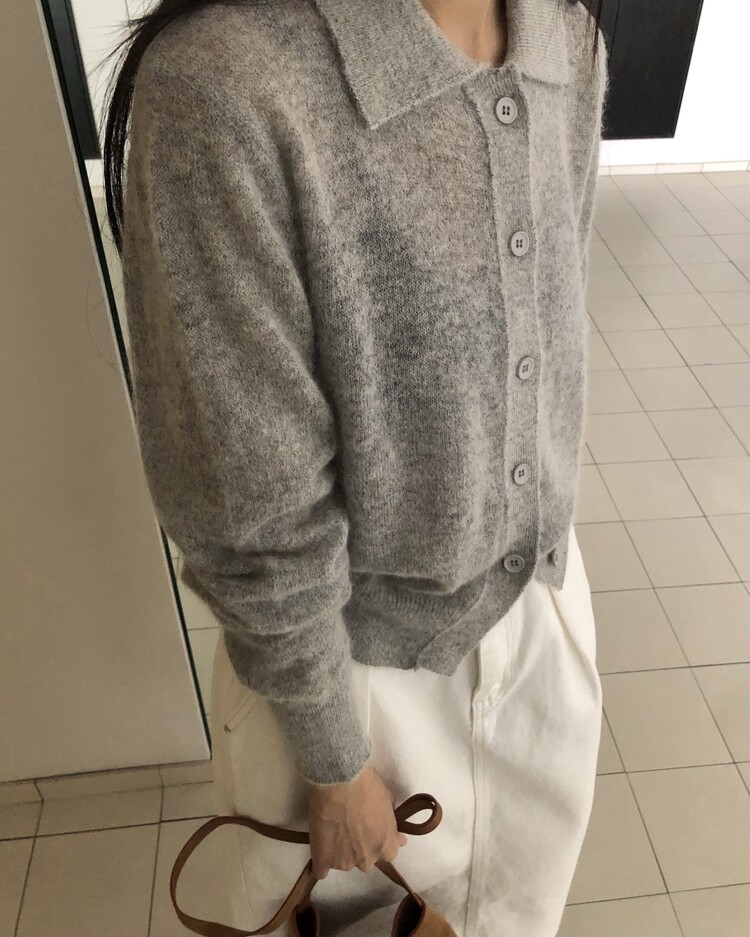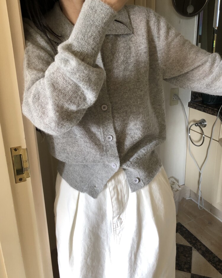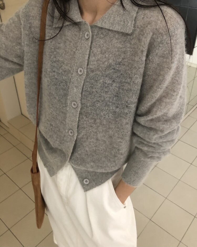 클래식한 카라 디자인이 돋보이는 가디건이에요 헤헤 .