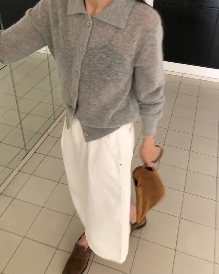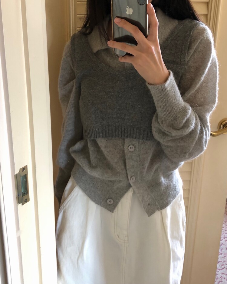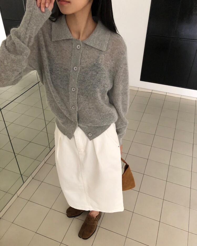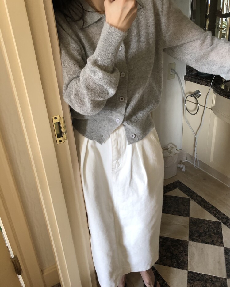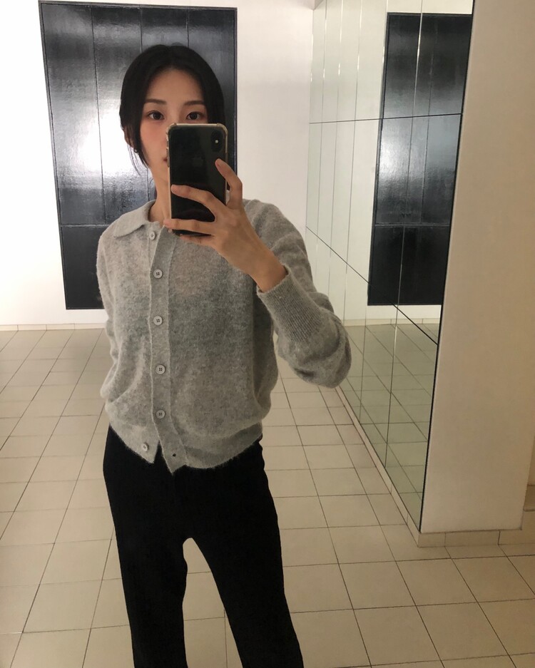 클래식한 카라 디자인이 돋보이는 가디건이에요 헤헤 .