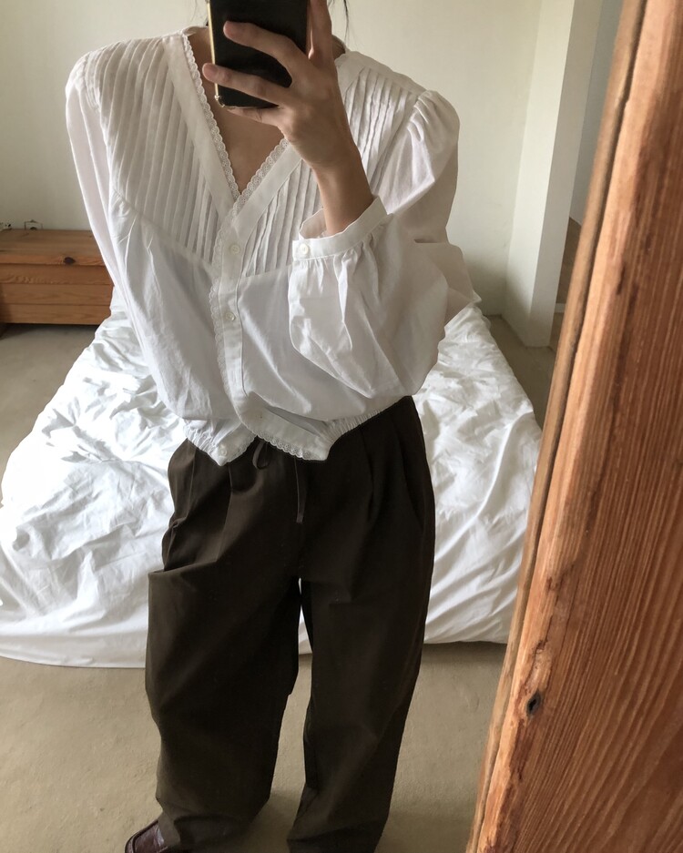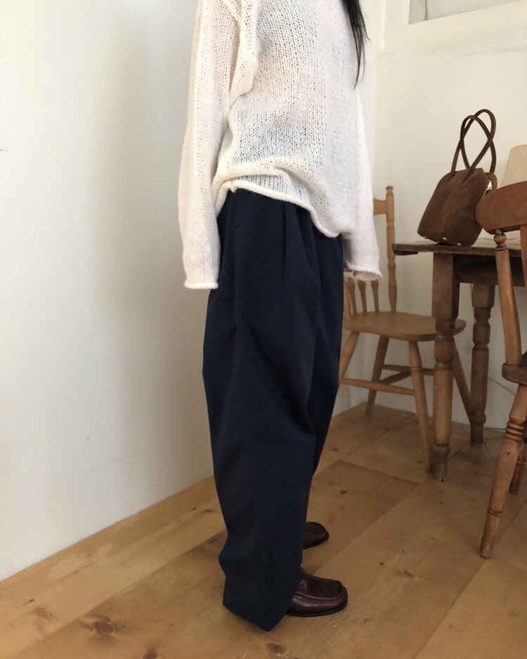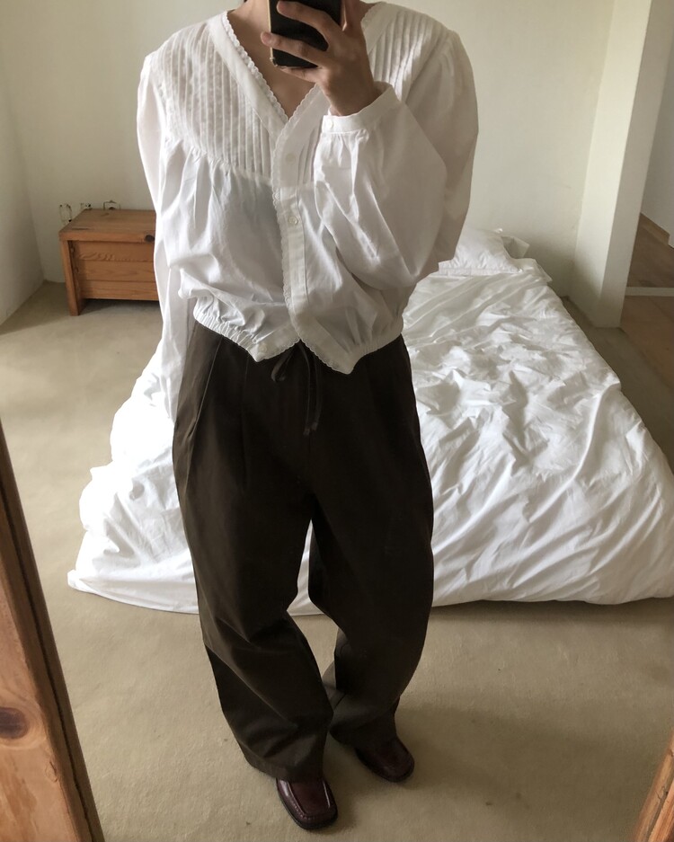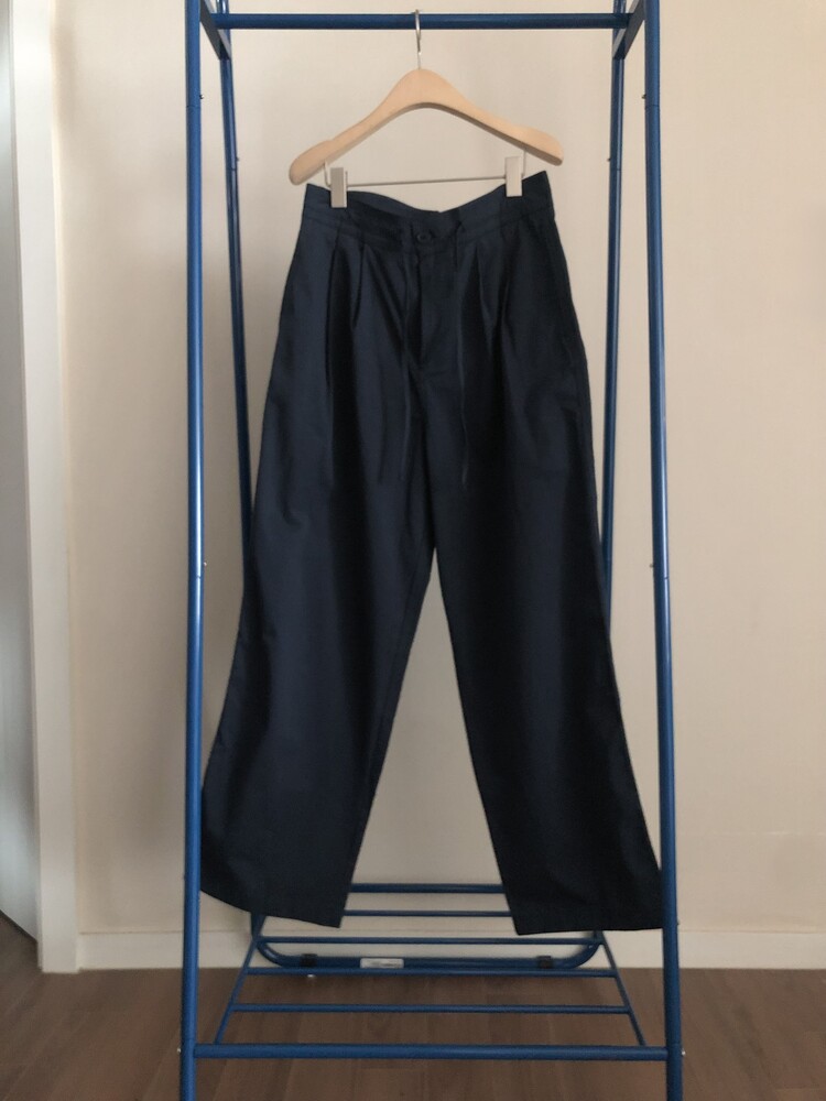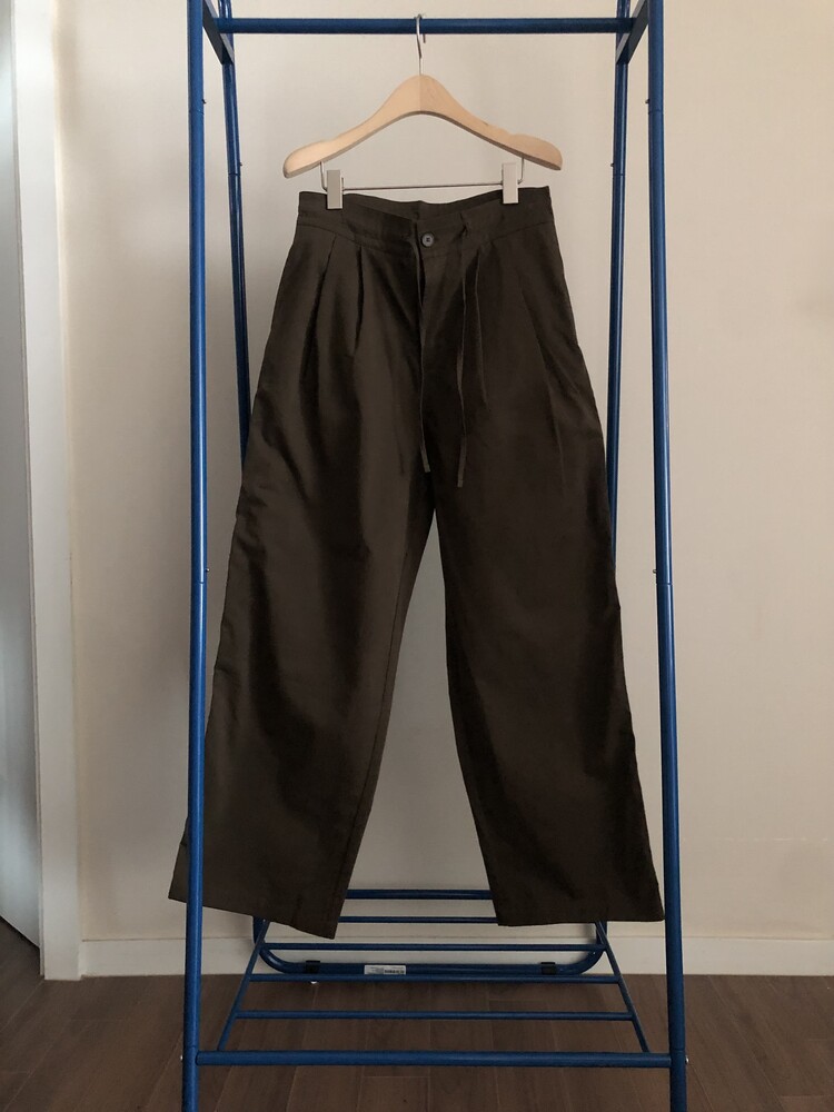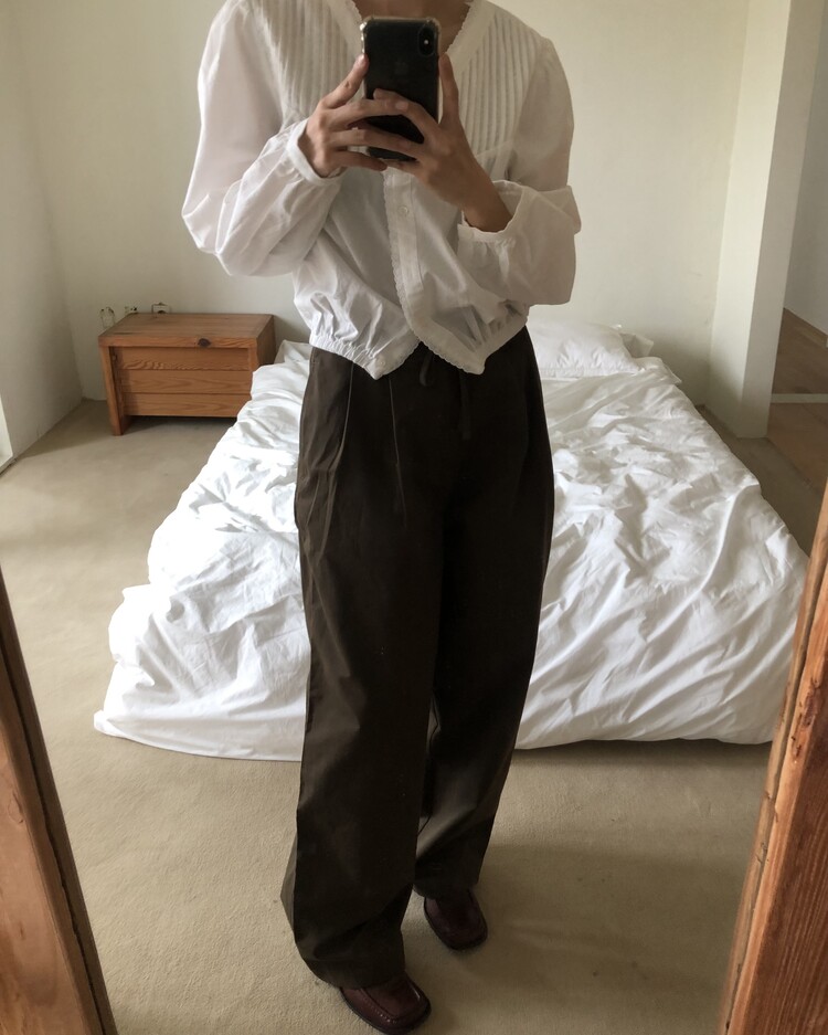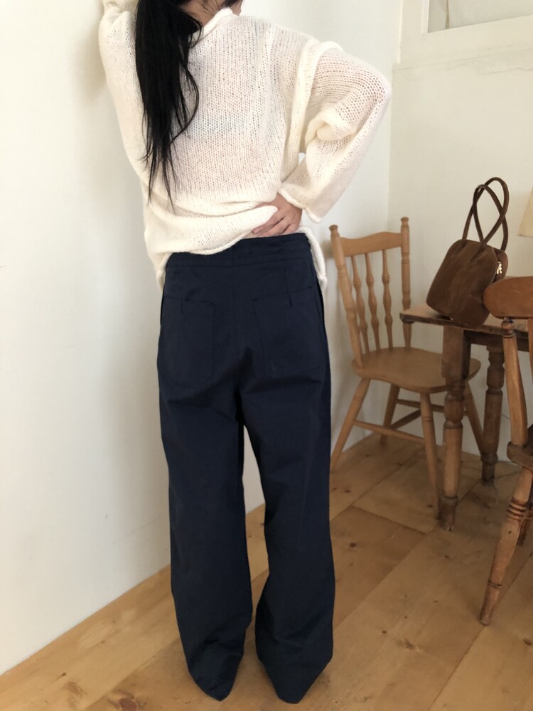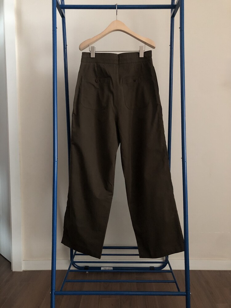 -프론트 핀턱 디테일과 허리 스트랩으로 편안한 착용감의 코튼 팬츠